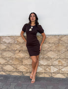 La modella è alta 1,70 cm ed indossa una taglia unica.
