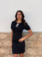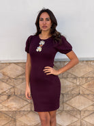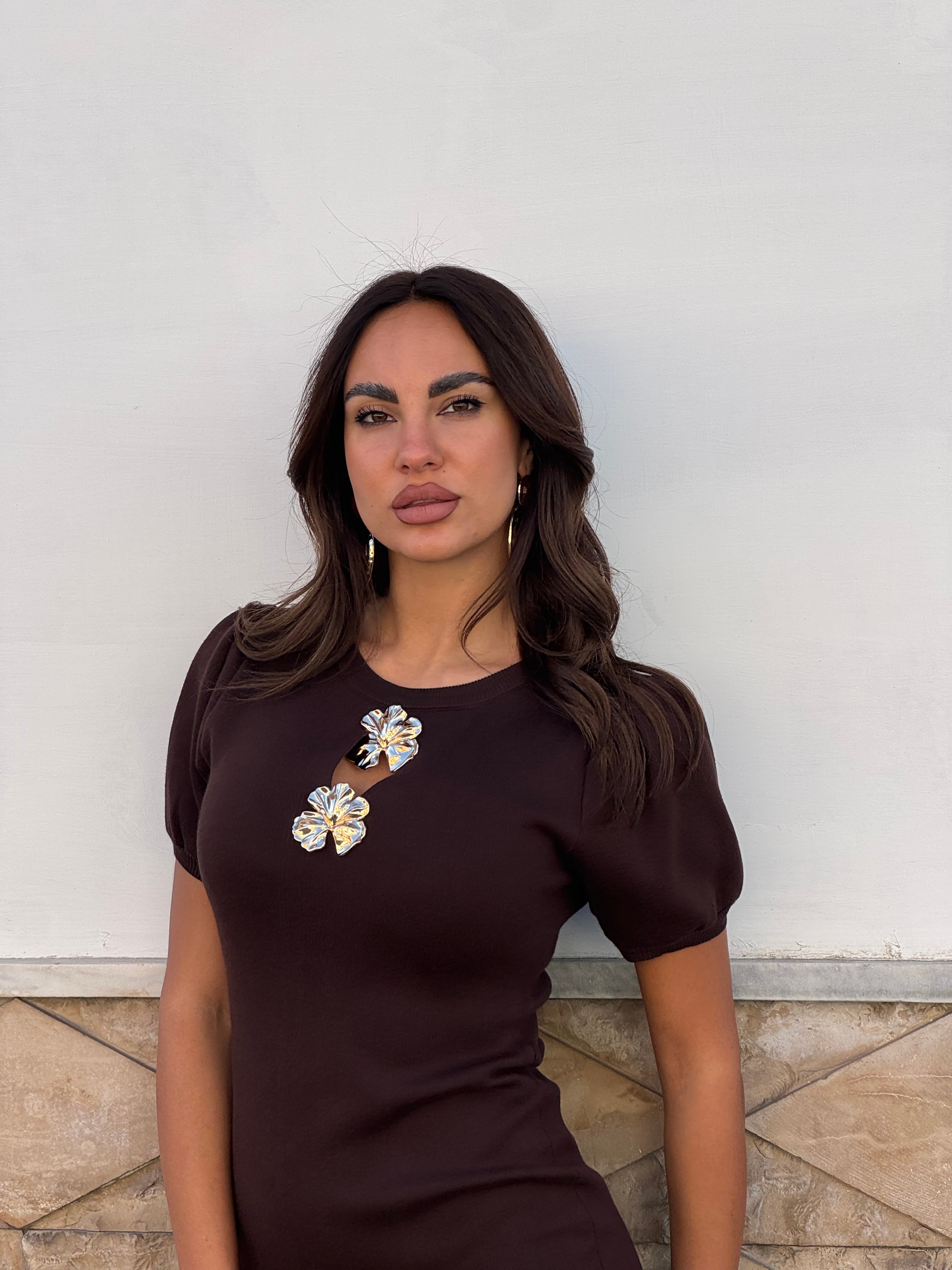 Manica a palloncino e bellissimi dettagli in spilla a forma di fiore .