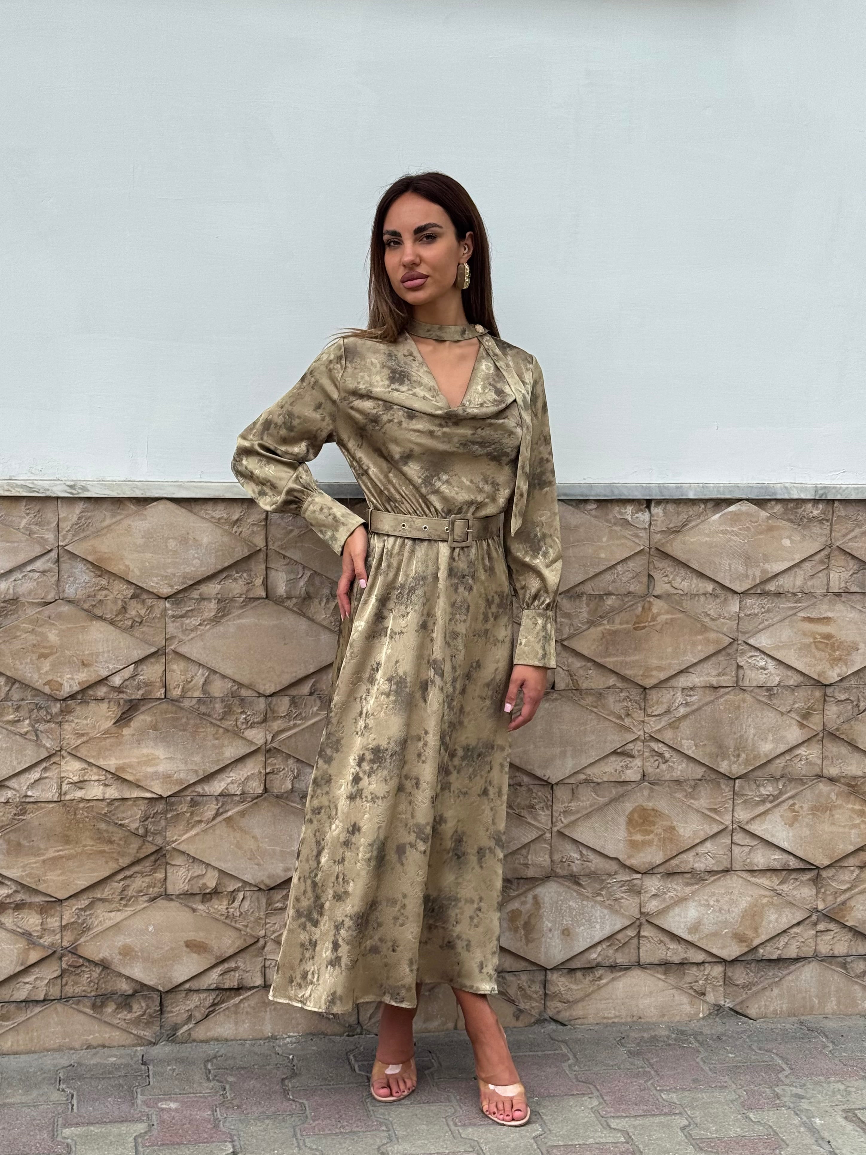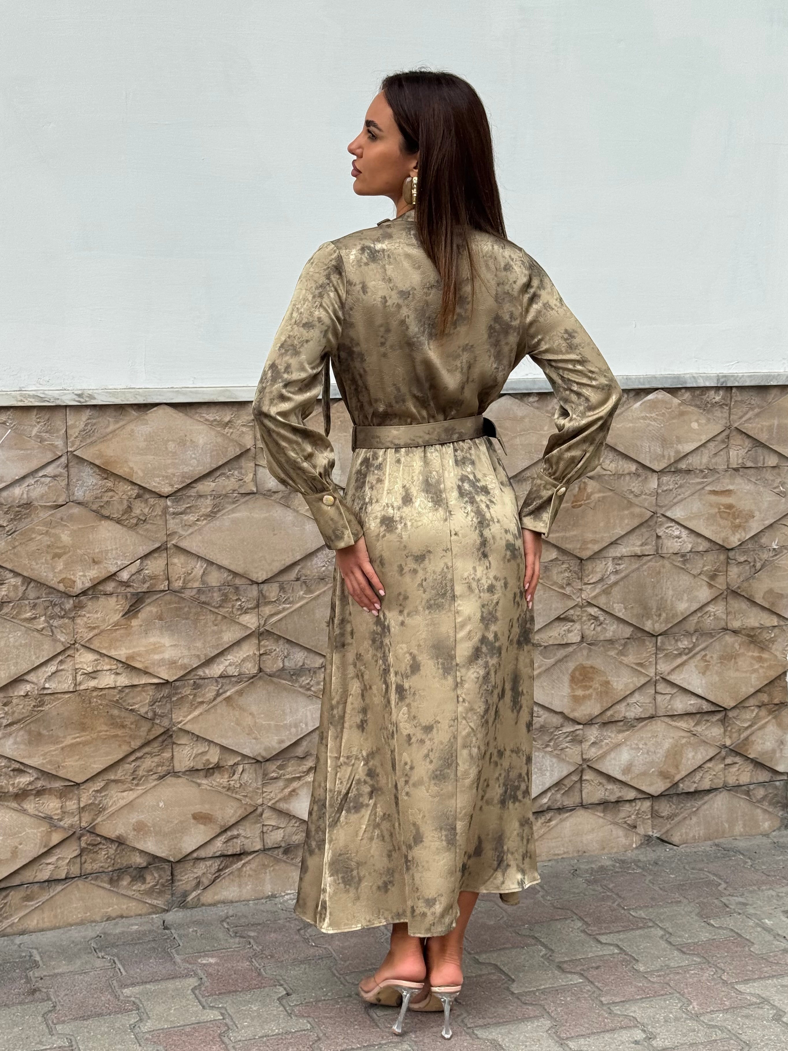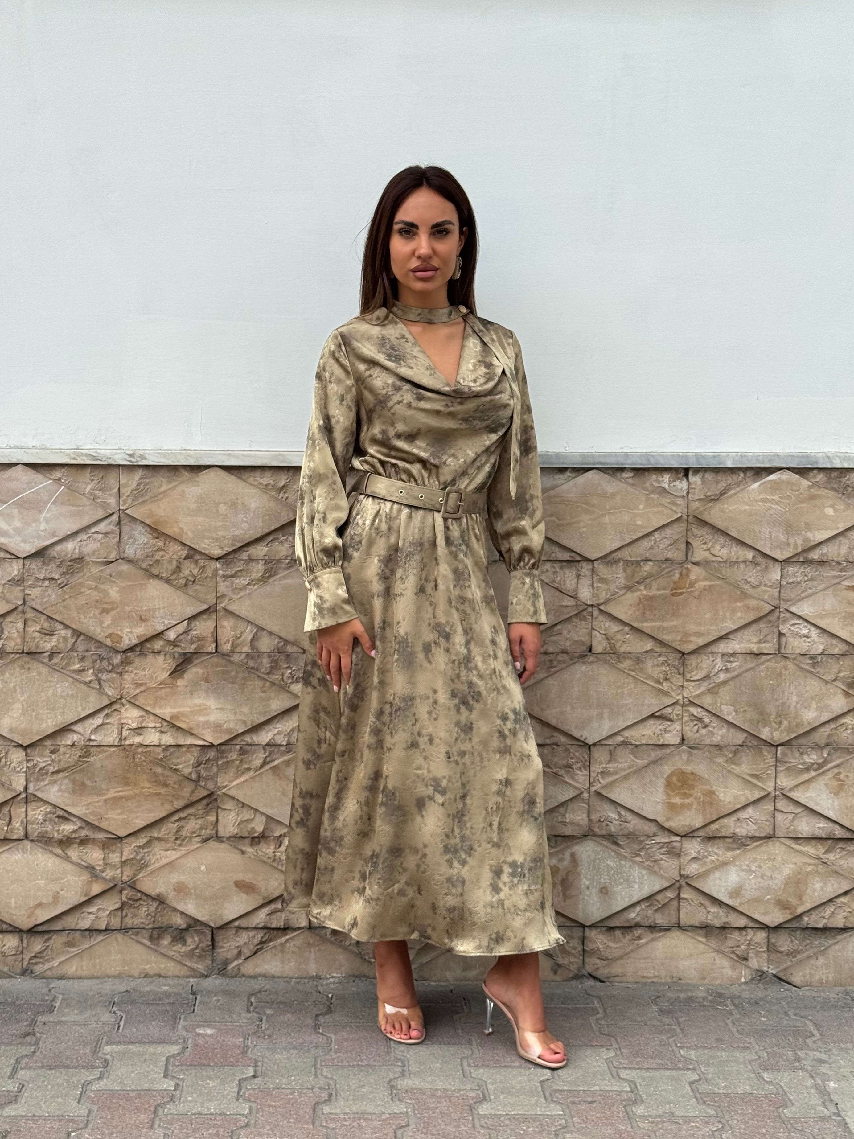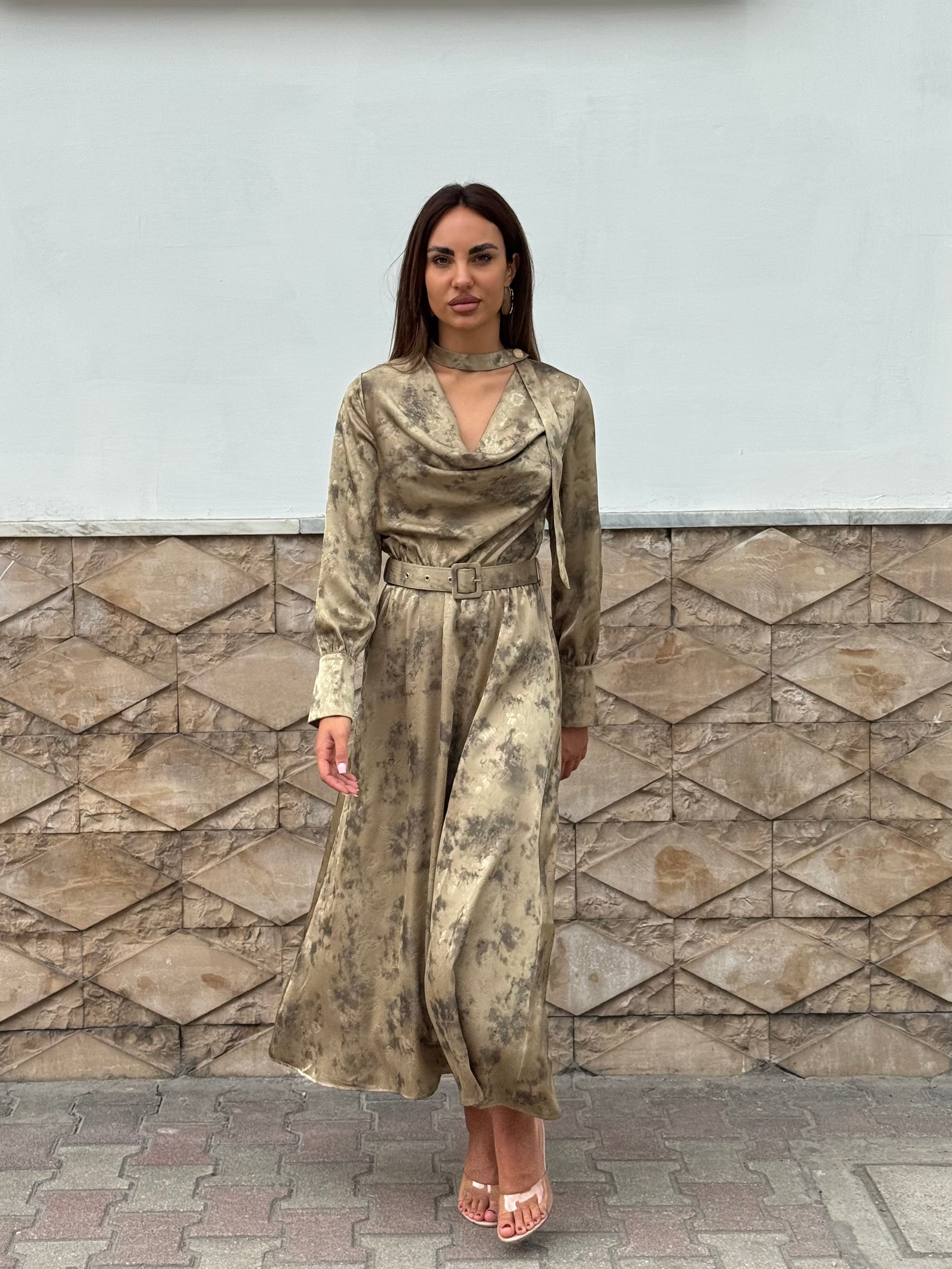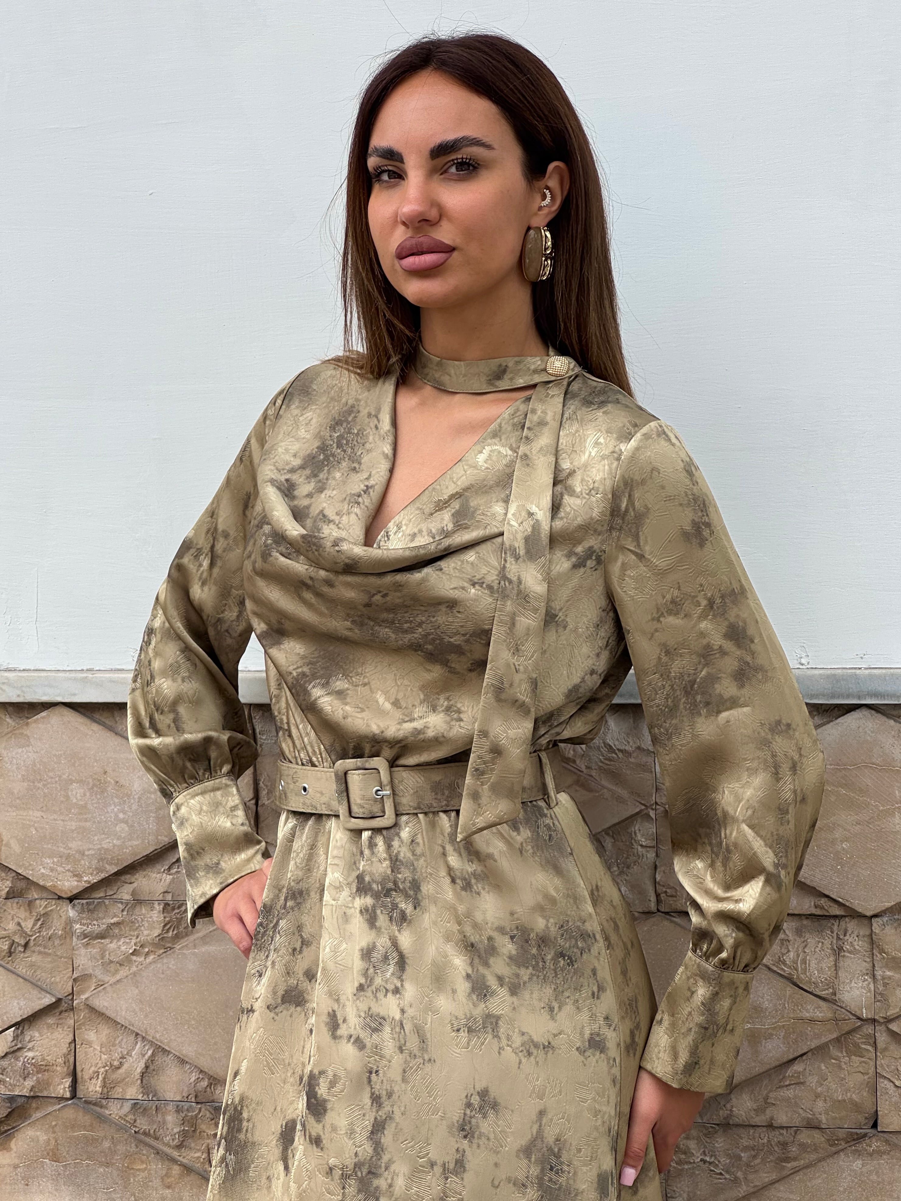 Abito a fantasia con dettaglio al colletto.