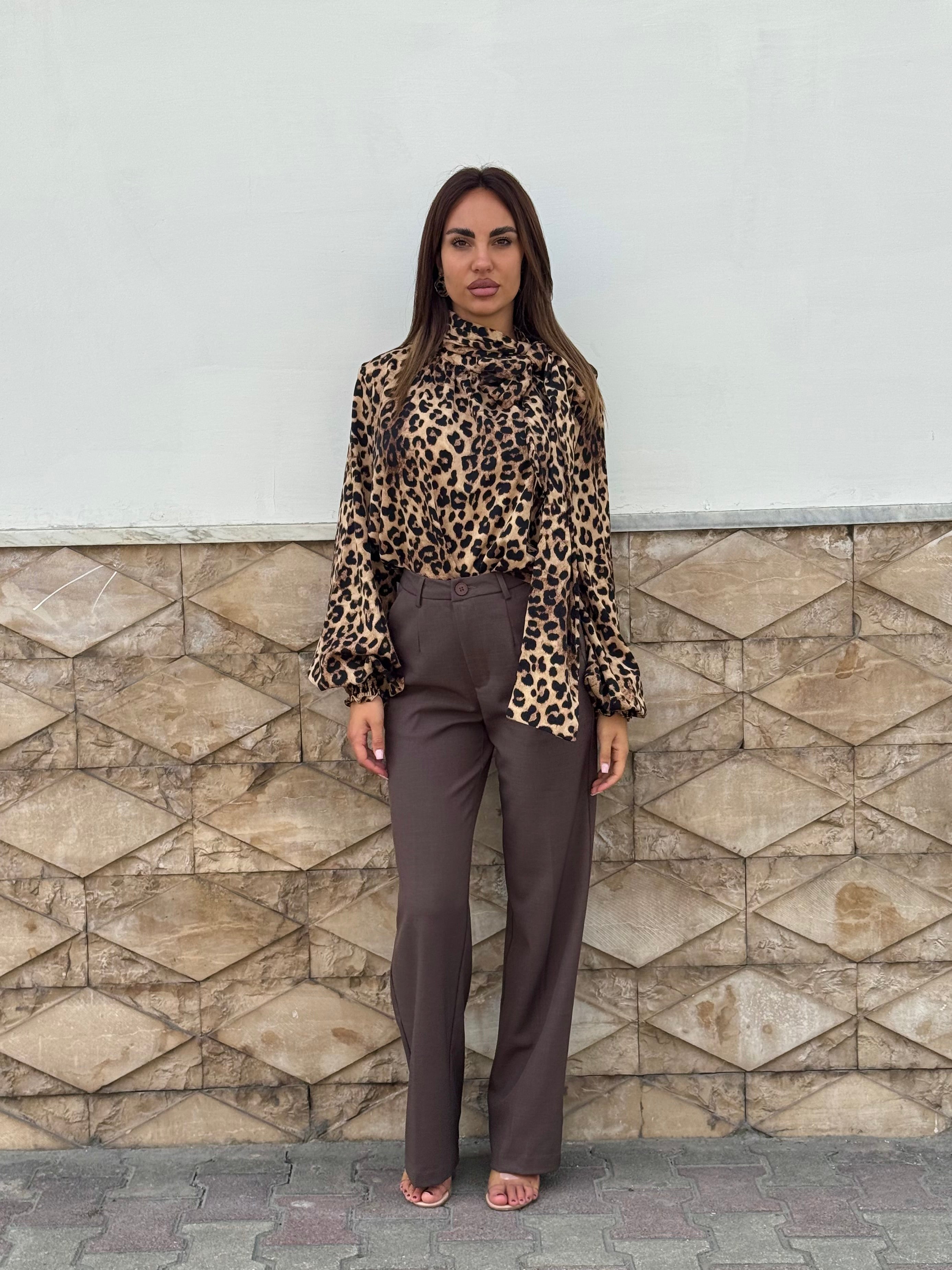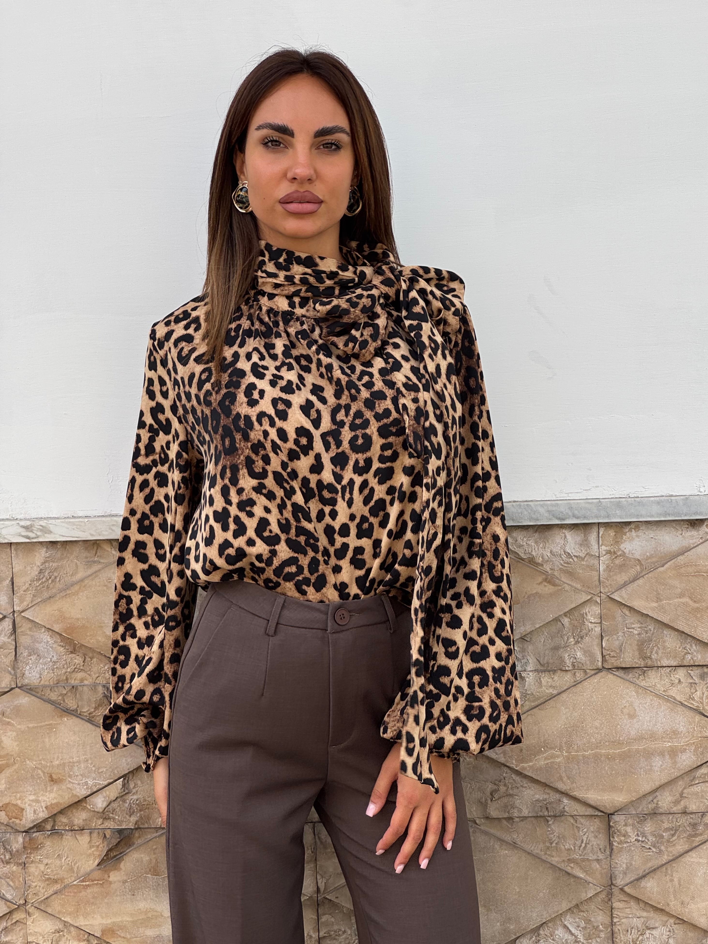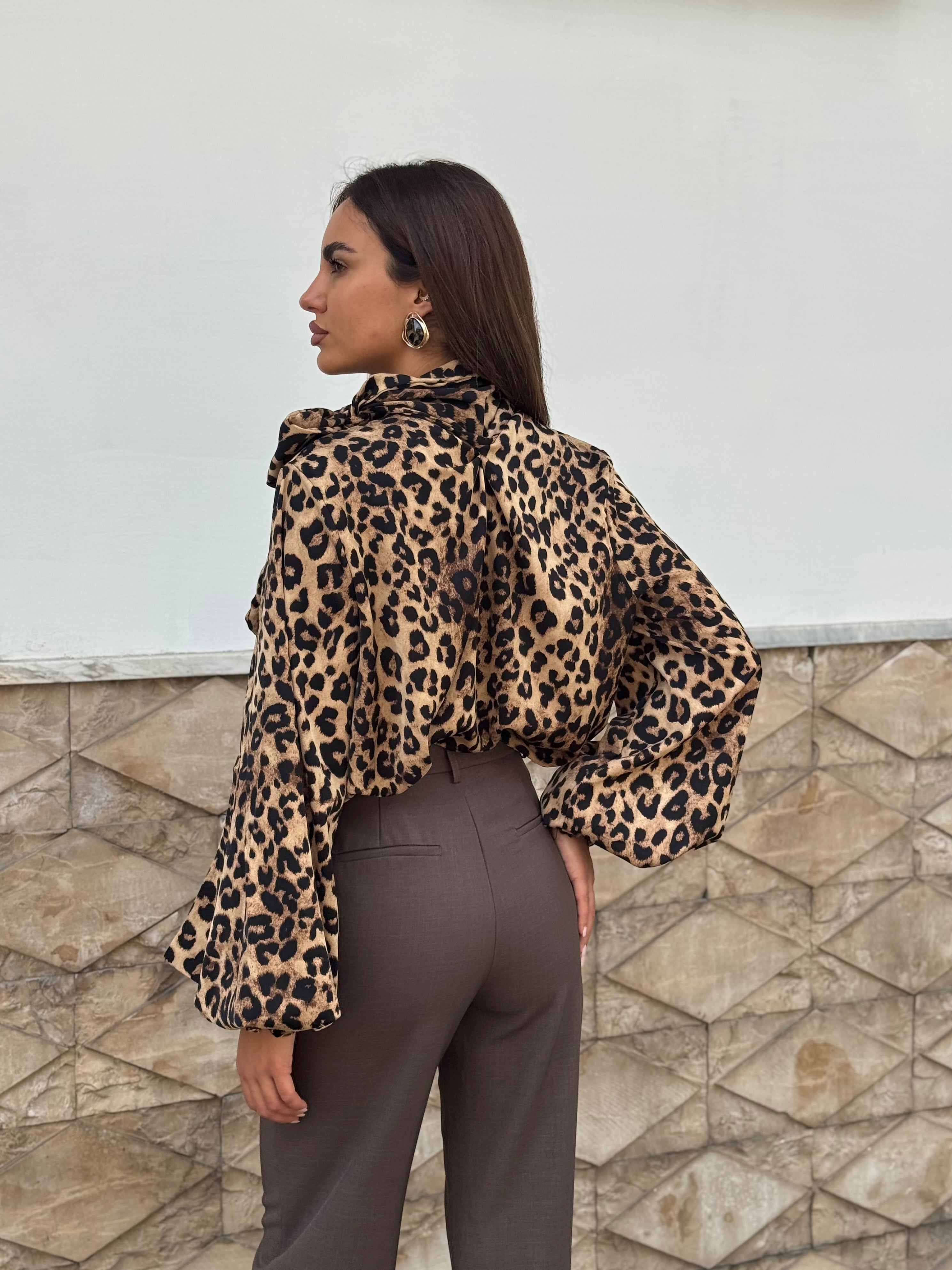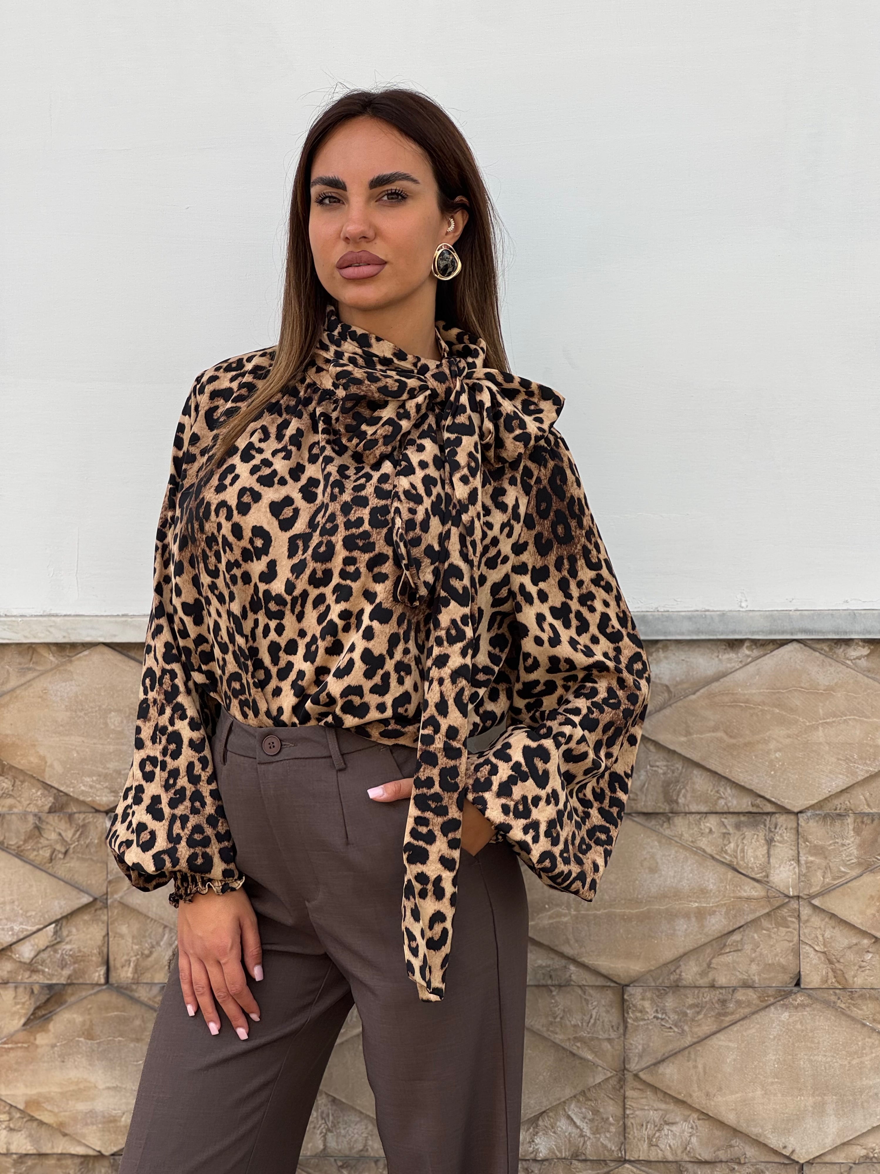 Eleganti dettagli con fusciacca al collo che forma un grazioso fiocco e maniche a sbuffo.