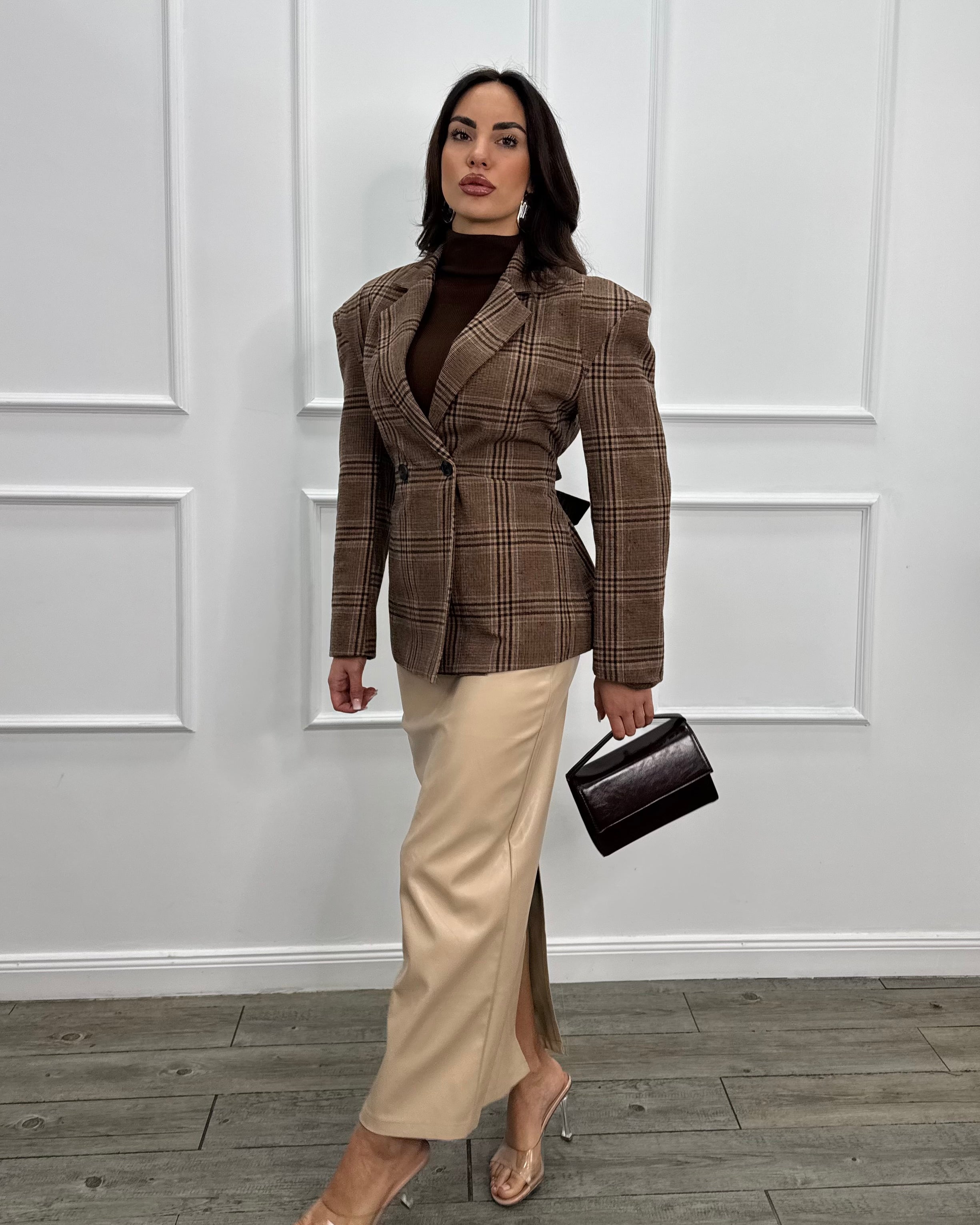 La modella è alta 1,70 cm ed indossa una taglia S.