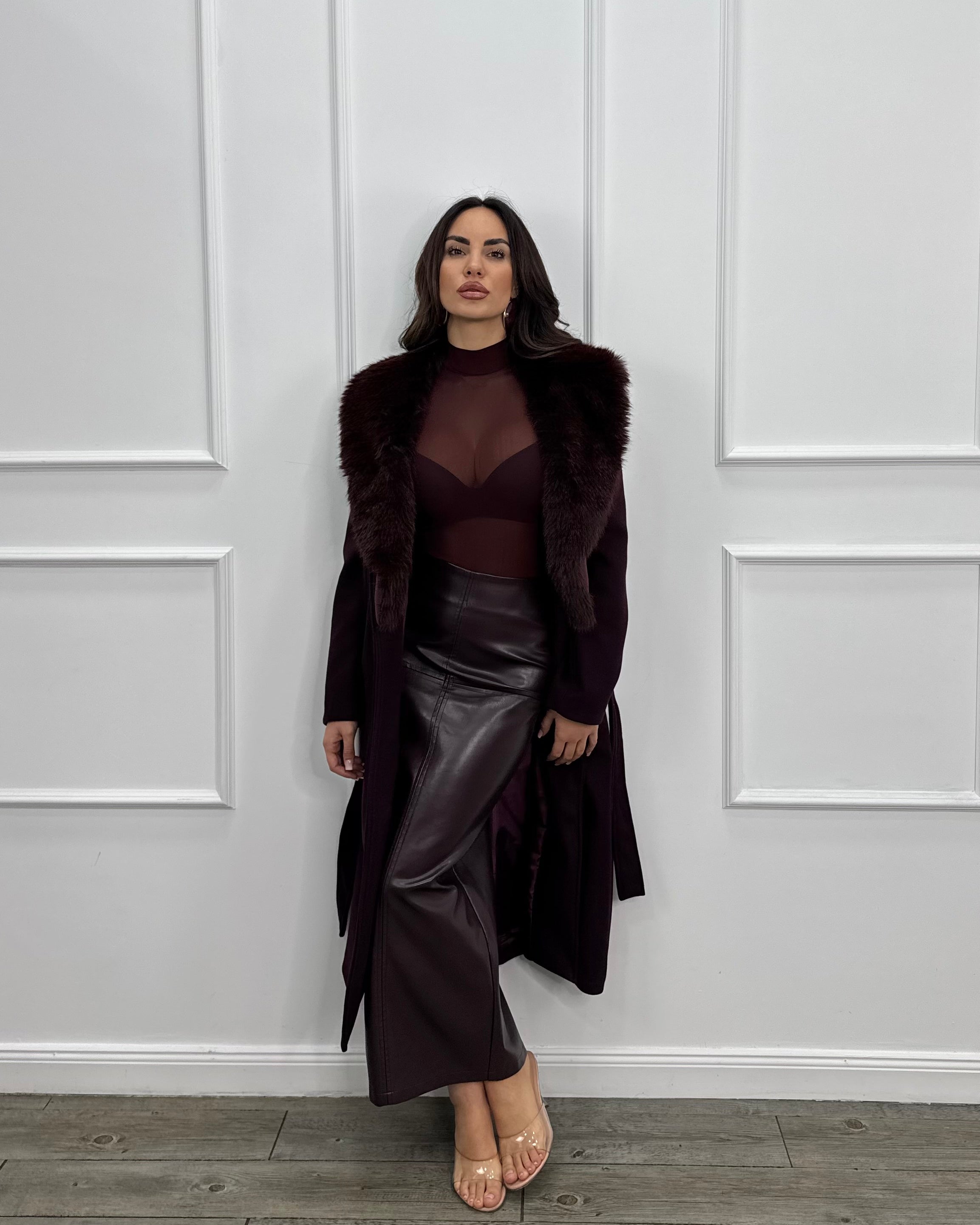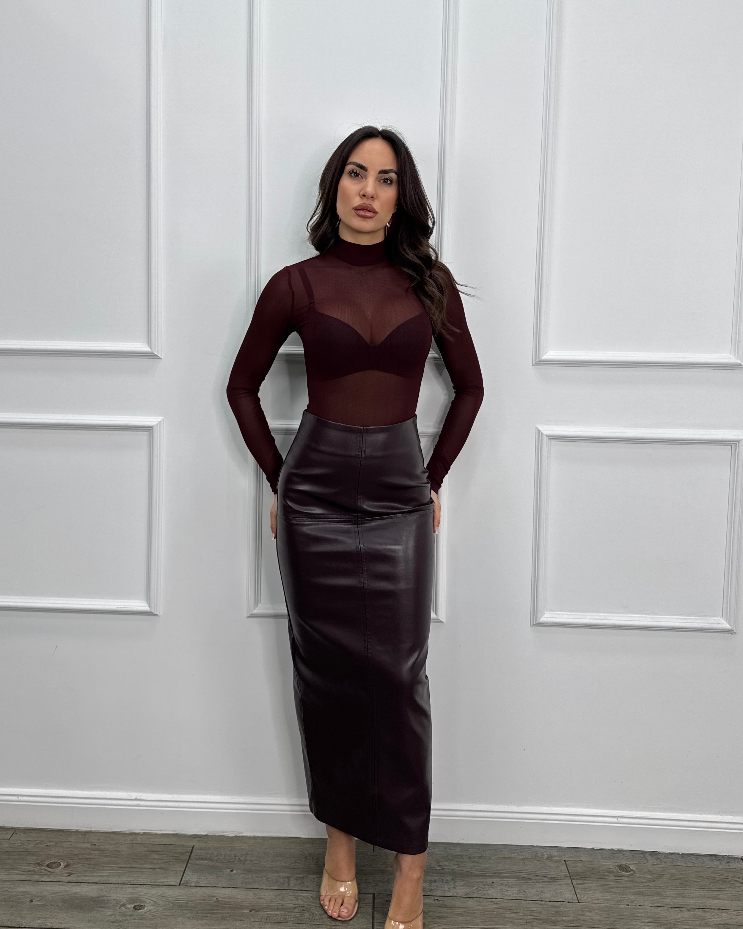Abito lungo a sirena che avvolge le forme in un modo sensuale con scollo a cuore e dettagli plissettati.