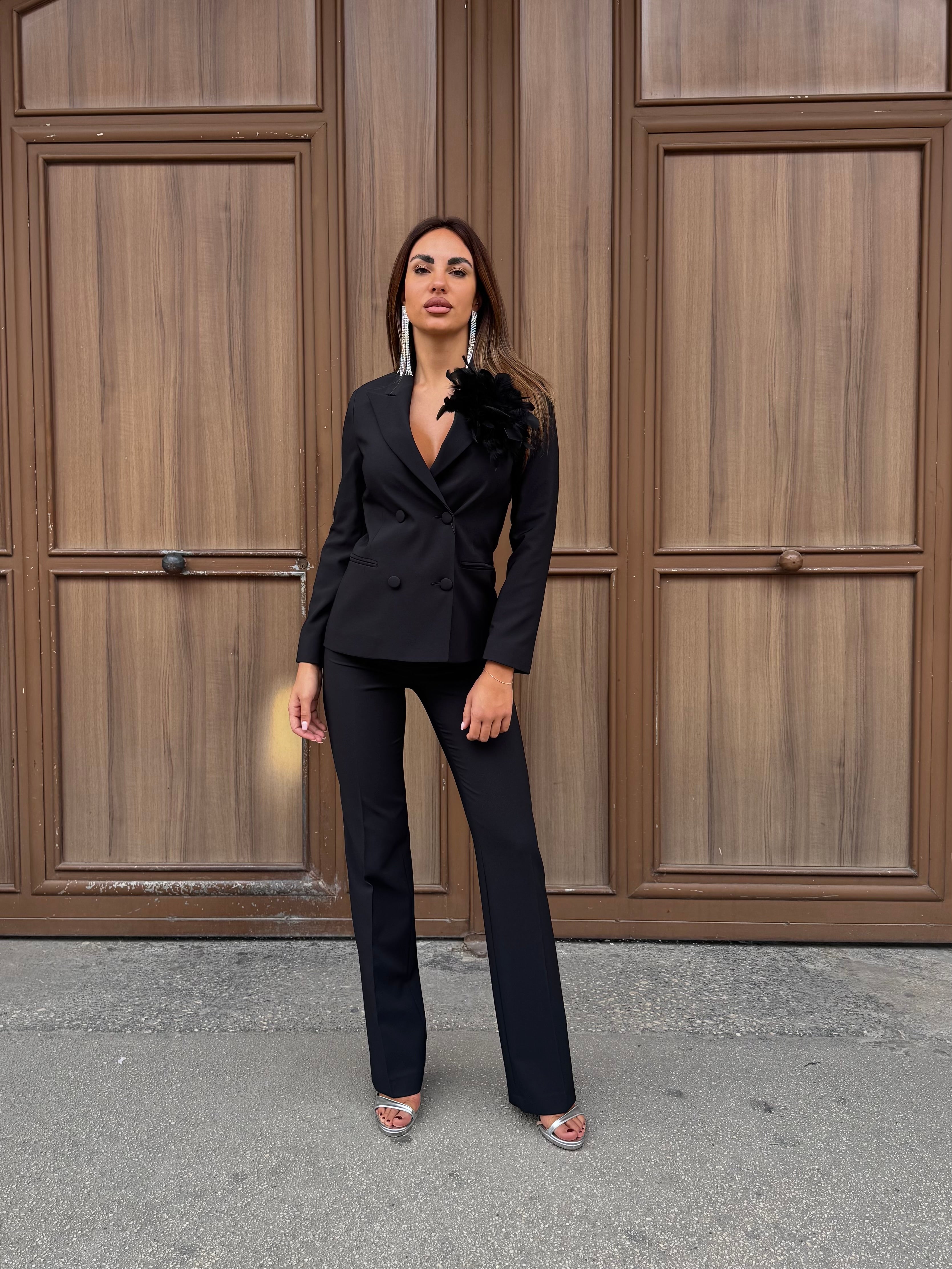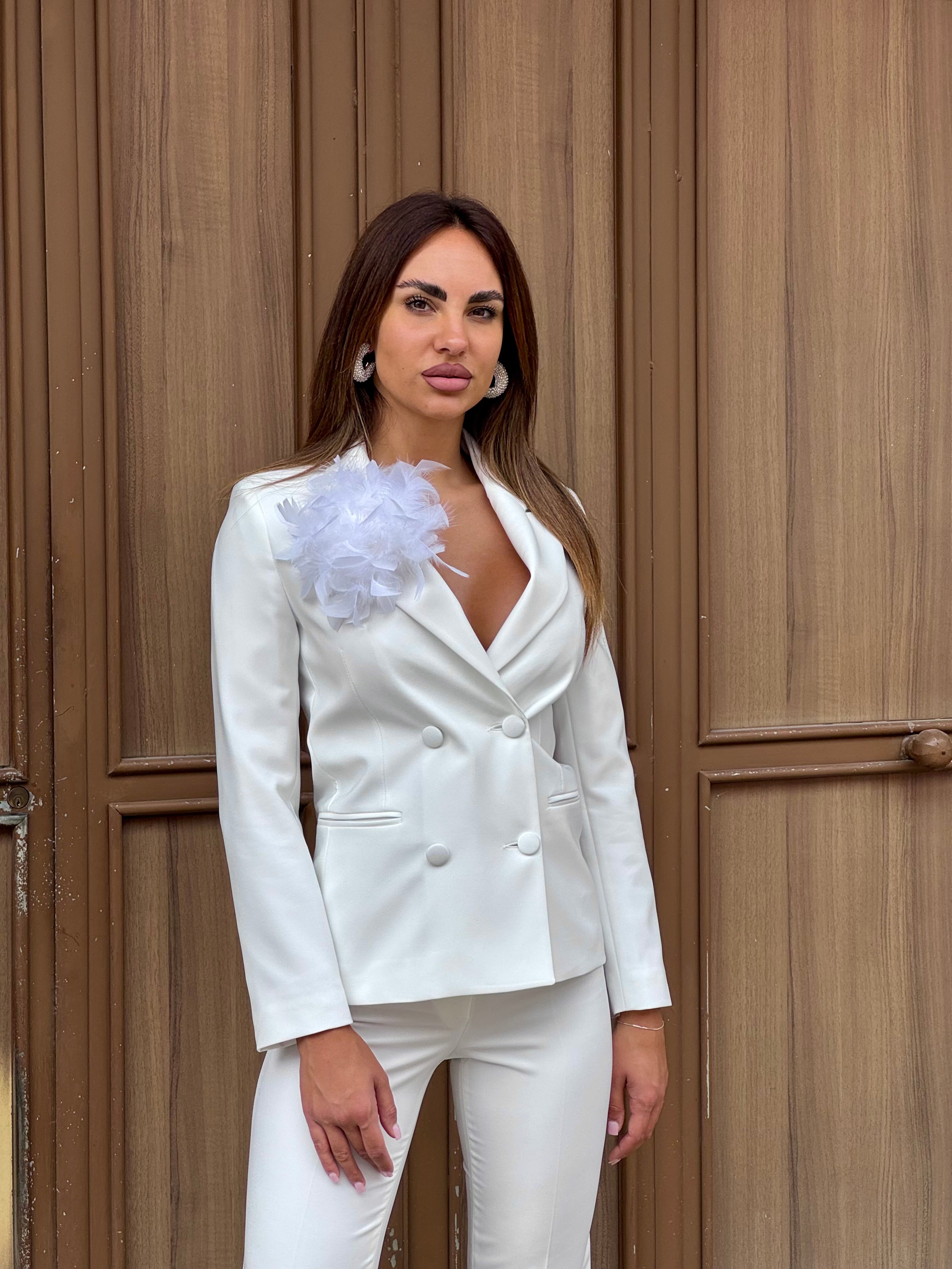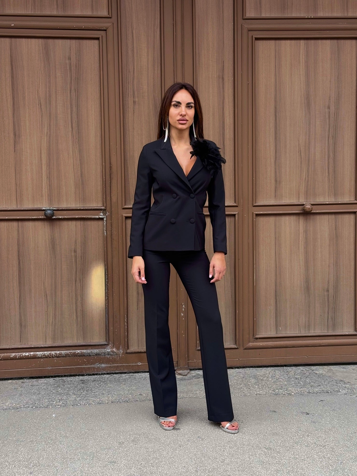 Blazer strutturato con spallina alta ,collo revers e chiusura doppio petto.