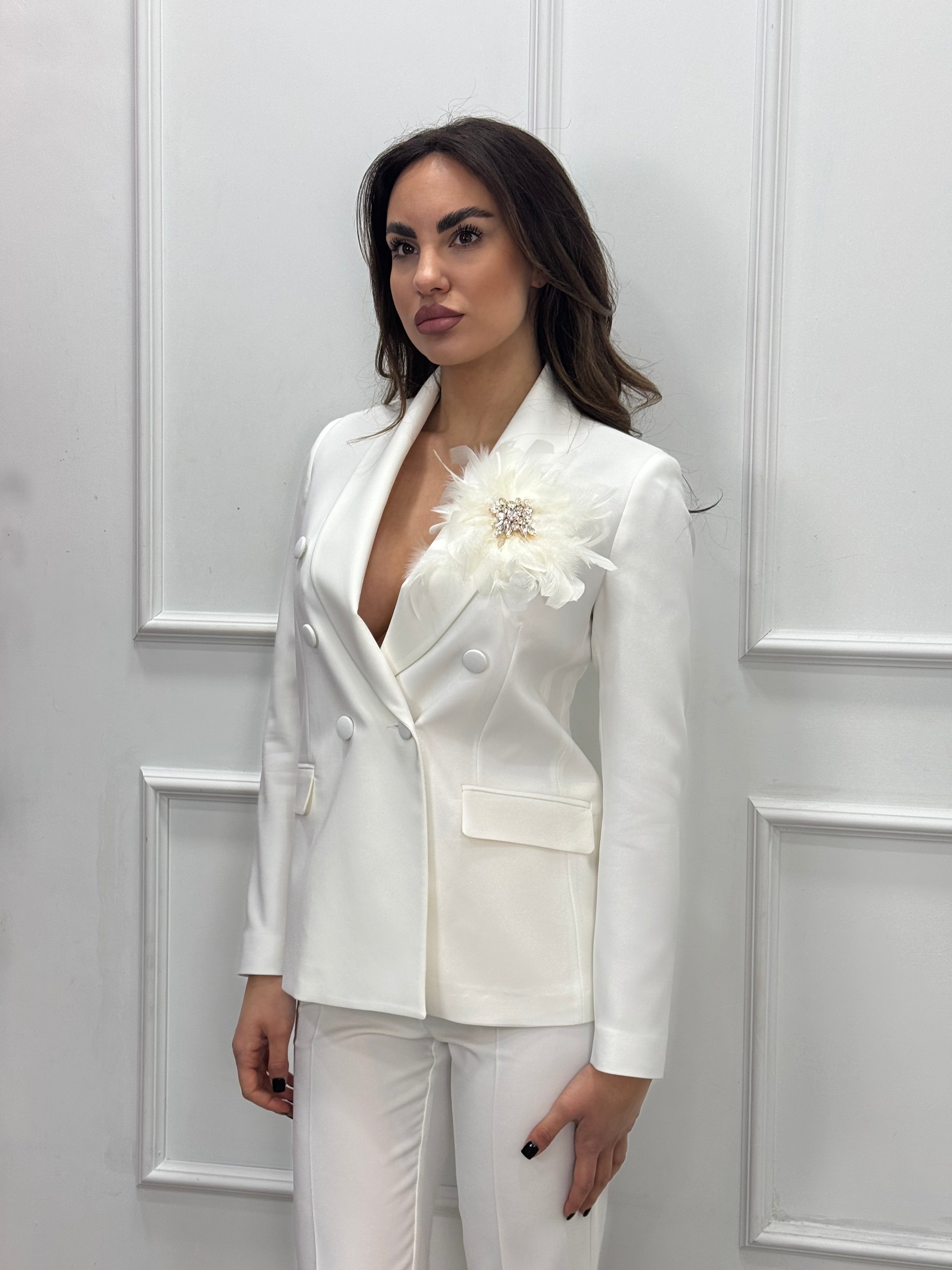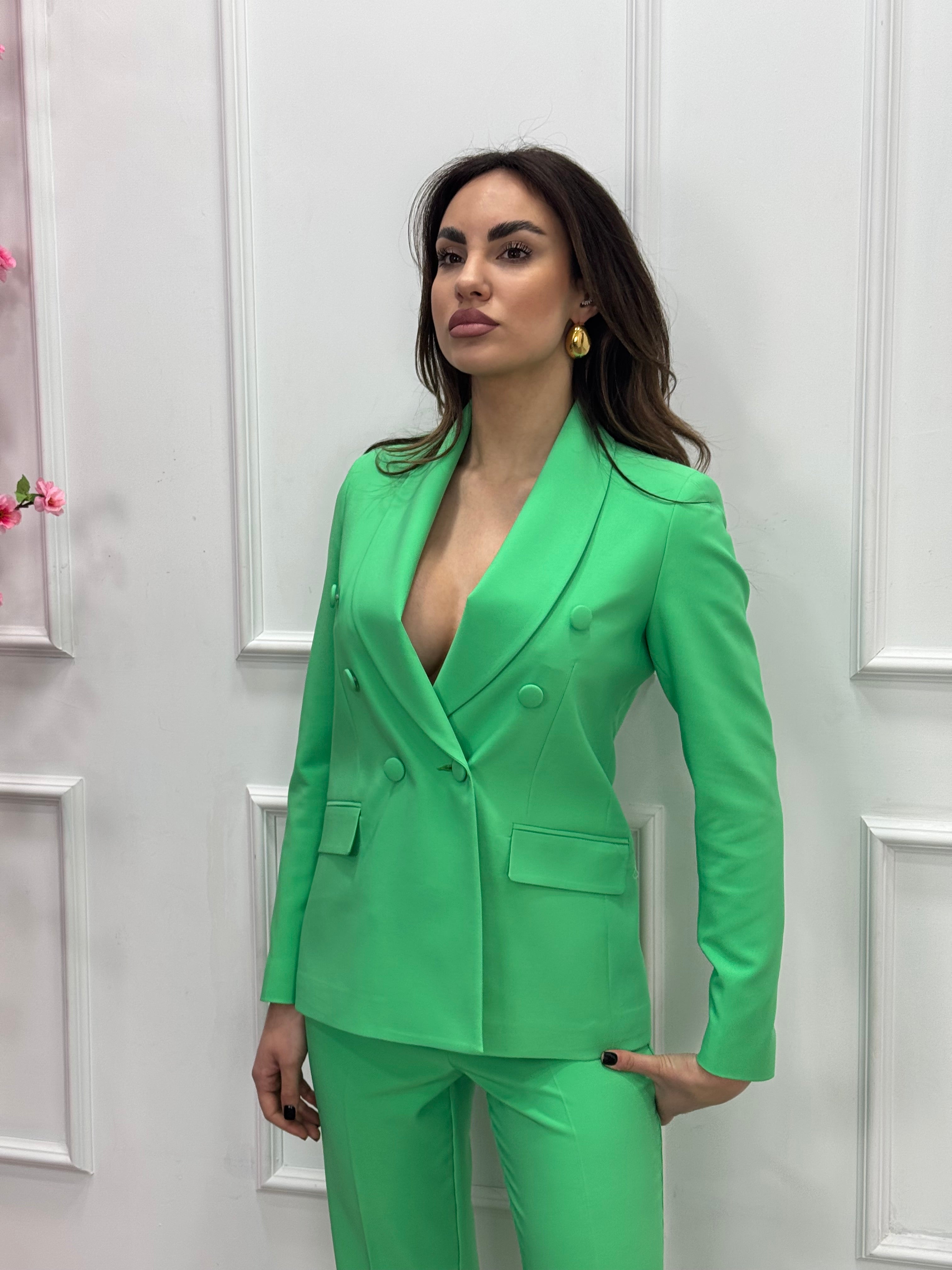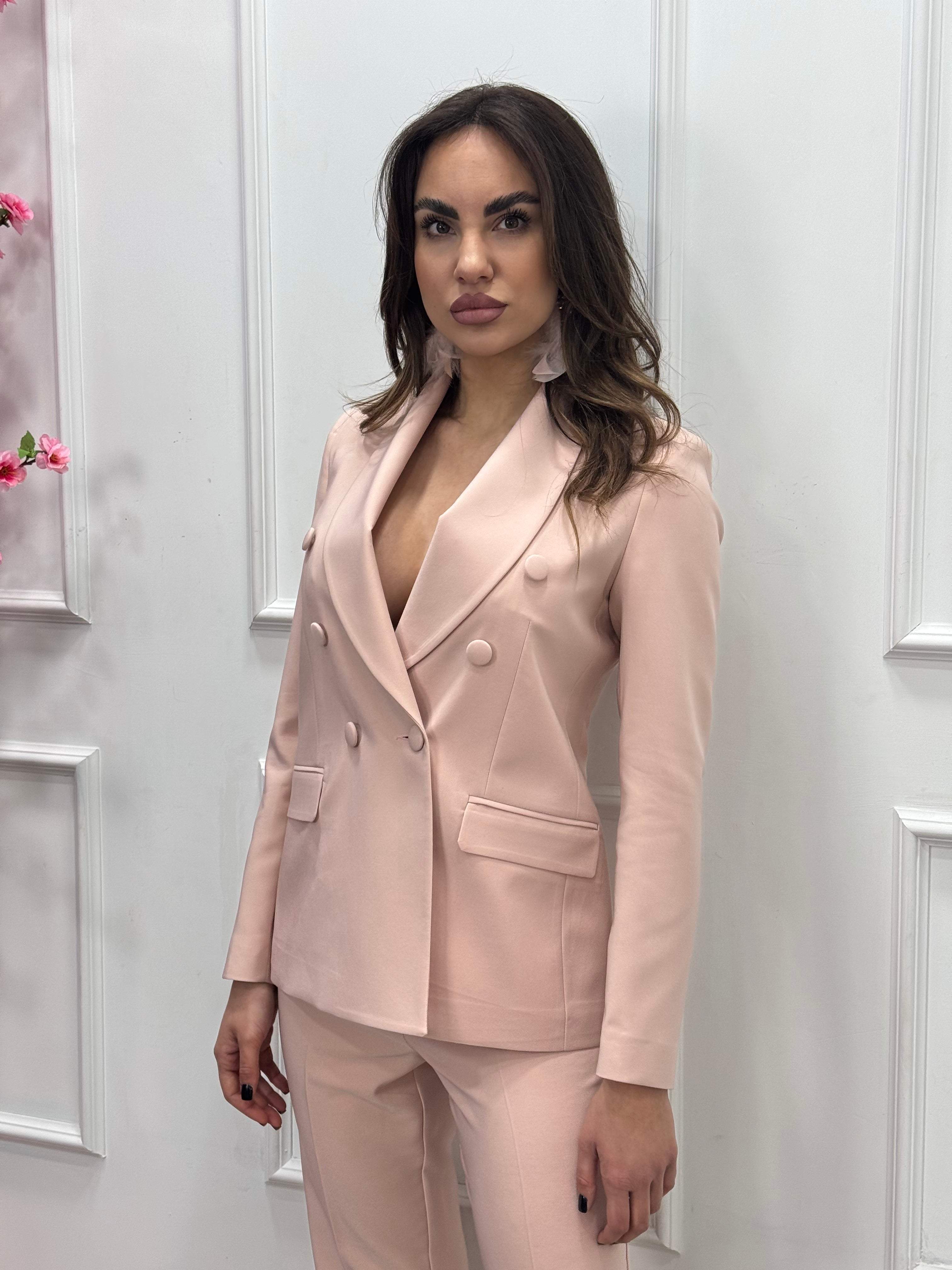 Blazer strutturato con spallina alta ,collo a scialle e chiusura doppio petto.