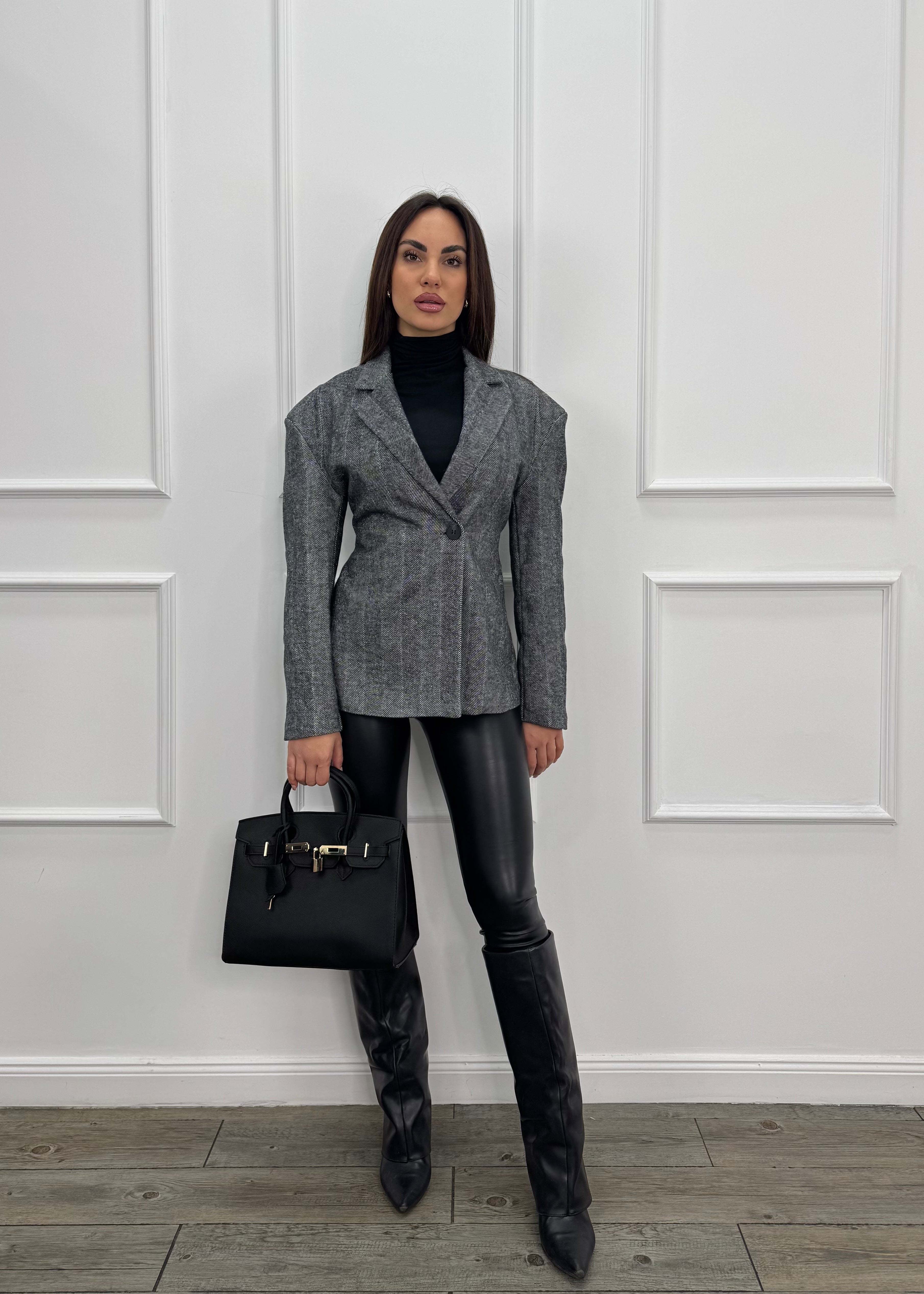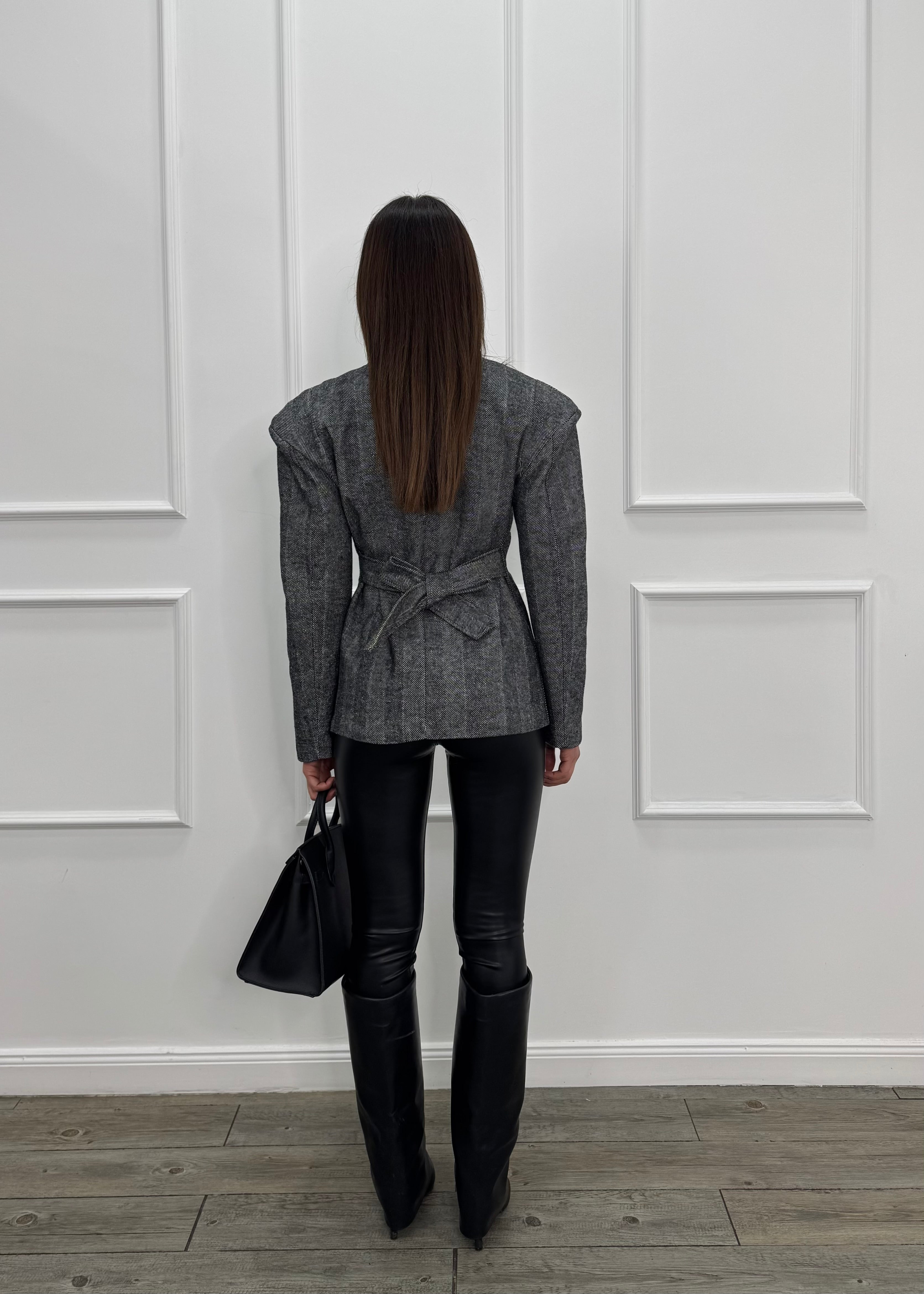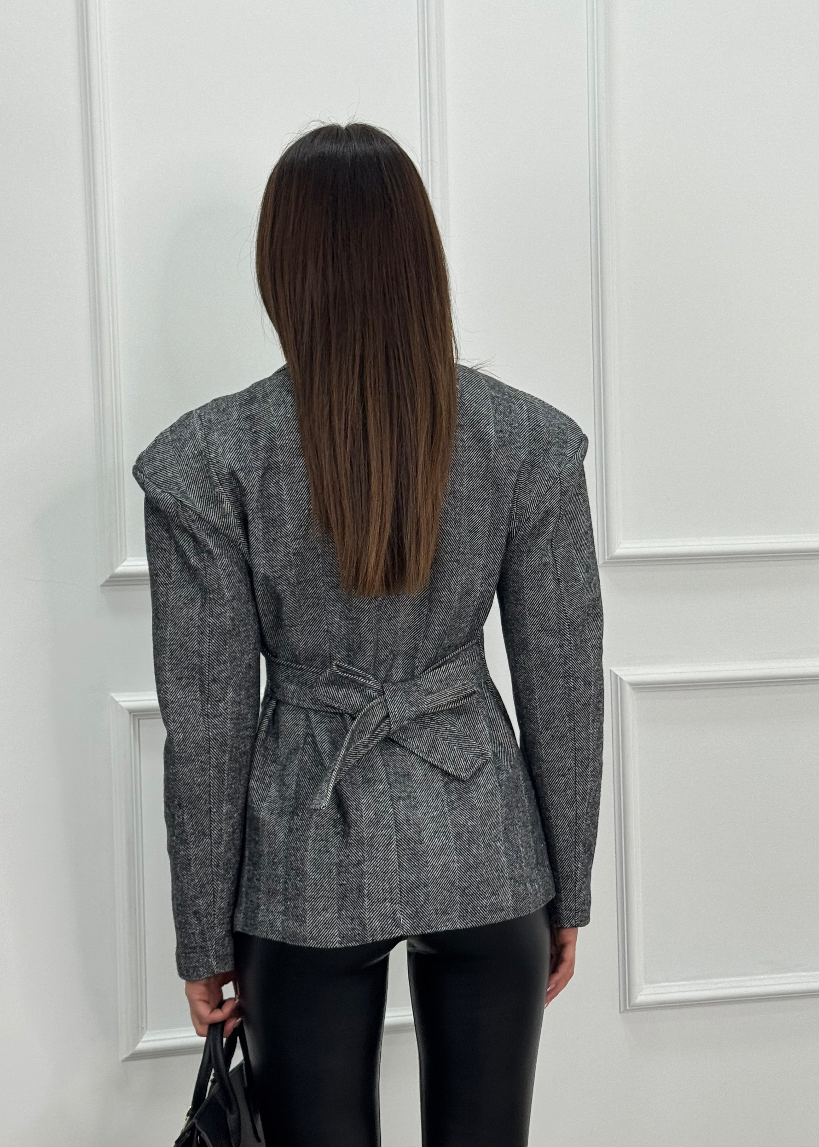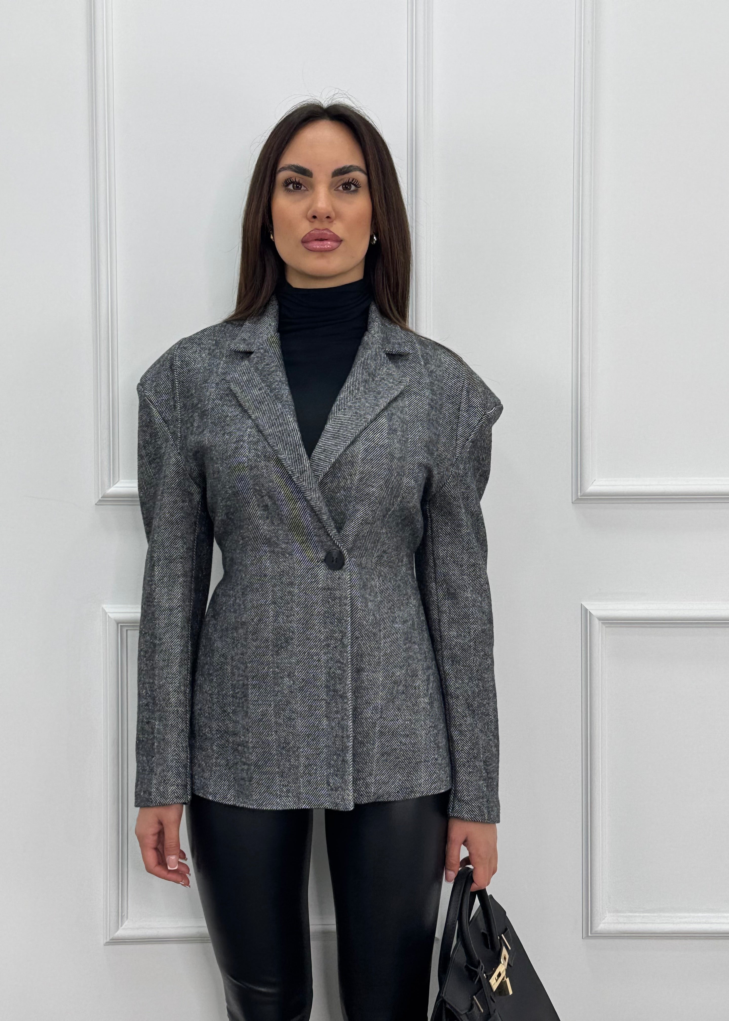 Blazer monopetto con spallina alta e cintura regolabile sul retro.