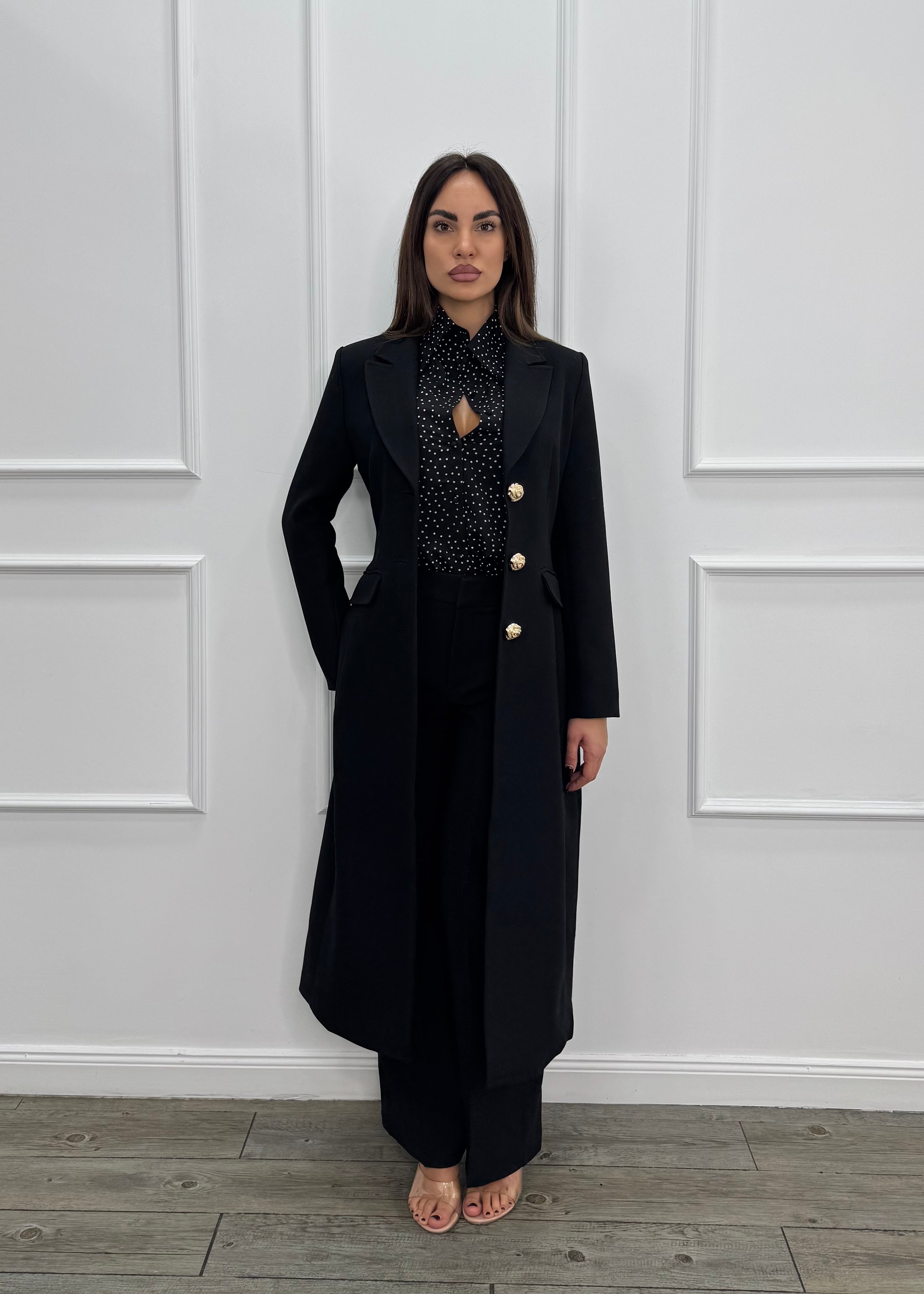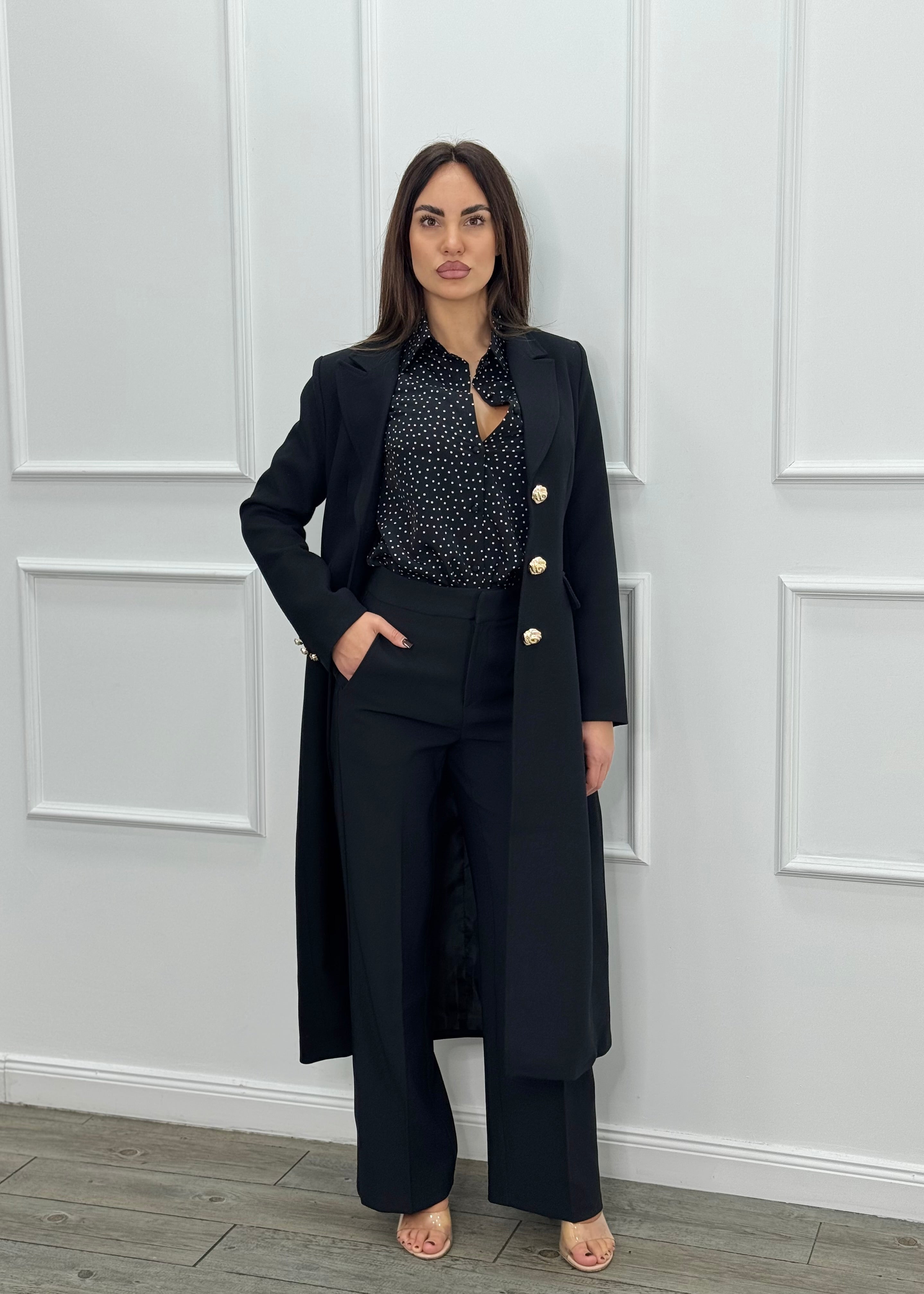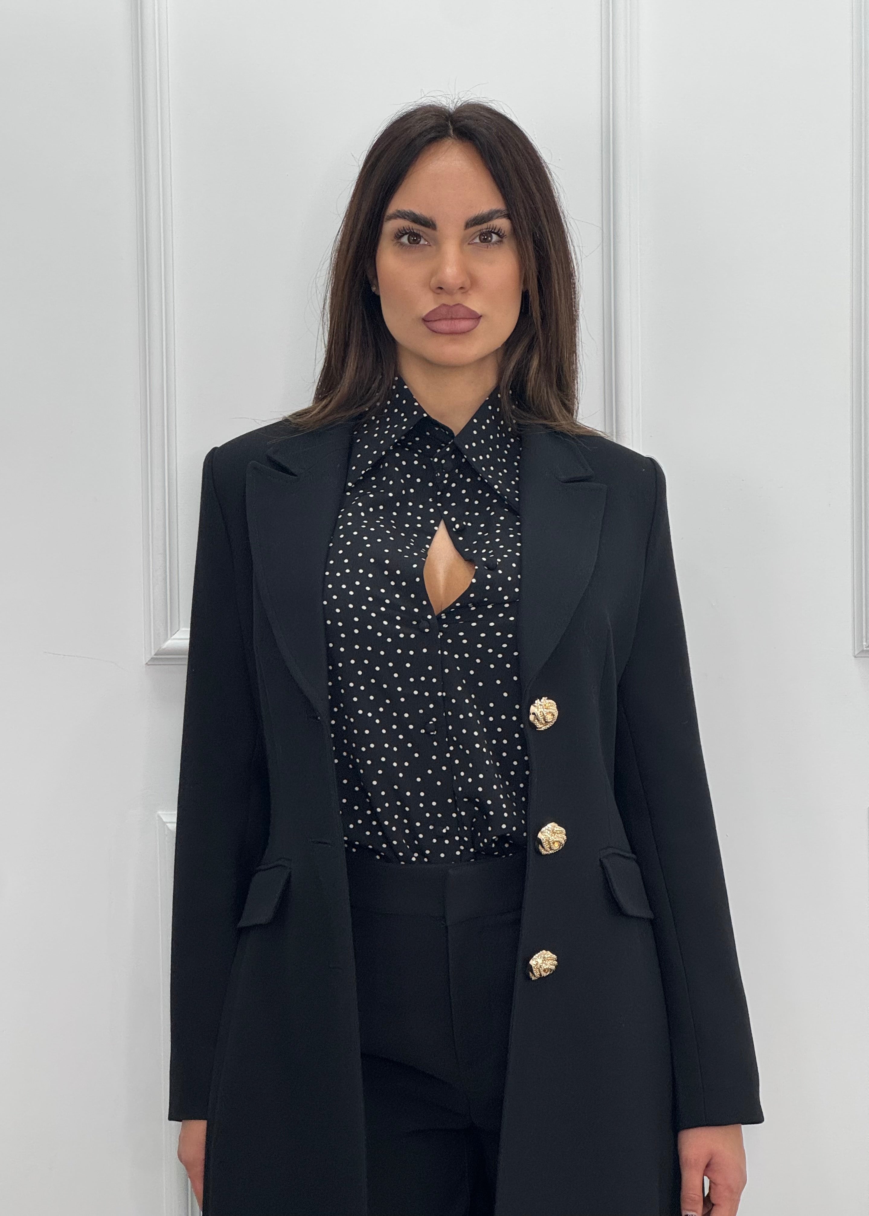 La modella è alta 1,70 cm ed indossa una taglia 40 italiana.