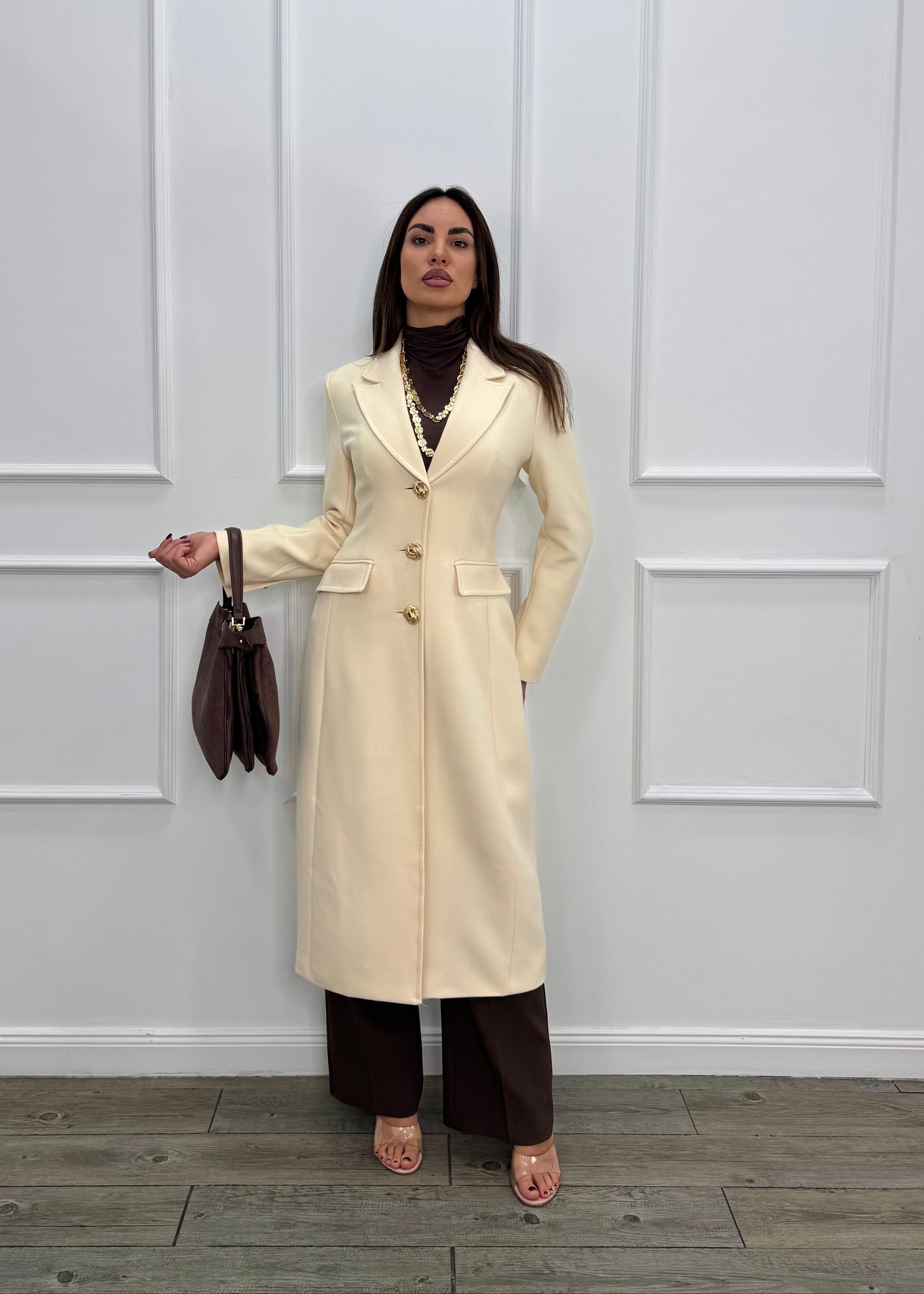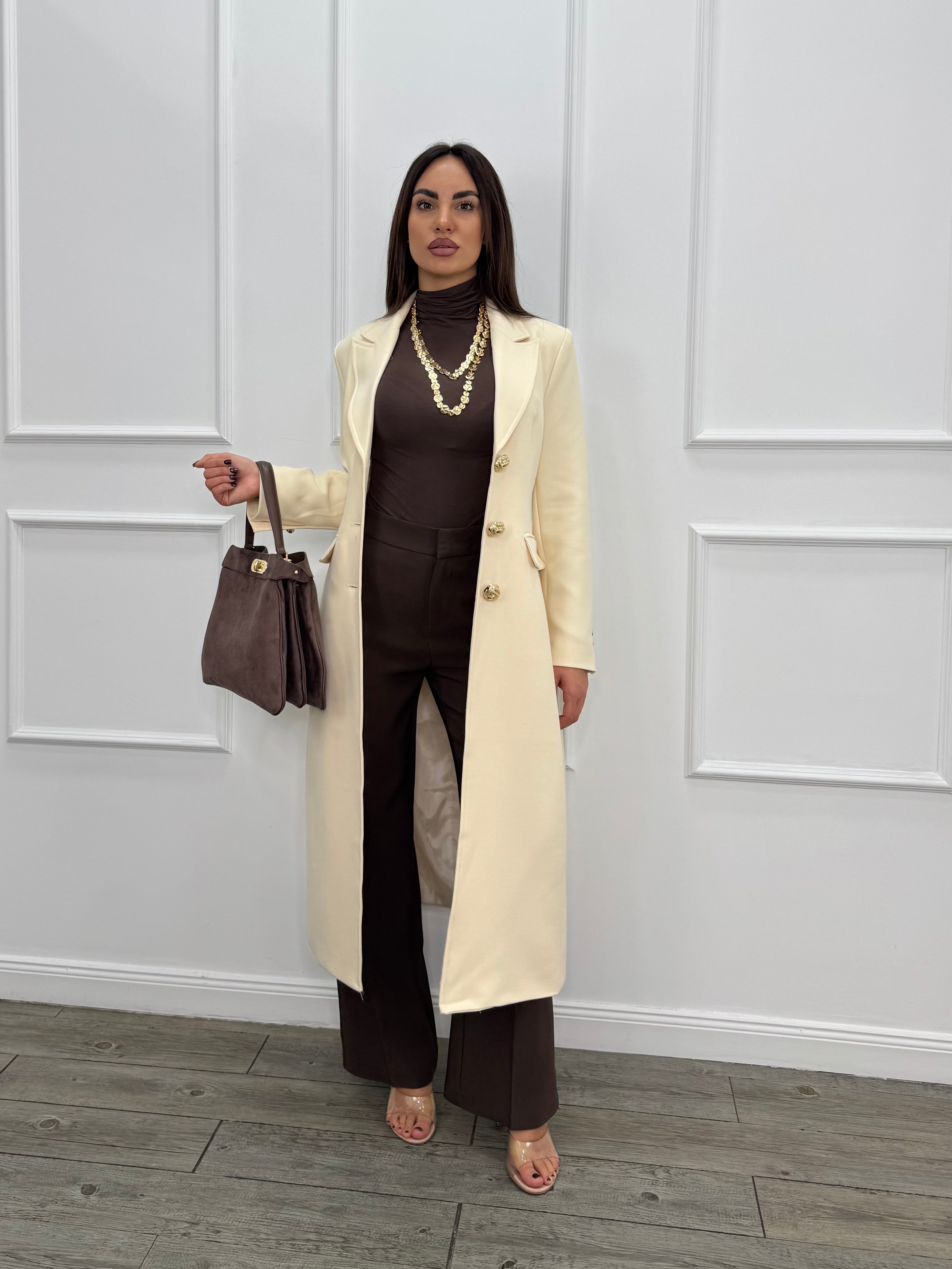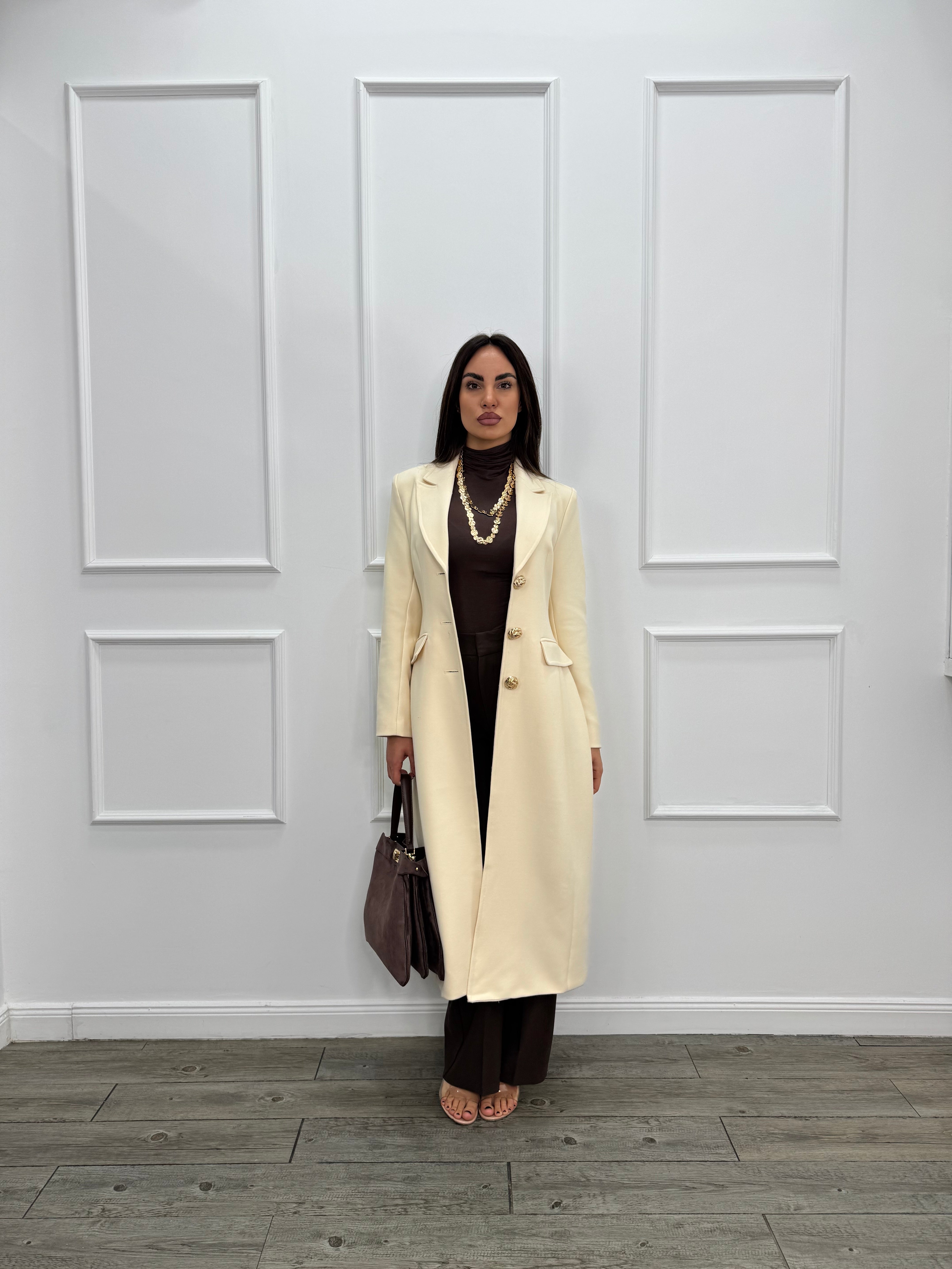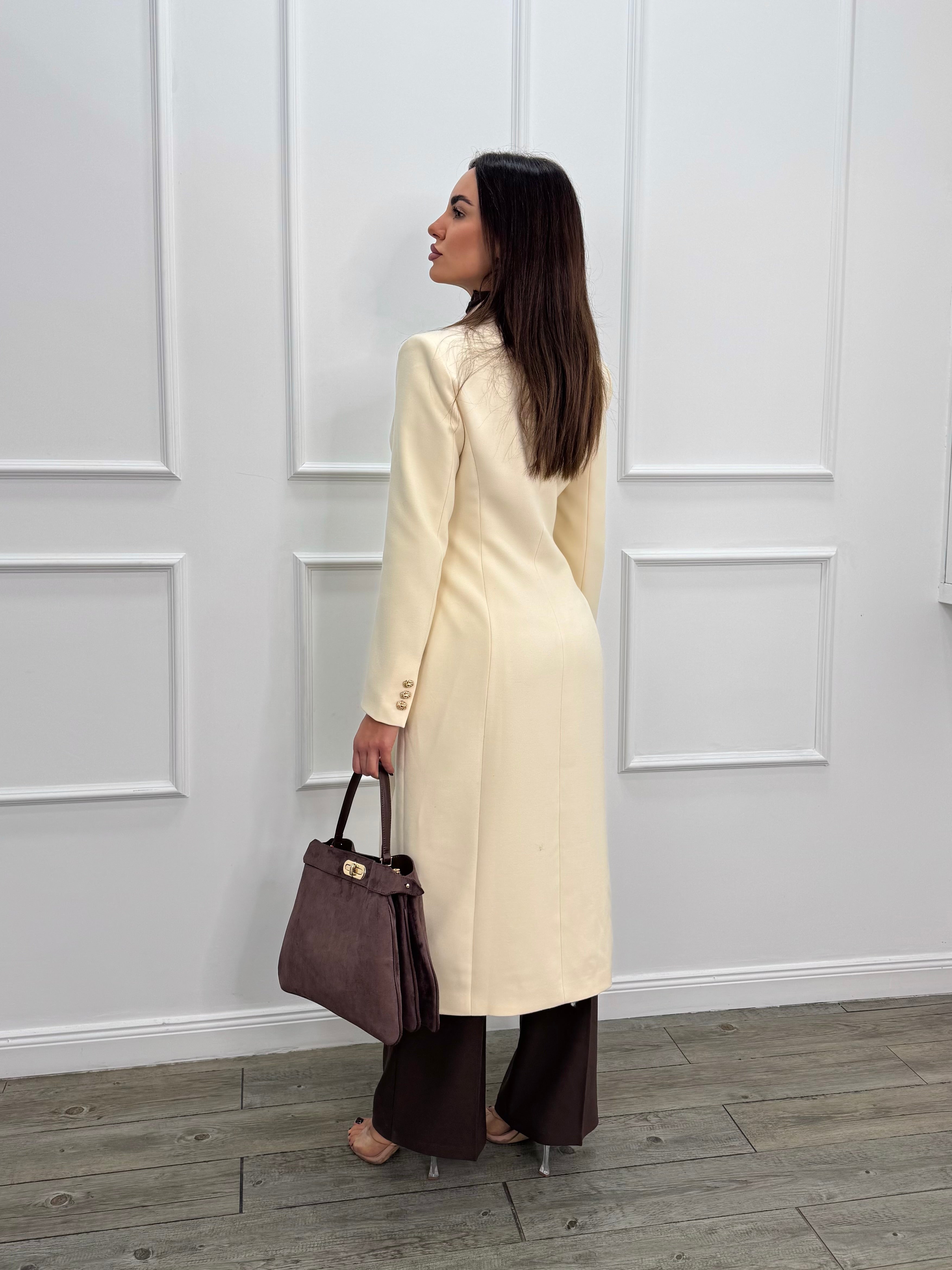 La modella è alta 1,70 cm ed indossa una taglia 40 italiana.