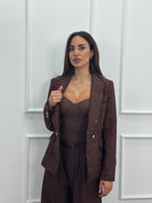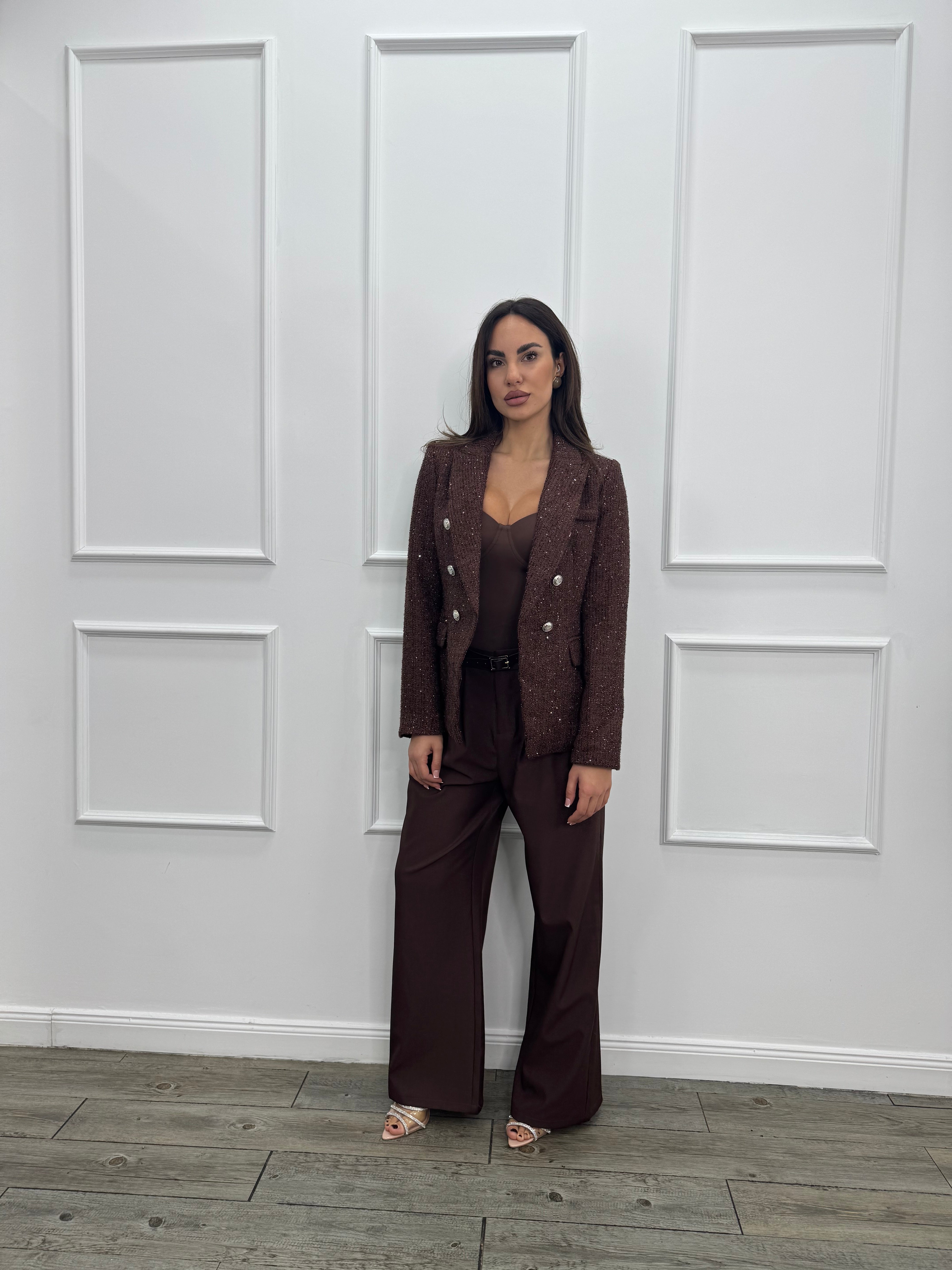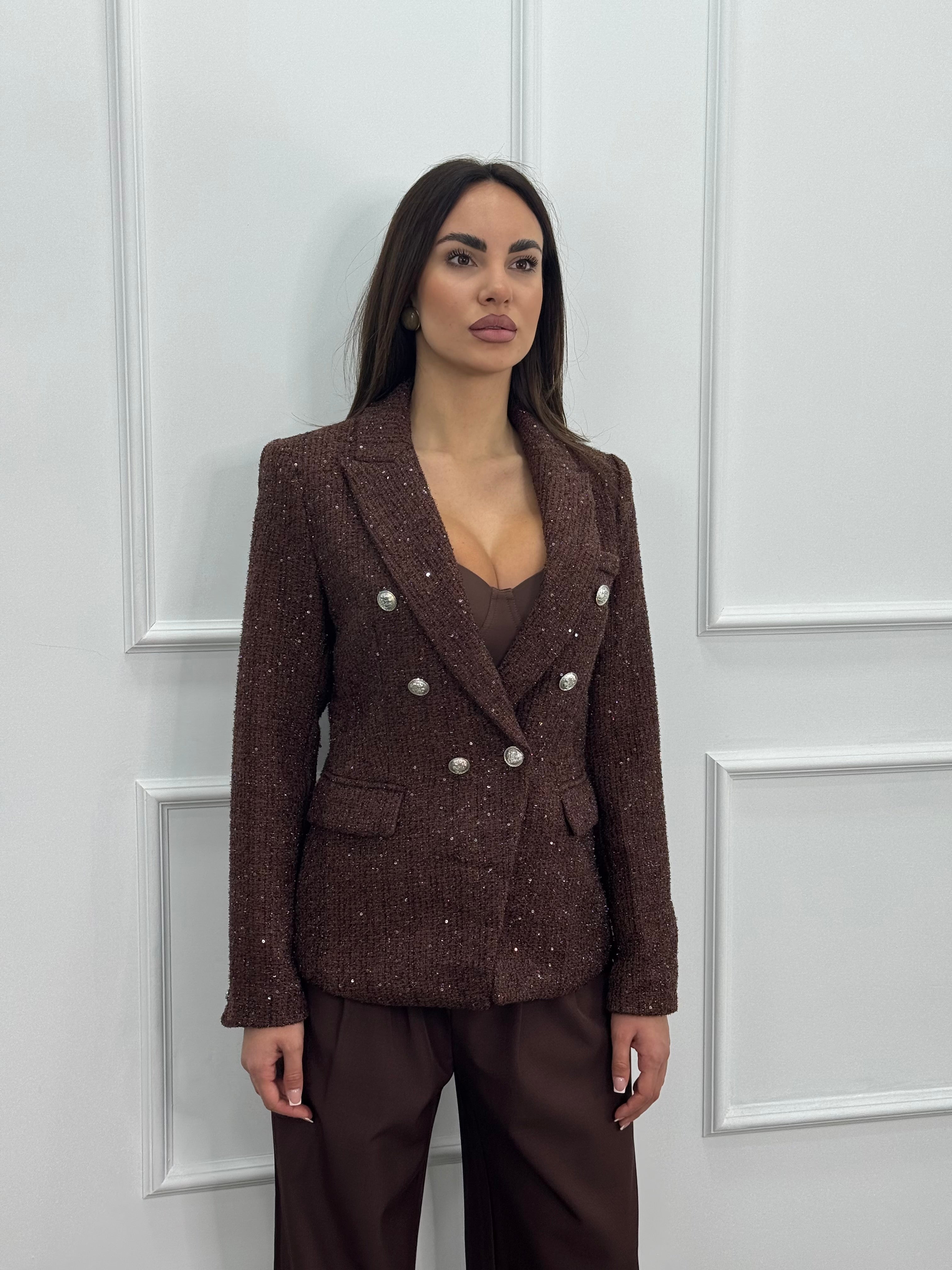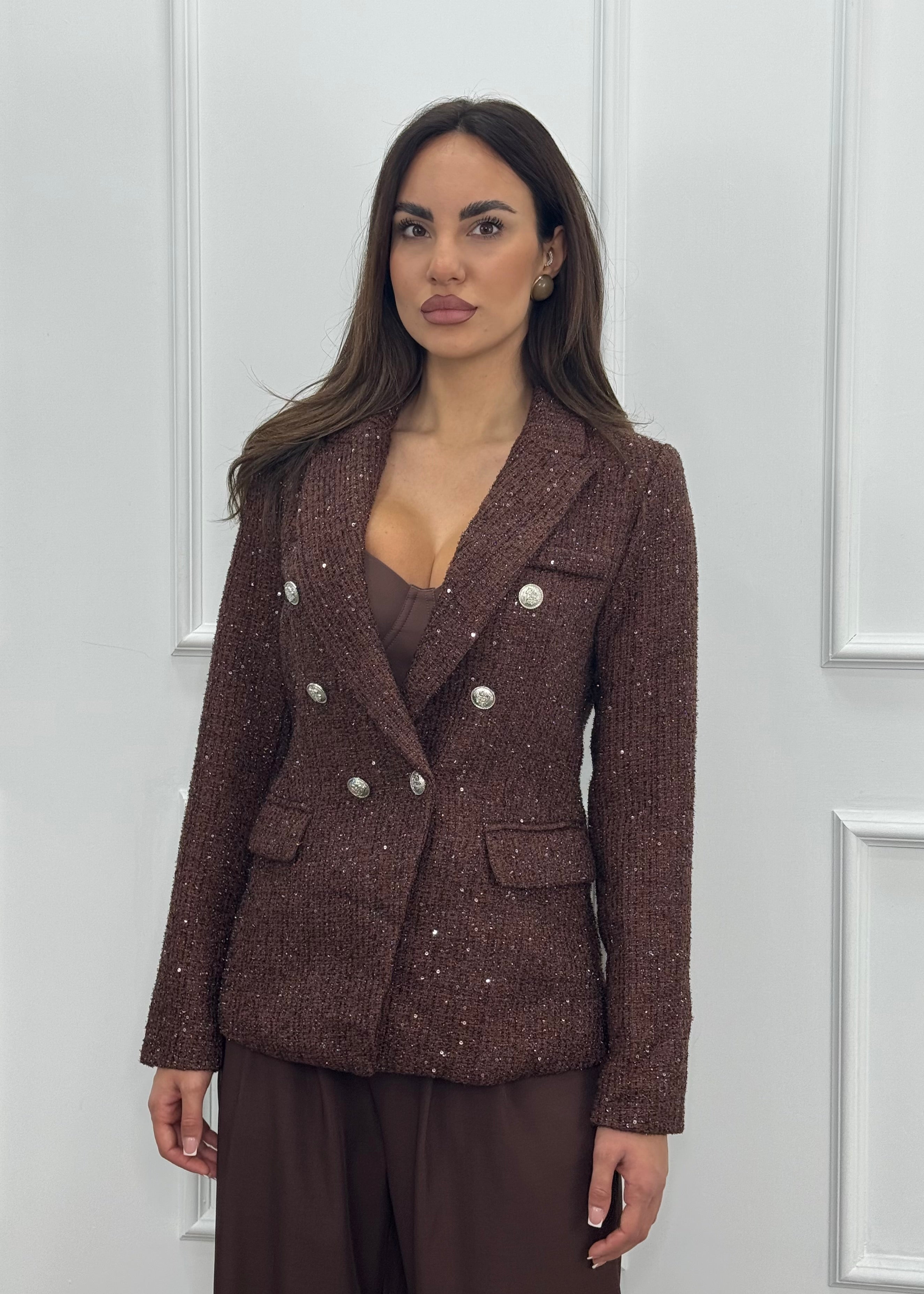 Bellissimo blazer a doppio petto con dettagli in micro paillettes.