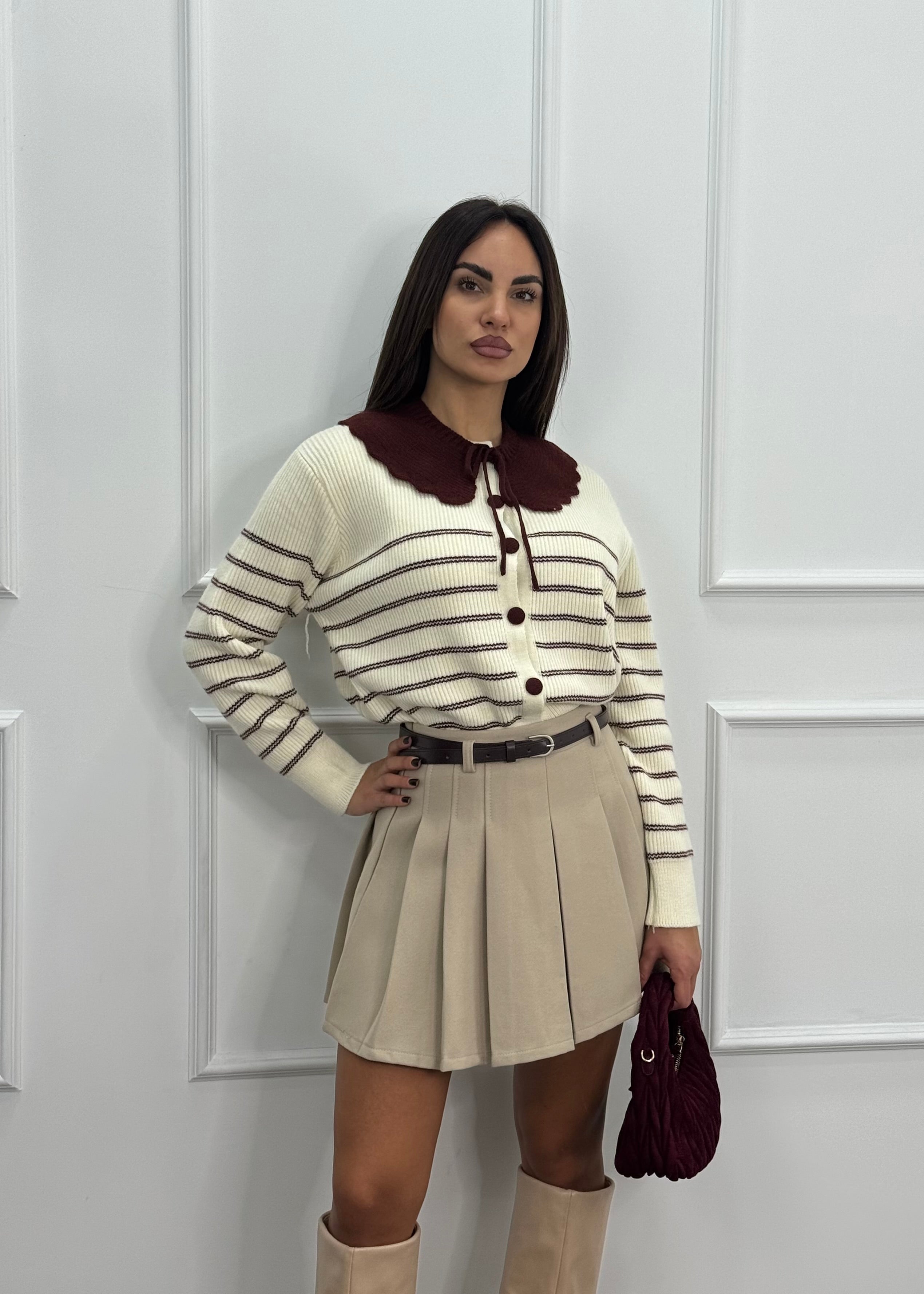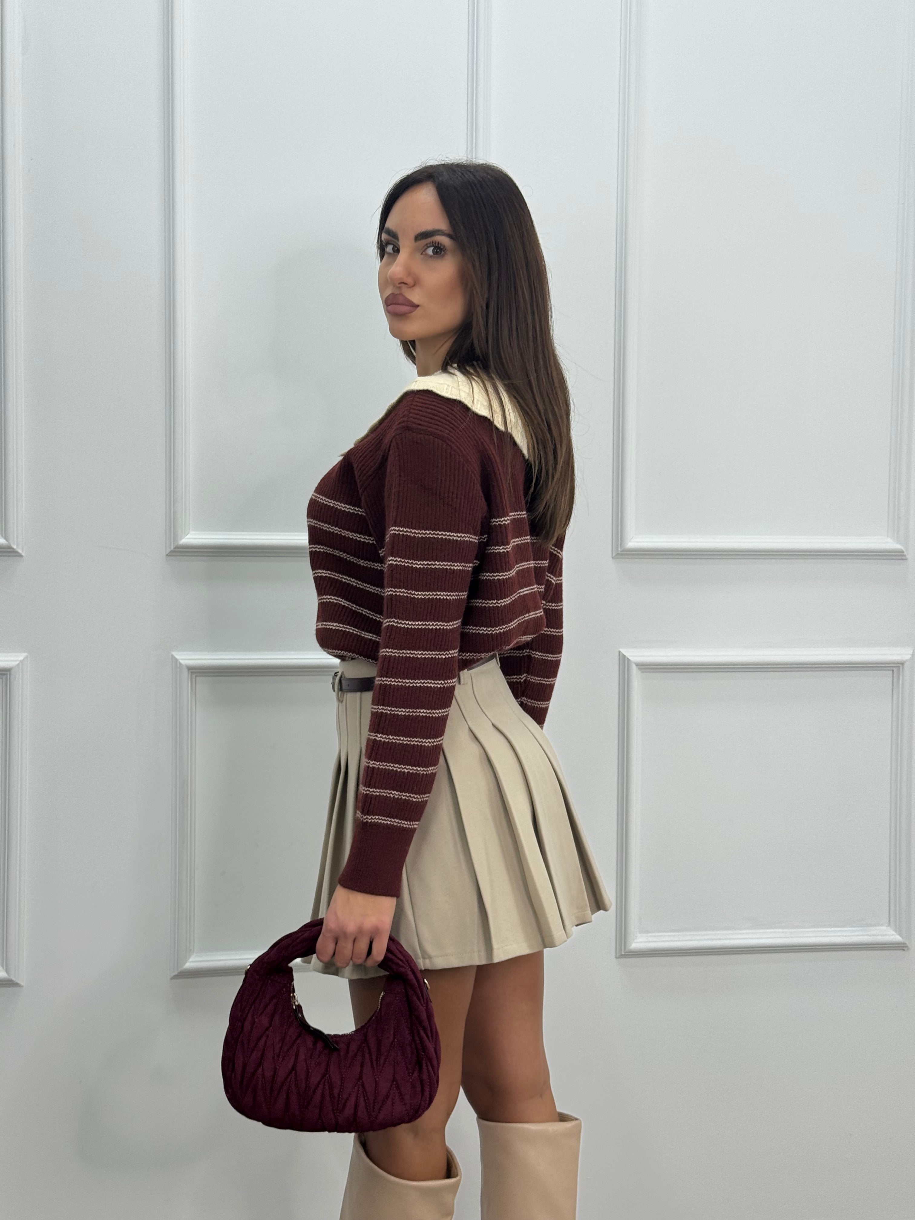 La modella è alta 1,70 cm ed indossa una taglia s.