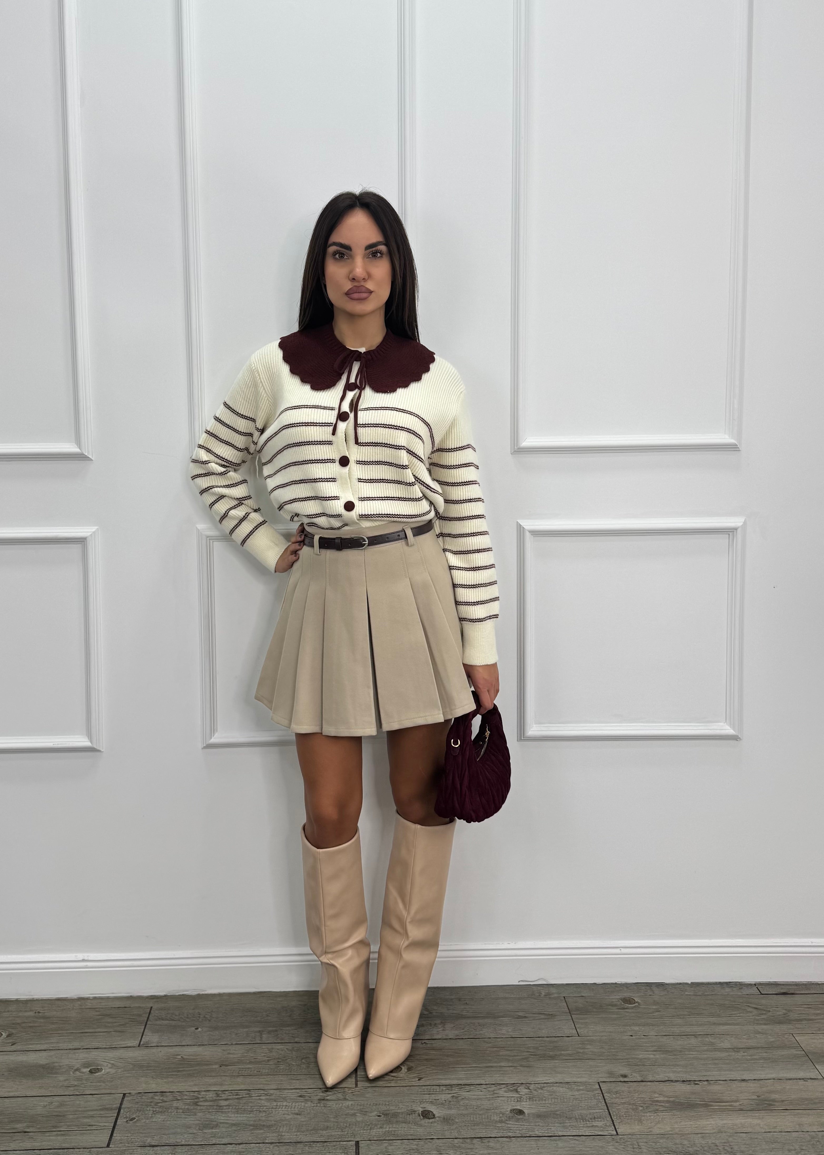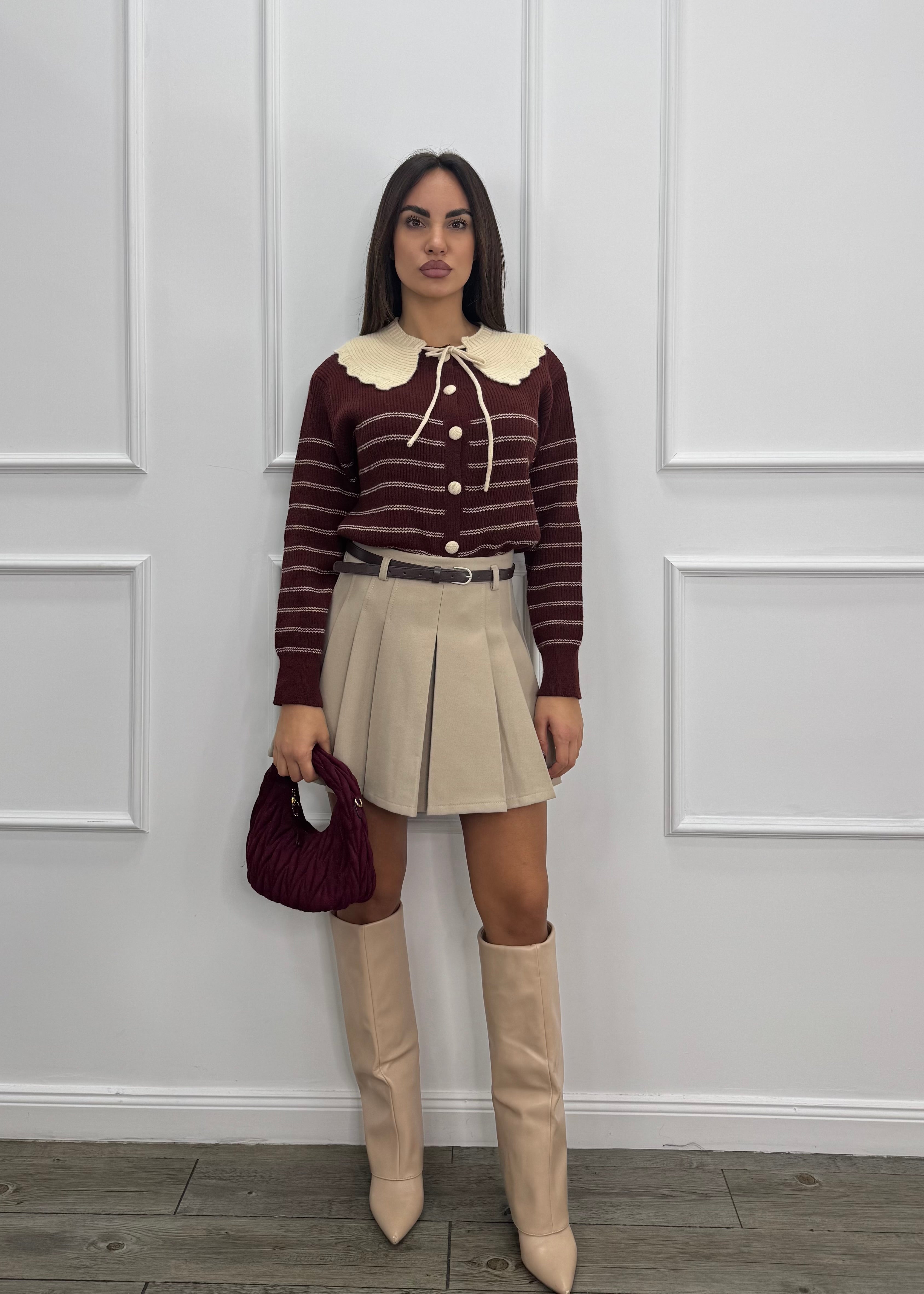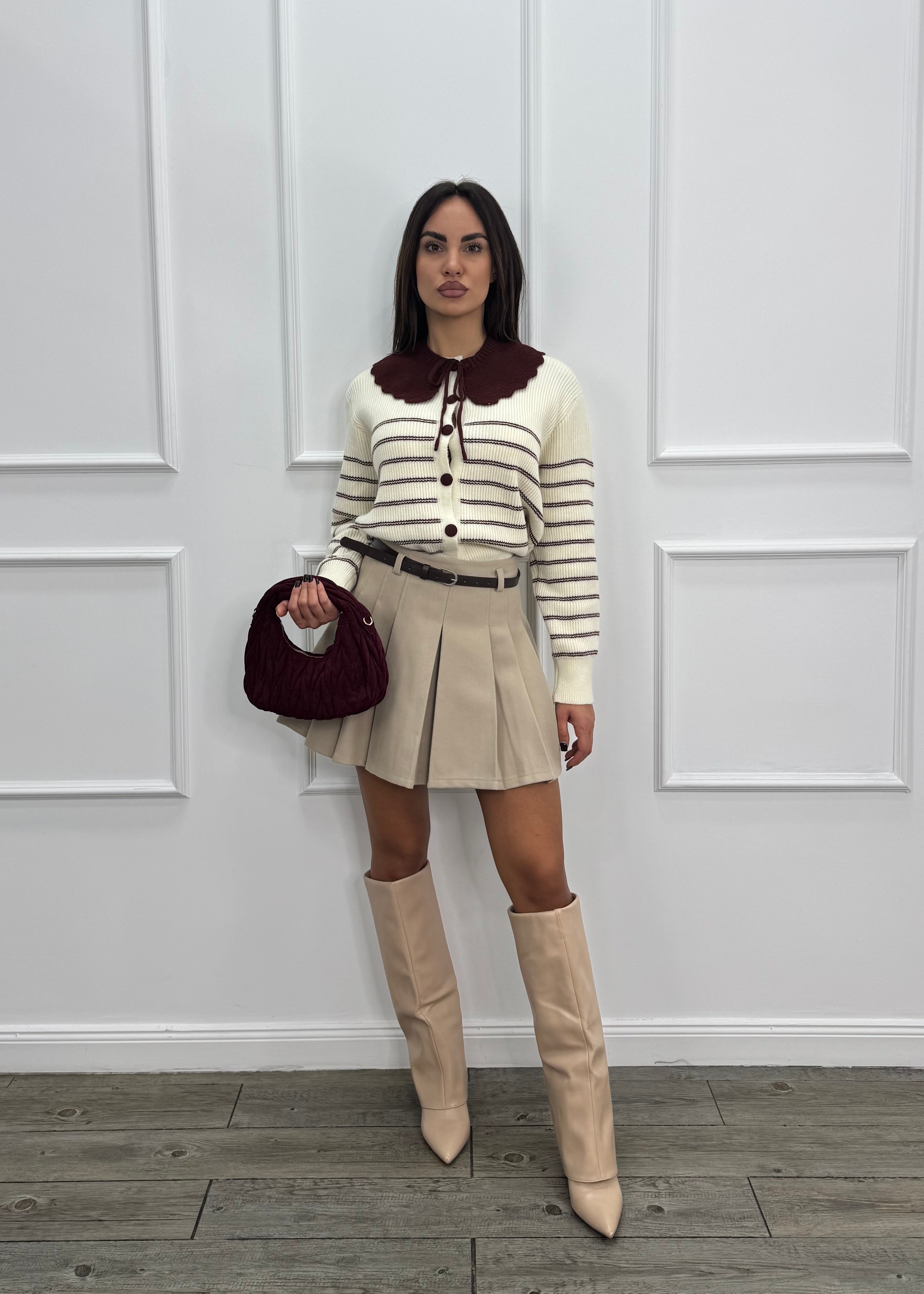 Gonna corta a vita alta plissettata .