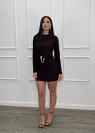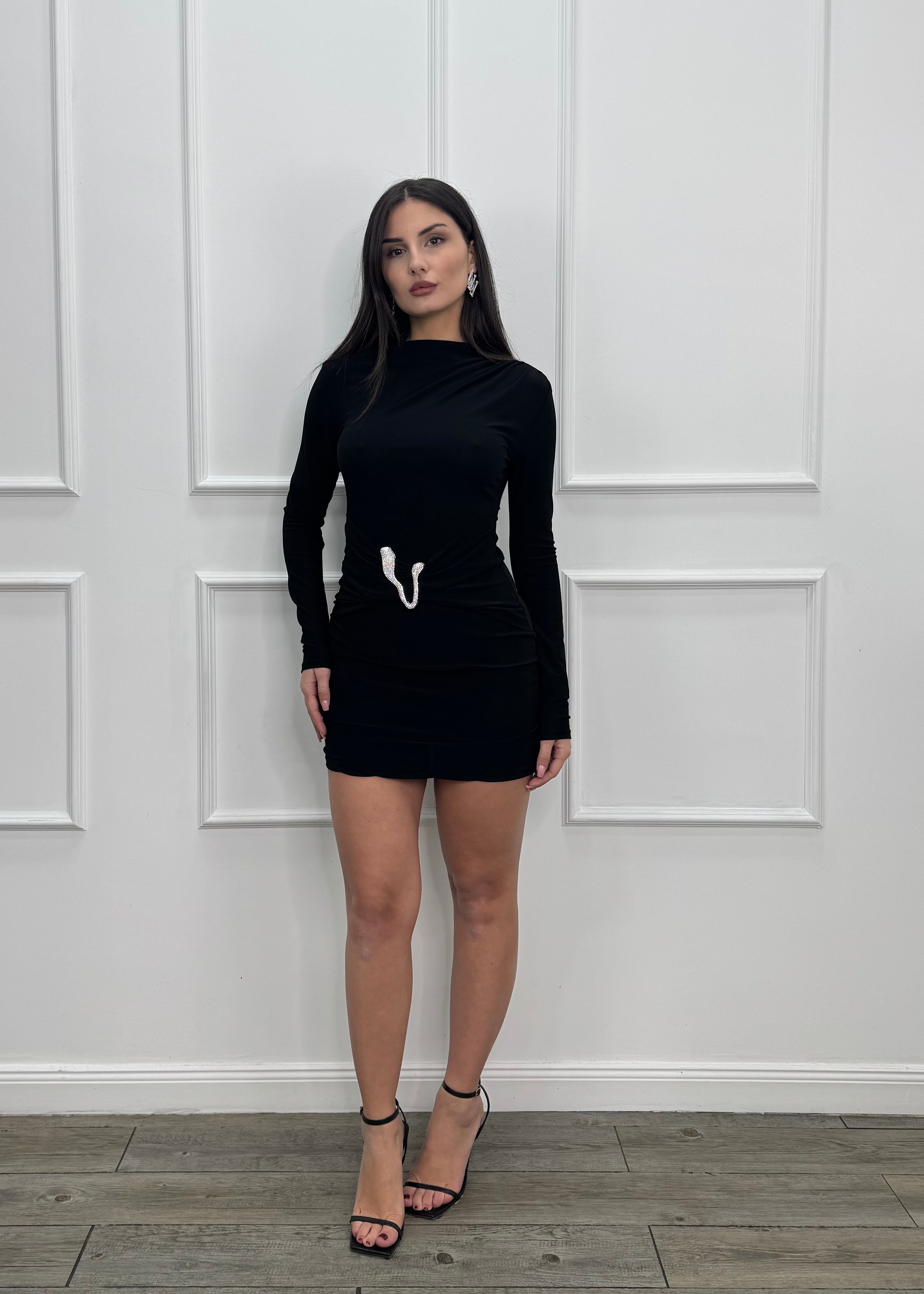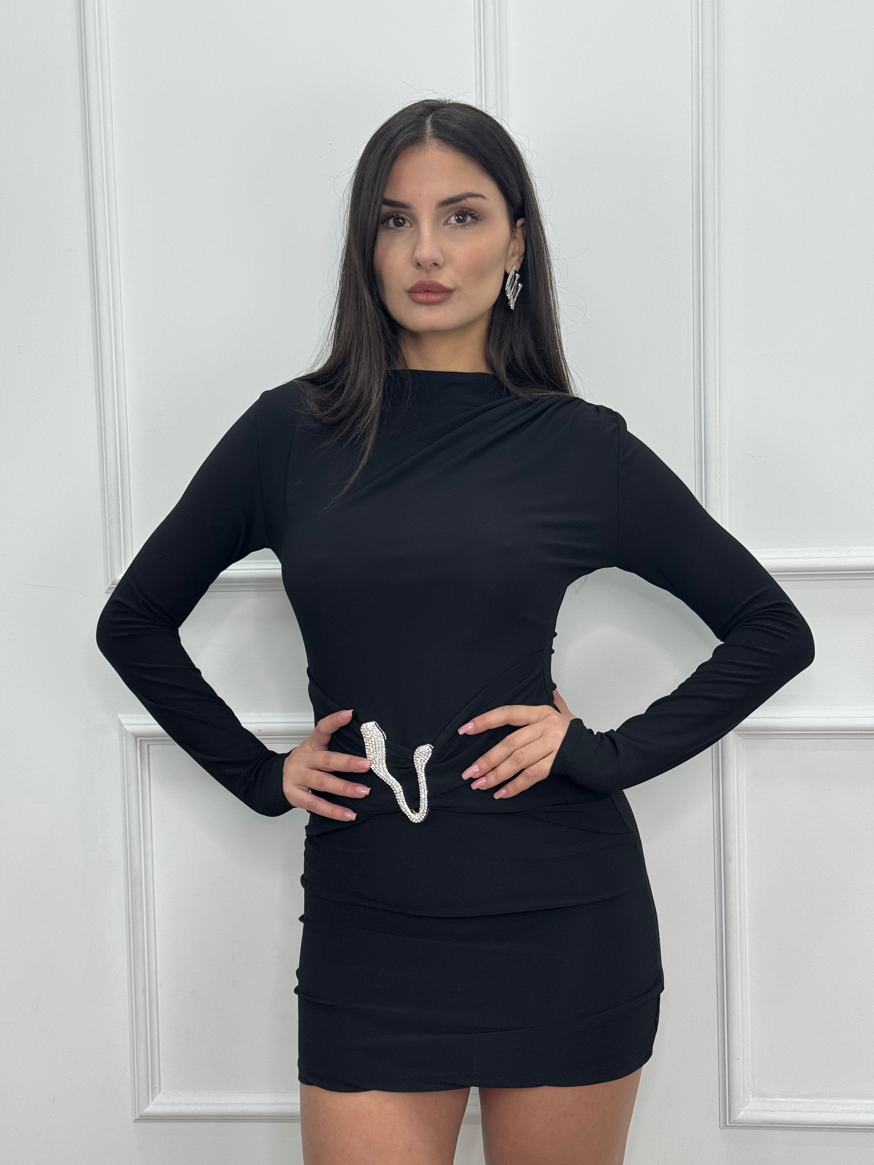 Abito corto in lycra a manica lunga .