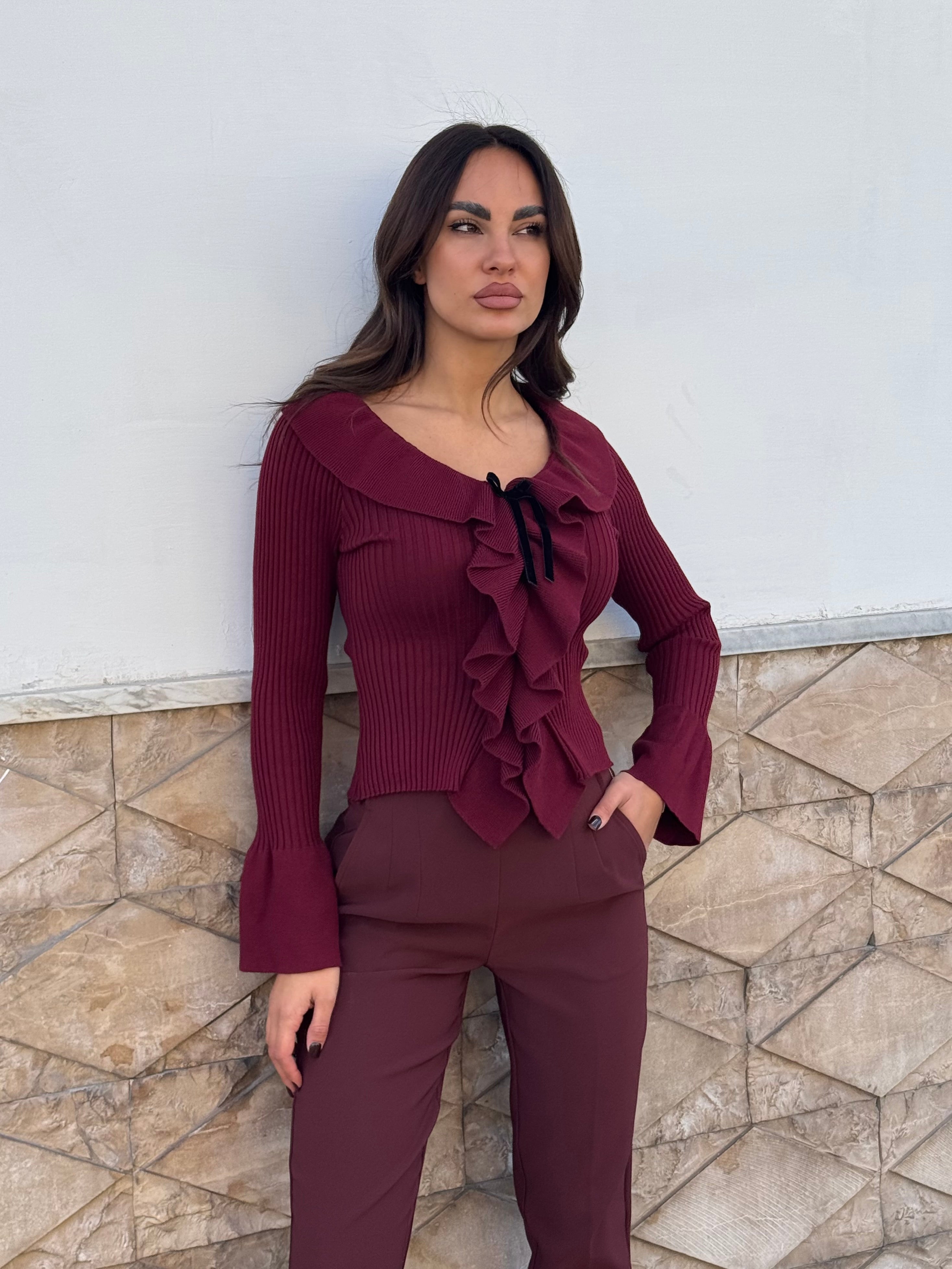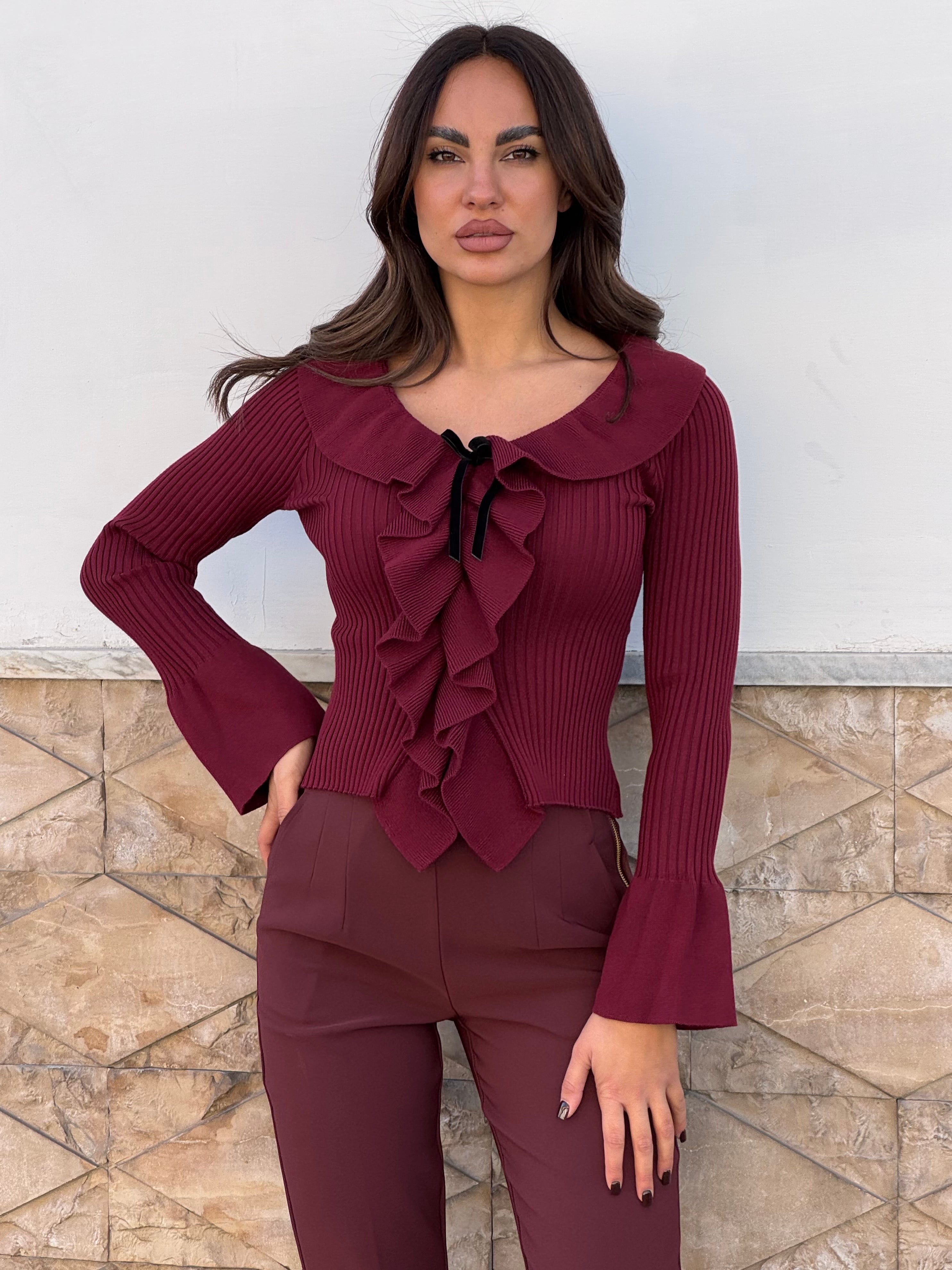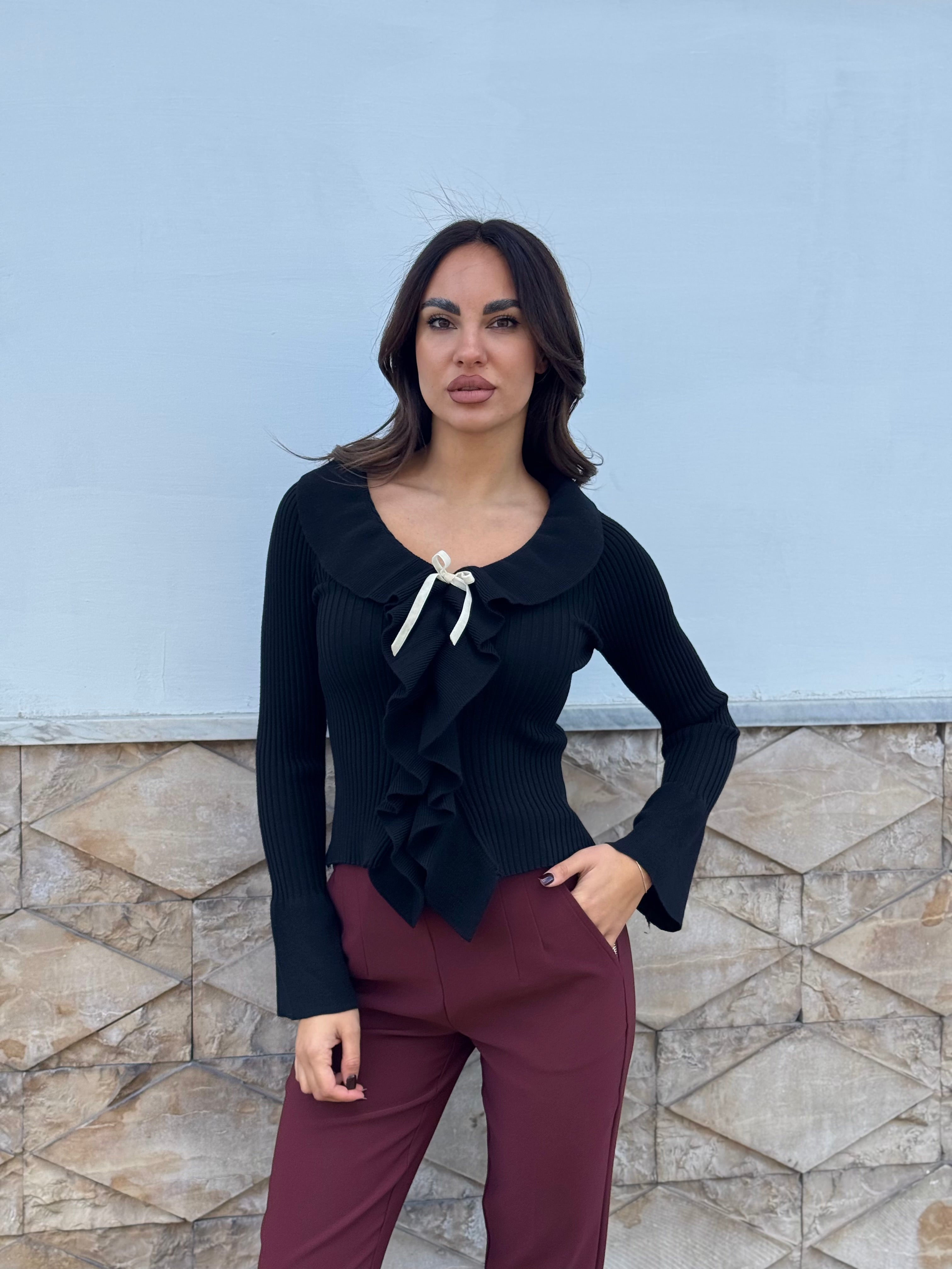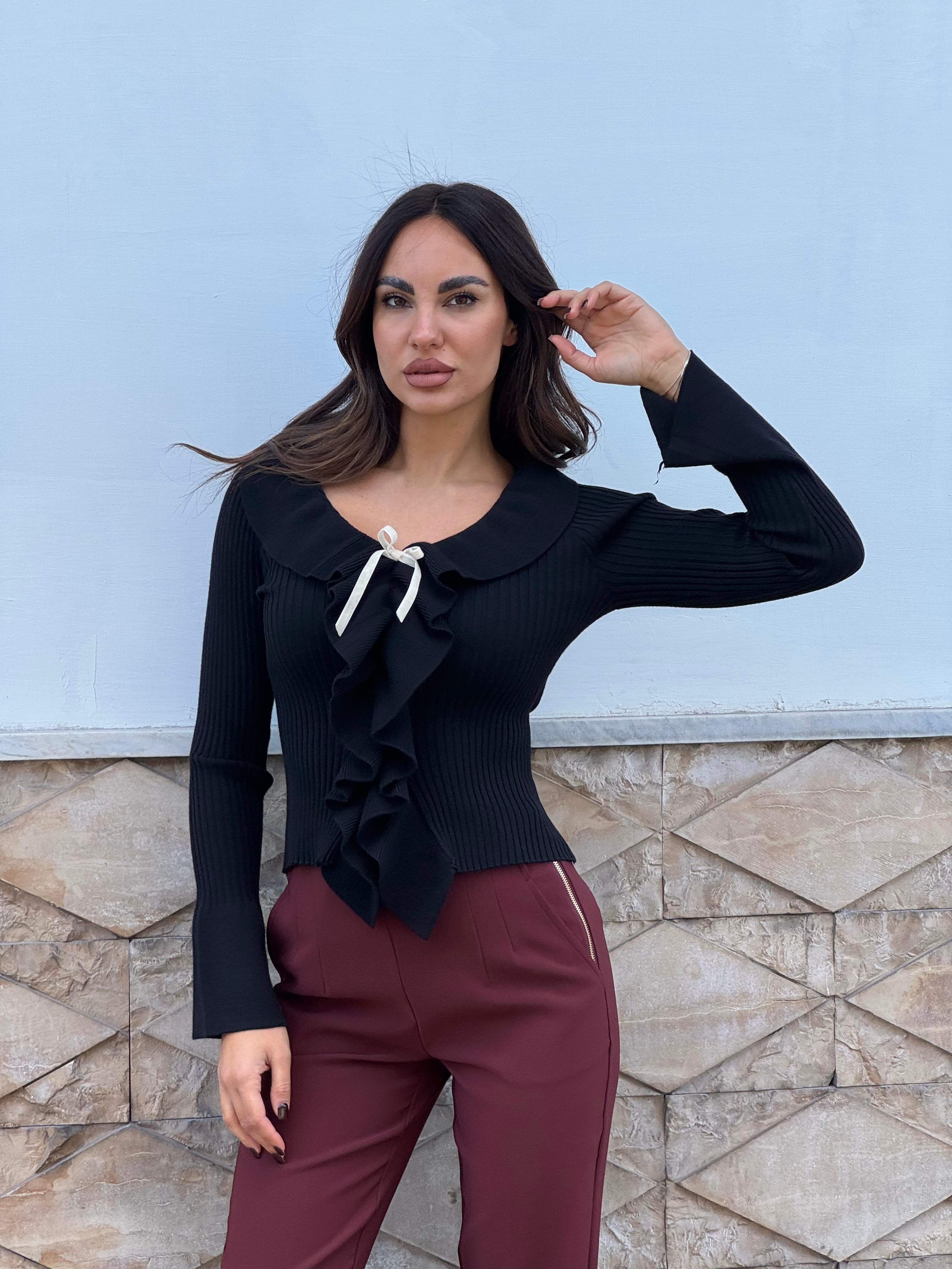 Maglia con dettagli in ruches e grazioso fiocco in velluto.