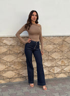 Questo jeans elastico è perfetto per completare il tuo look con confort e stile.