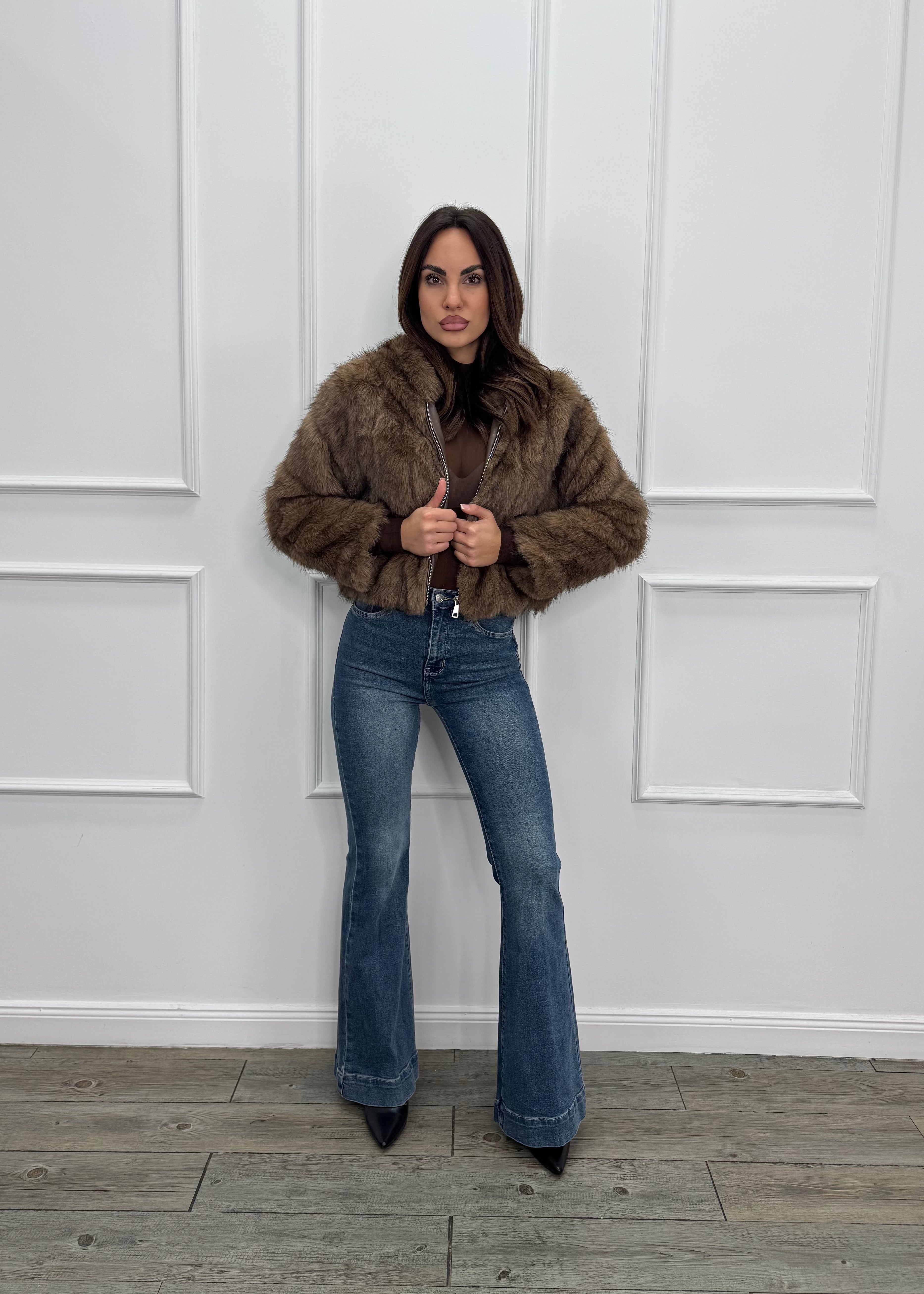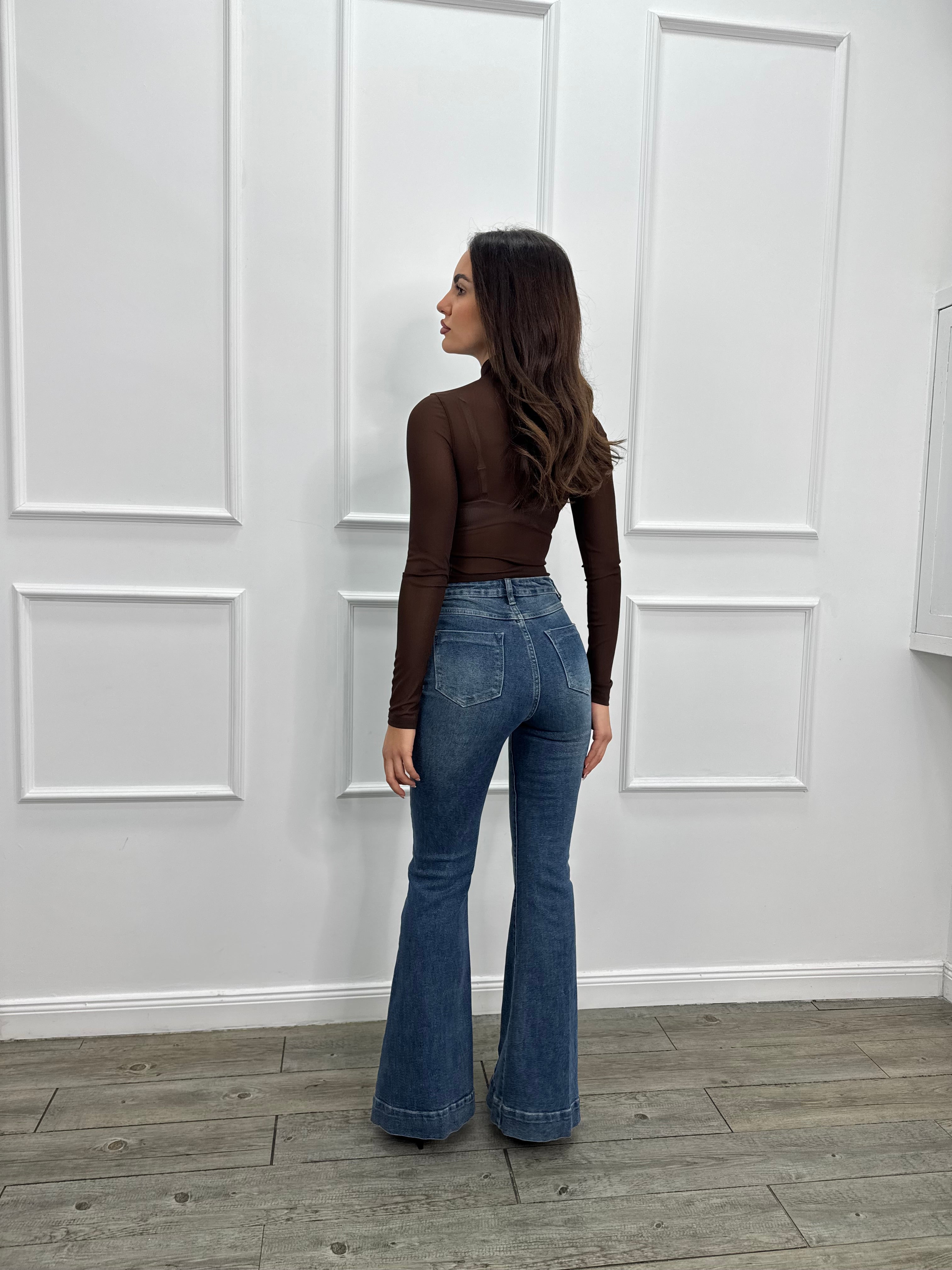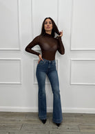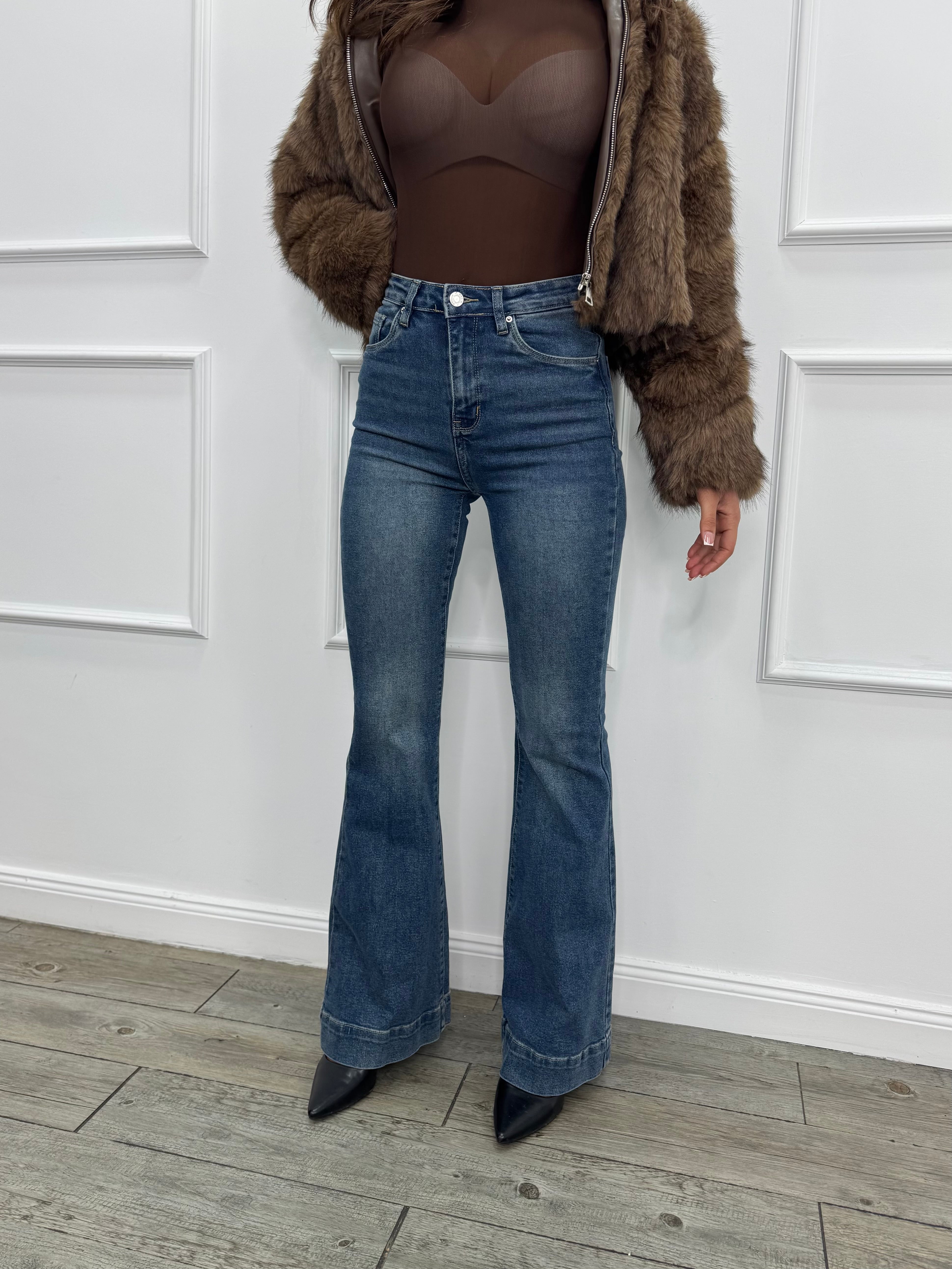 Questo jeans elastico a zampa assicura confort e stile per il tuo outfit.