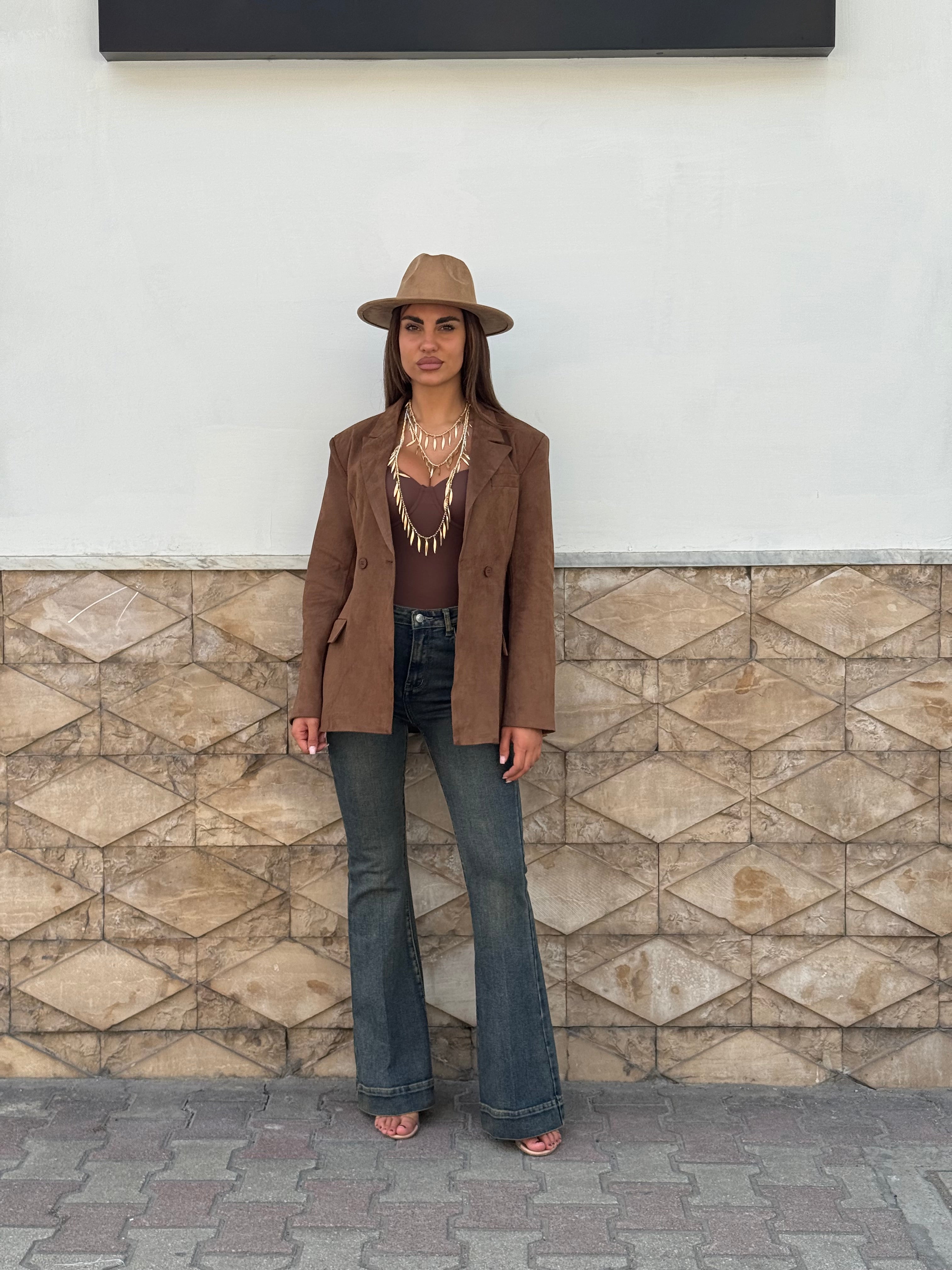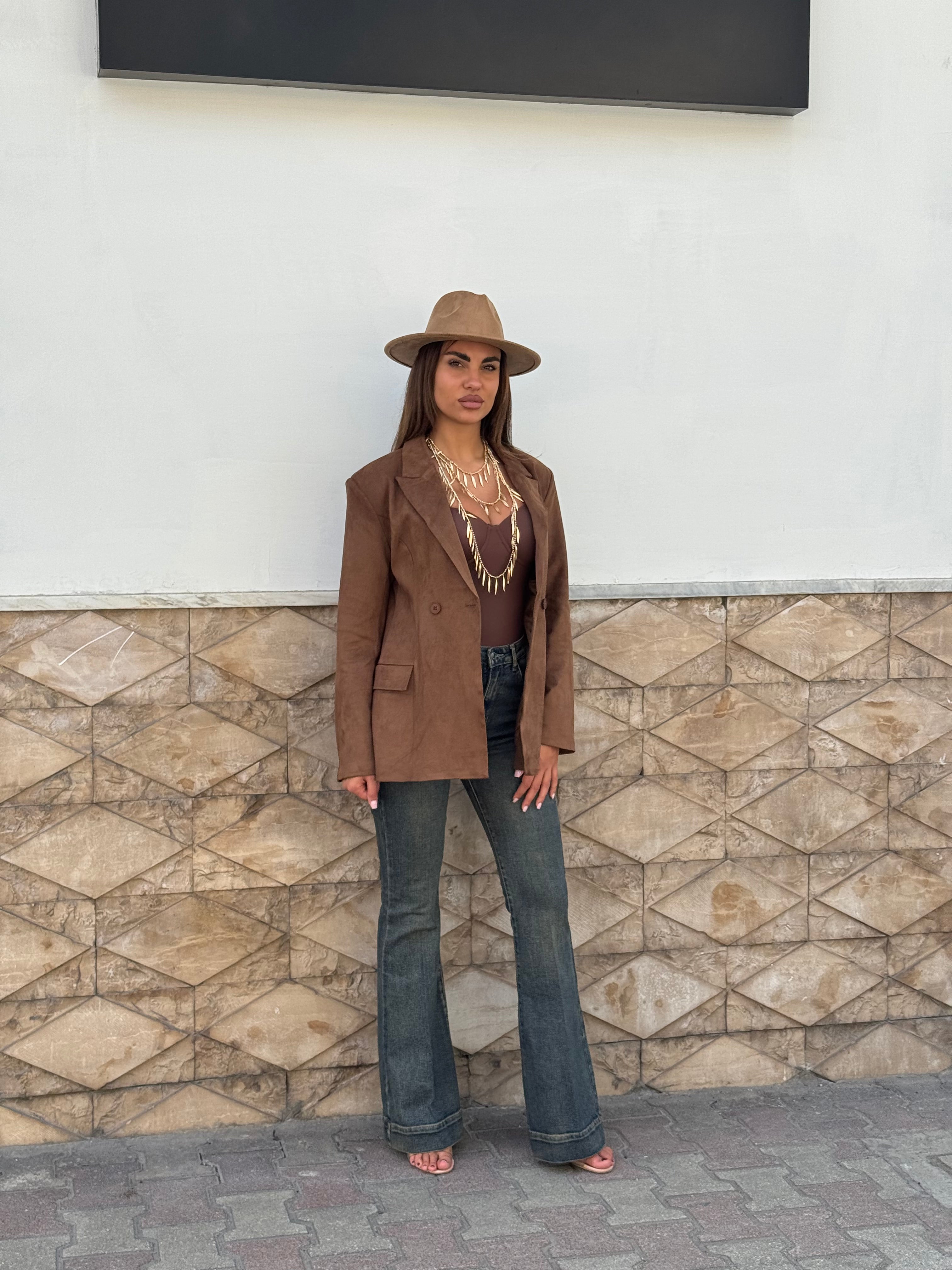 La modella è alta 1,70 cm ed indossa una taglia 40.