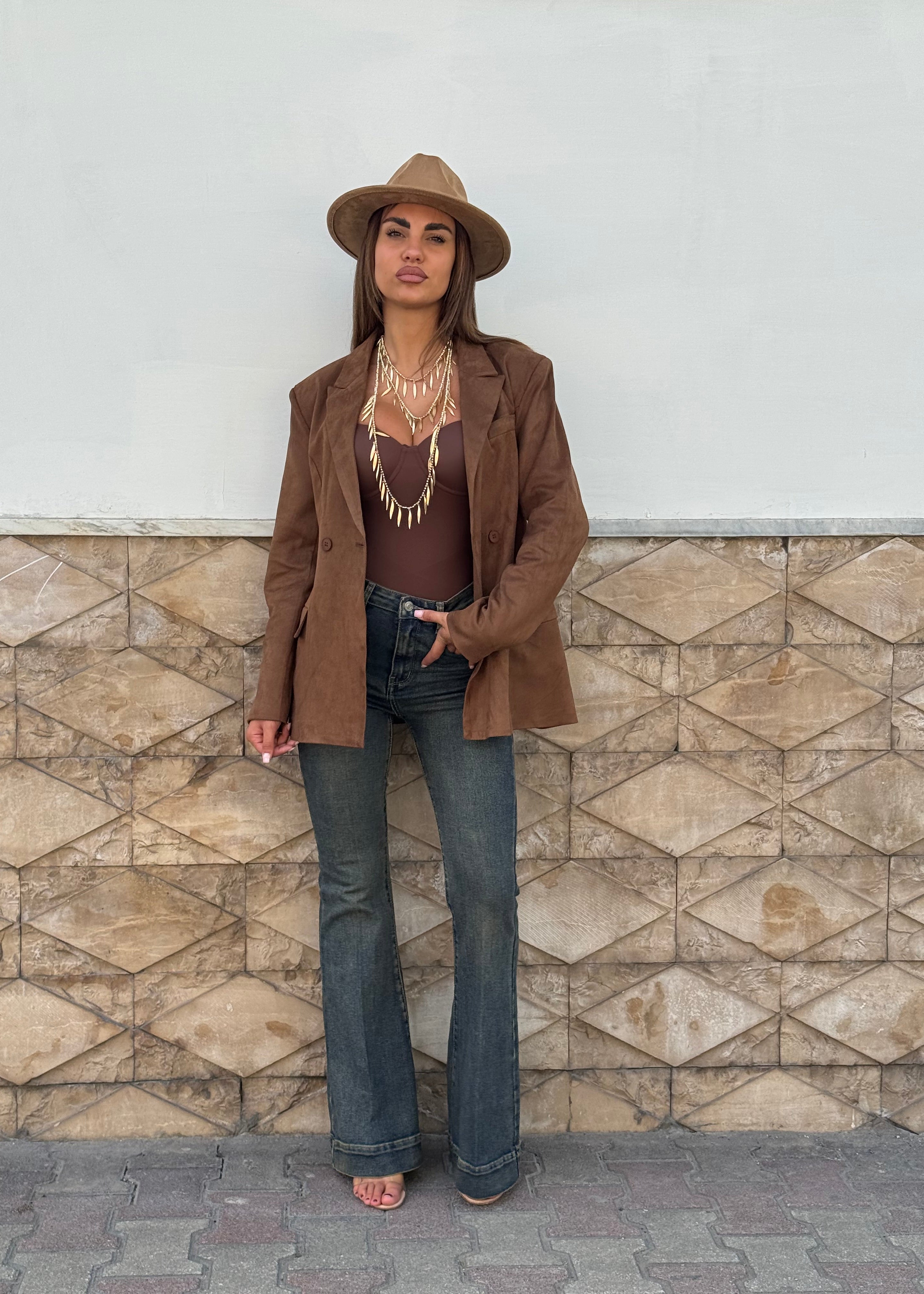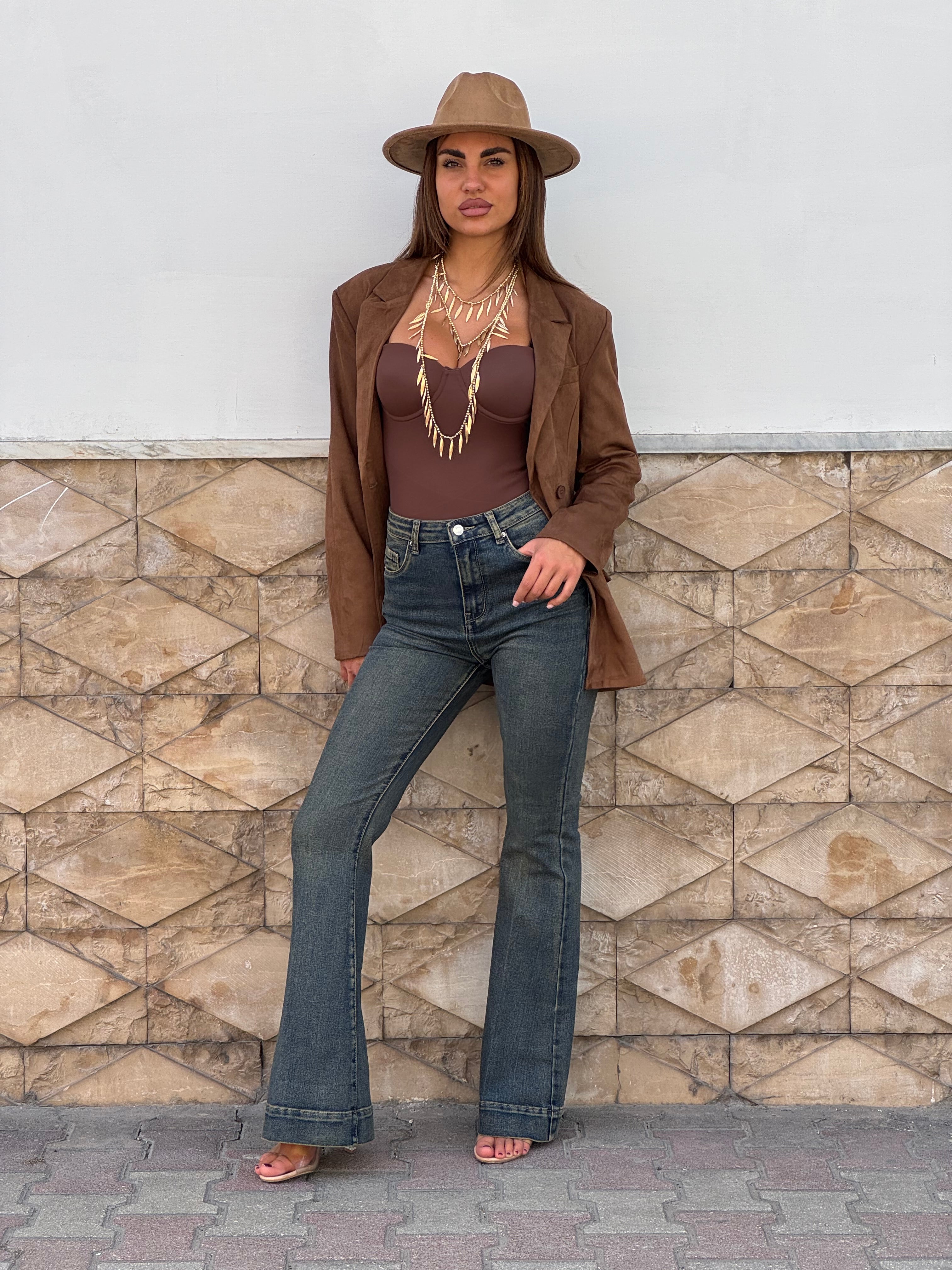 Questo jeans elastico a zampa assicura confort e stile per il tuo outfit.
