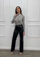 La modella è alta 1,70 cm indossa una taglia 40 italiana.