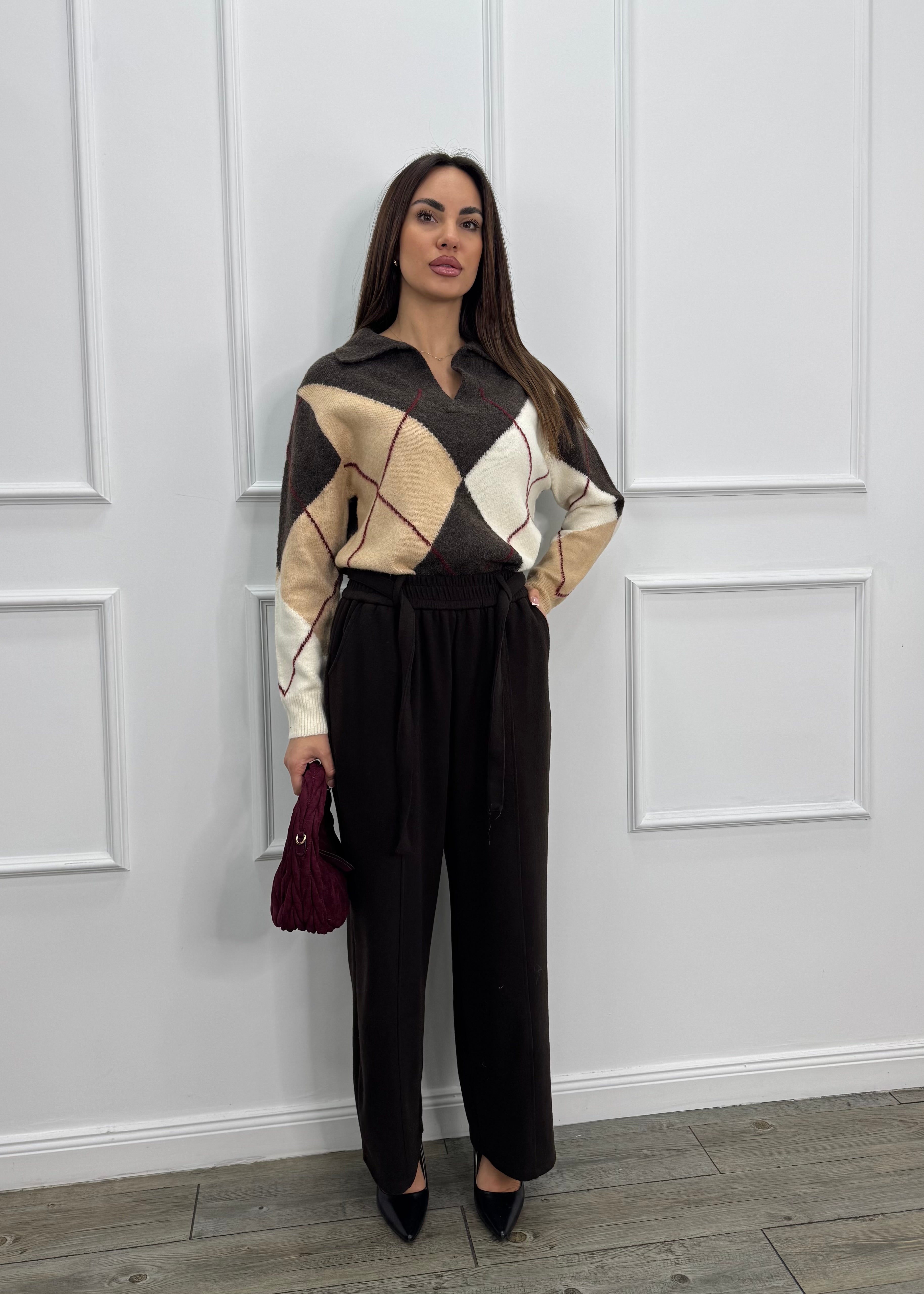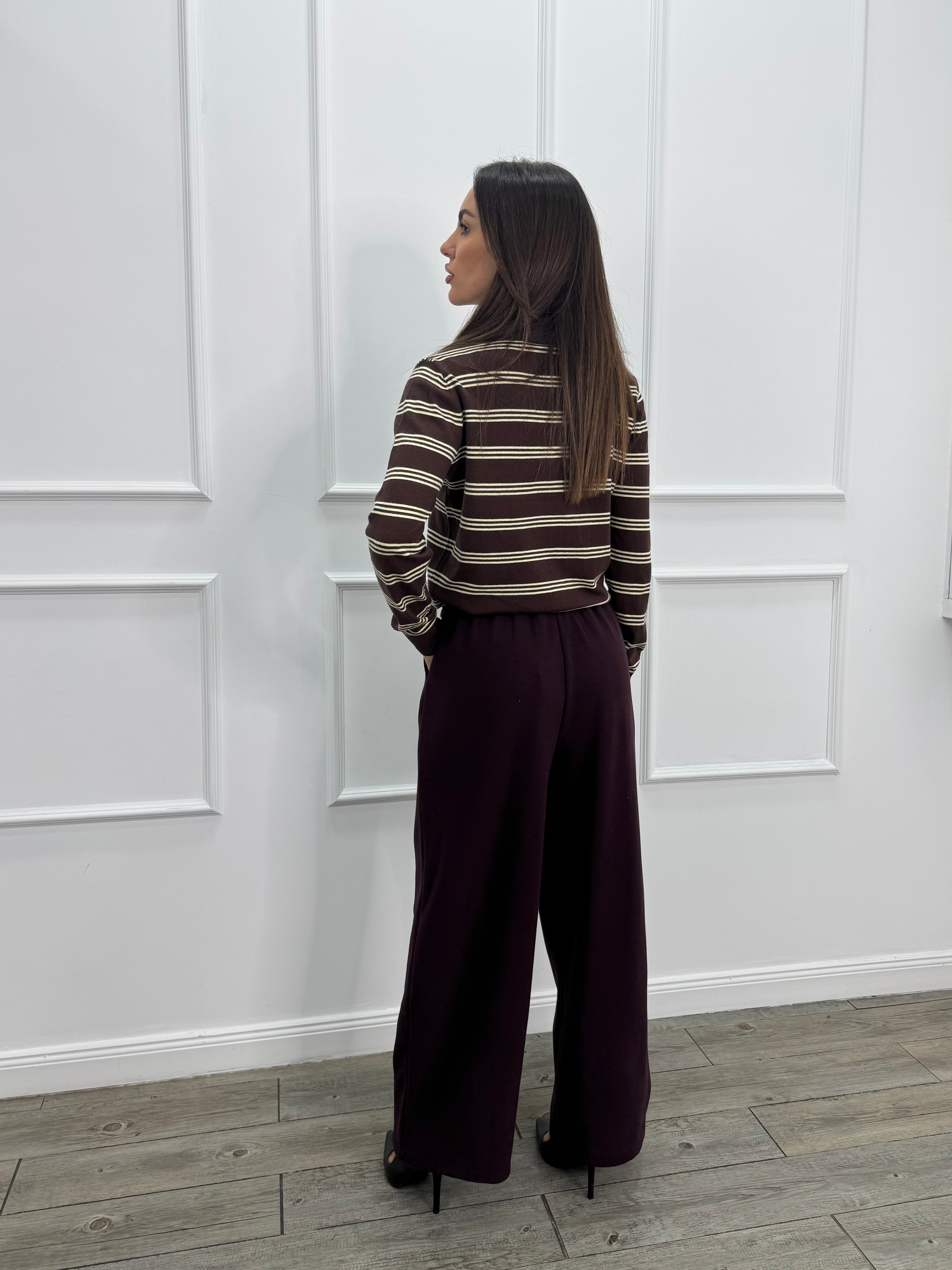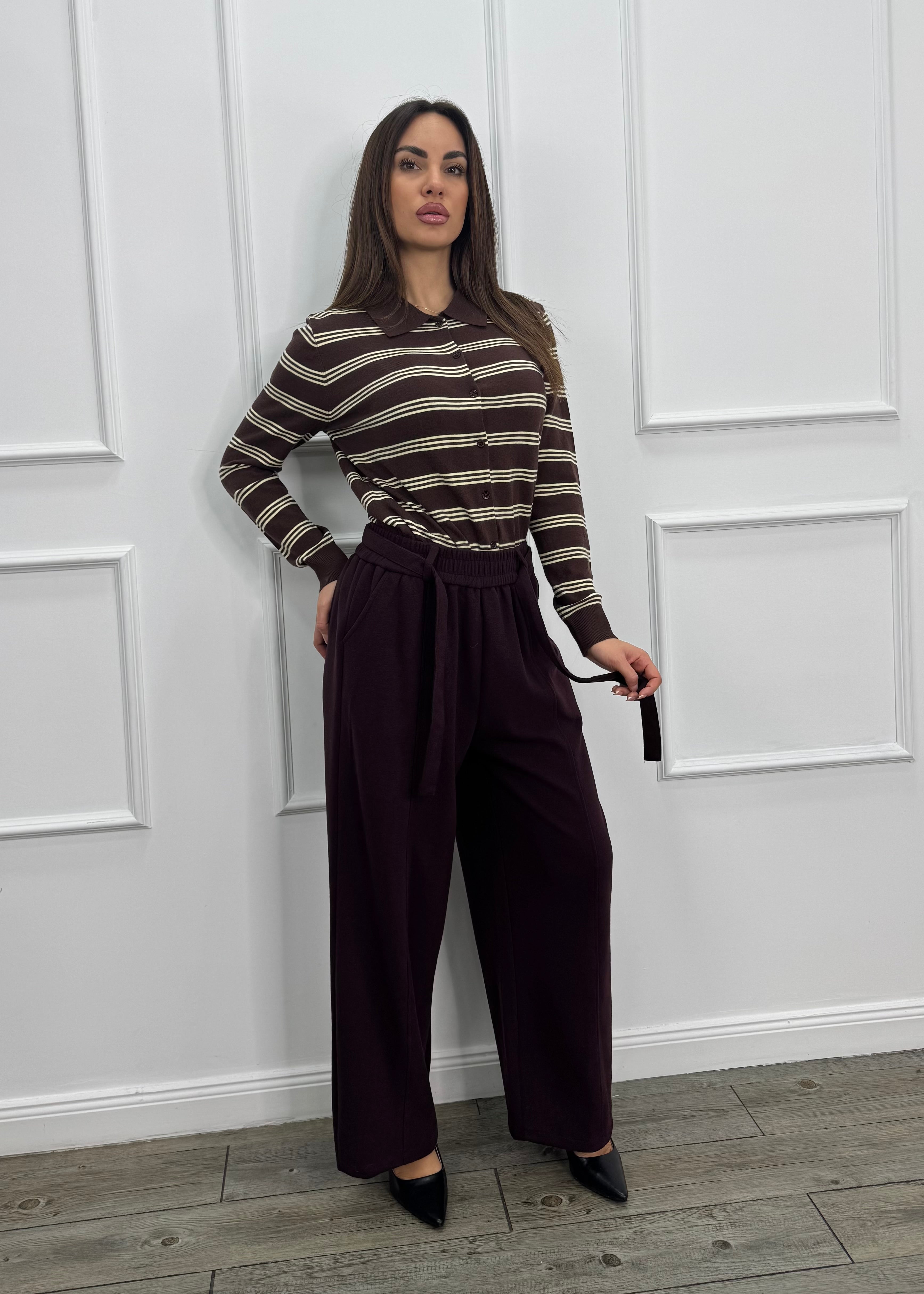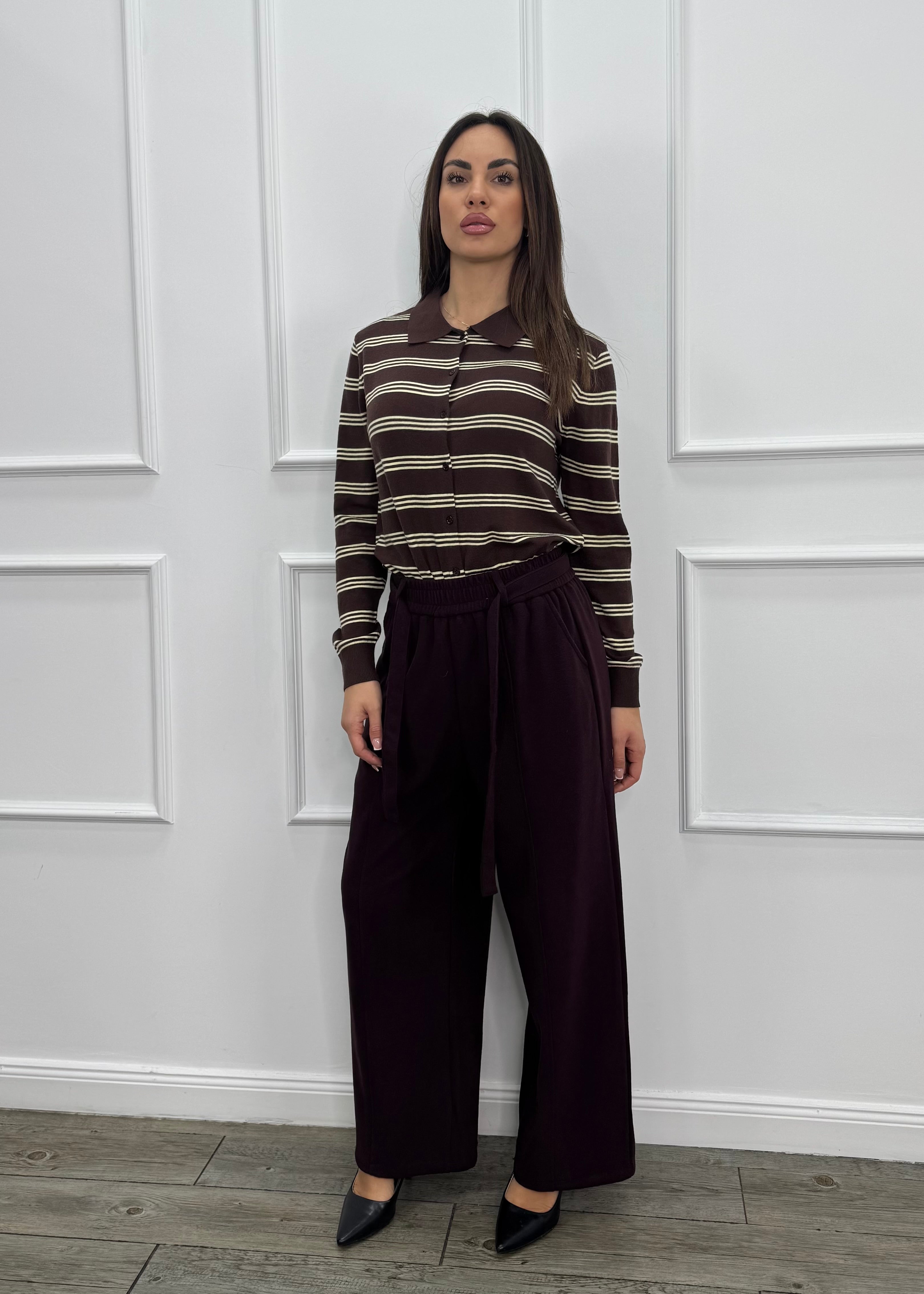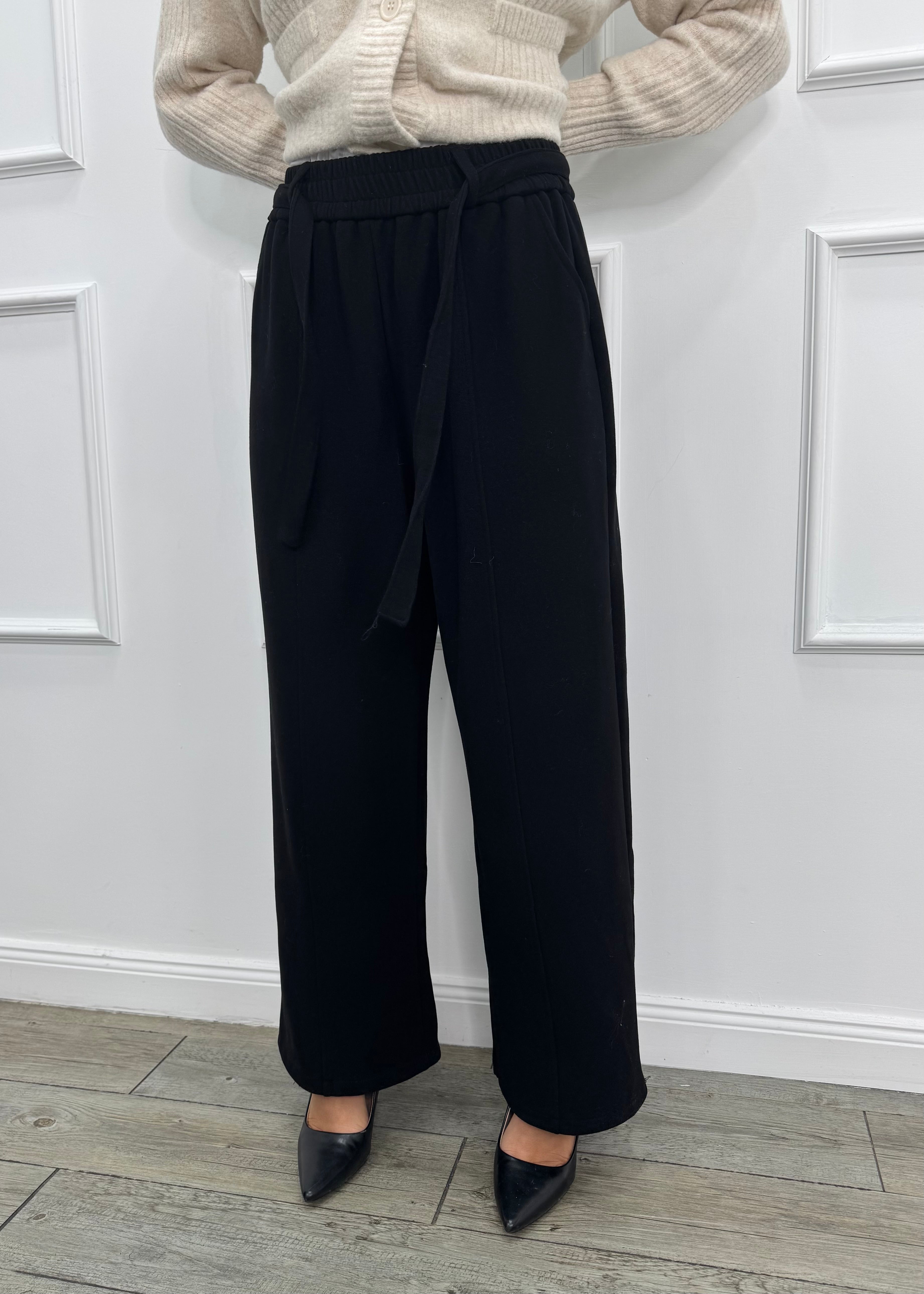 Elastico in vita e cinturino dello stesso tessuto regolabile.