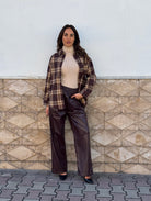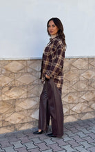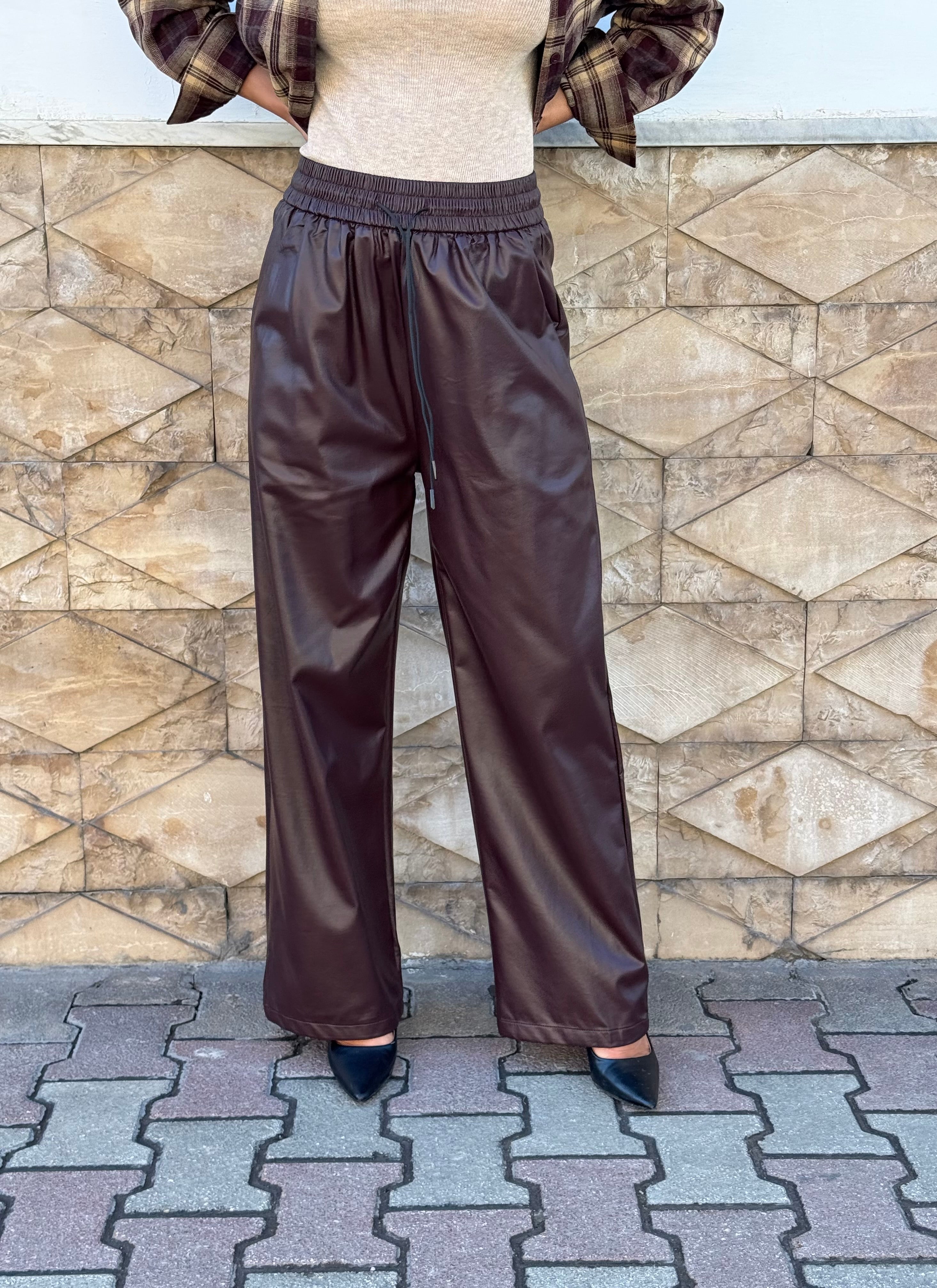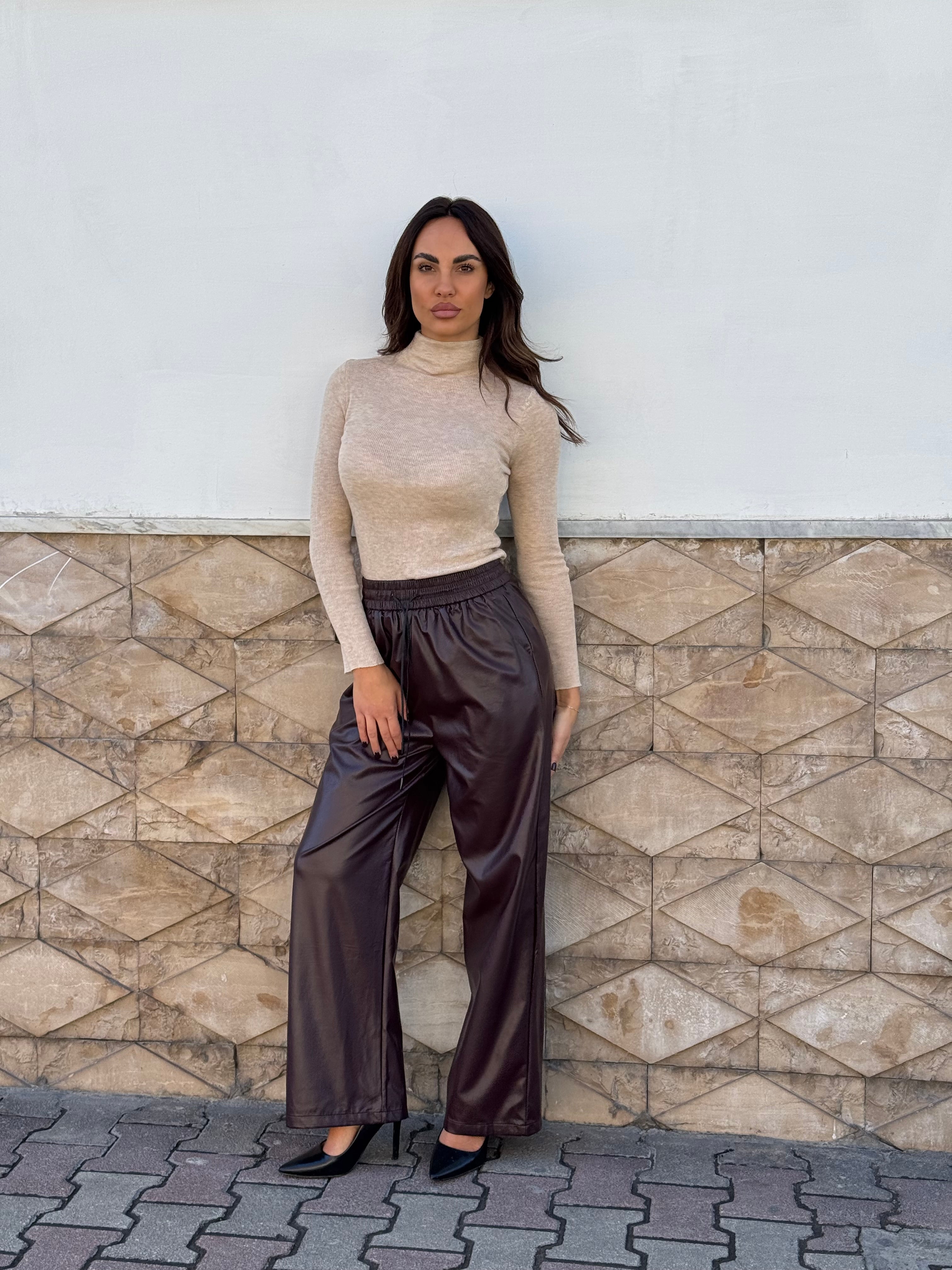 Pantaloni ecopelle con elastico in vita .