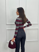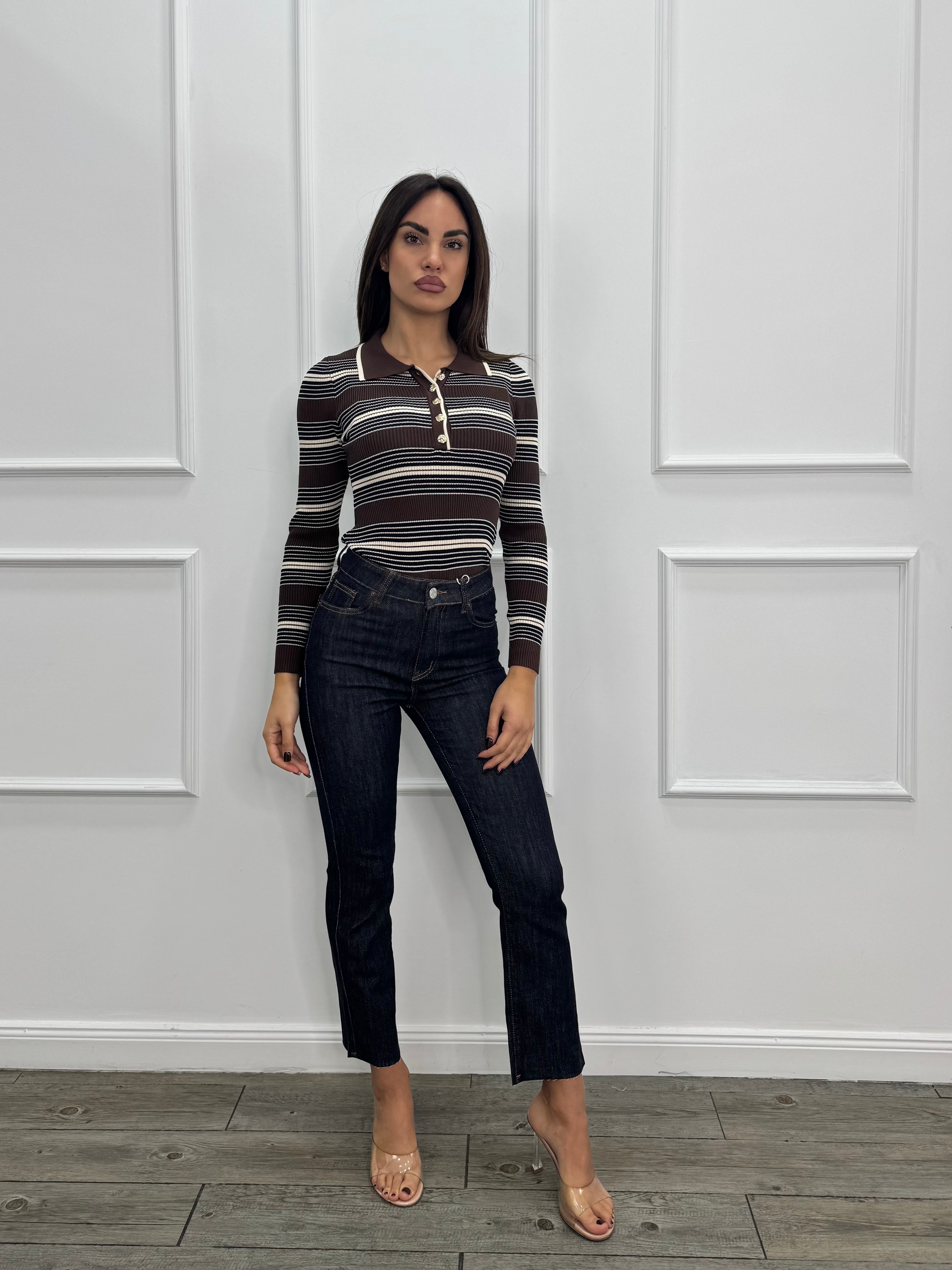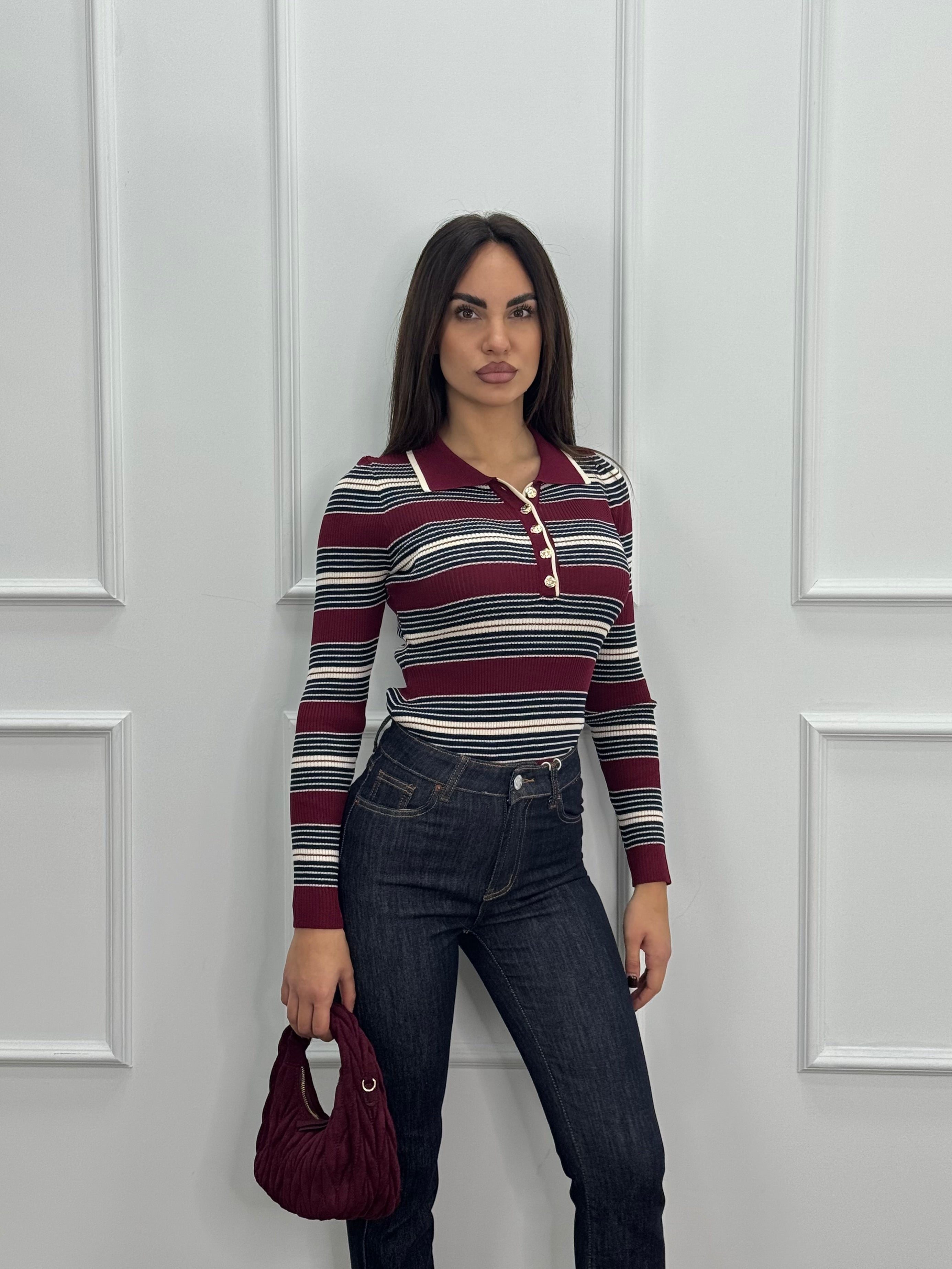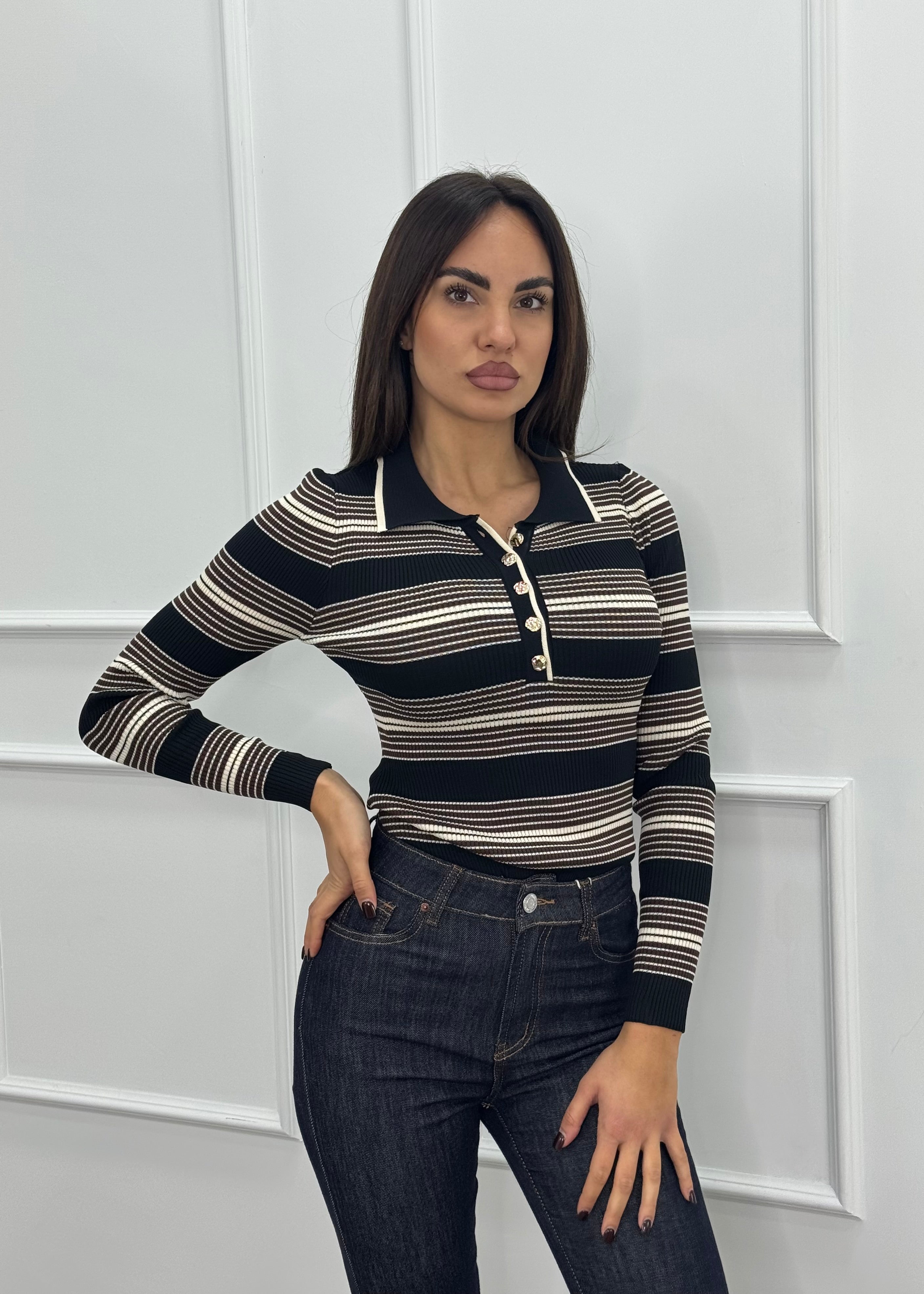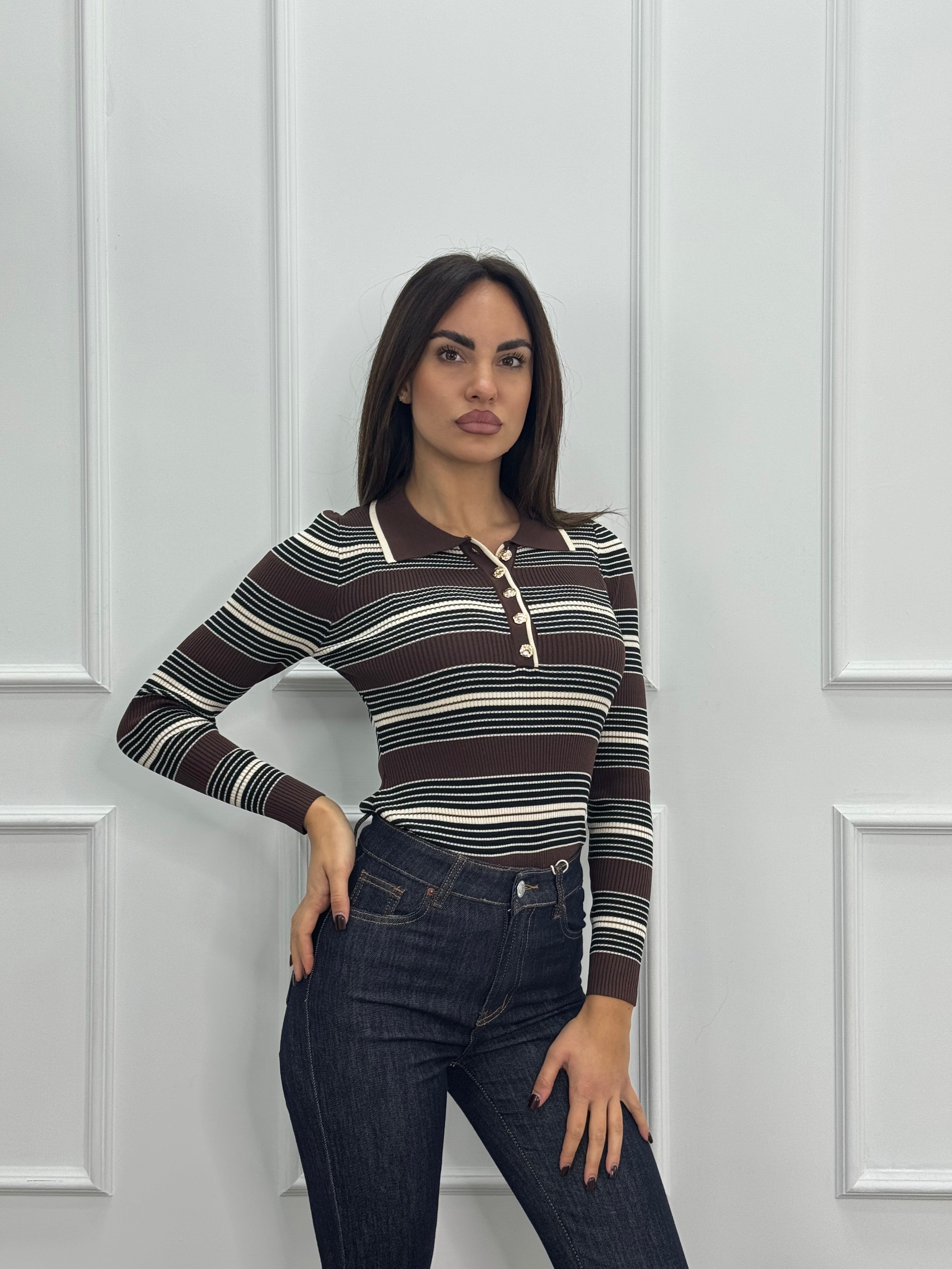 Body a righe in costine con colletto polo e bottoni sul davanti.