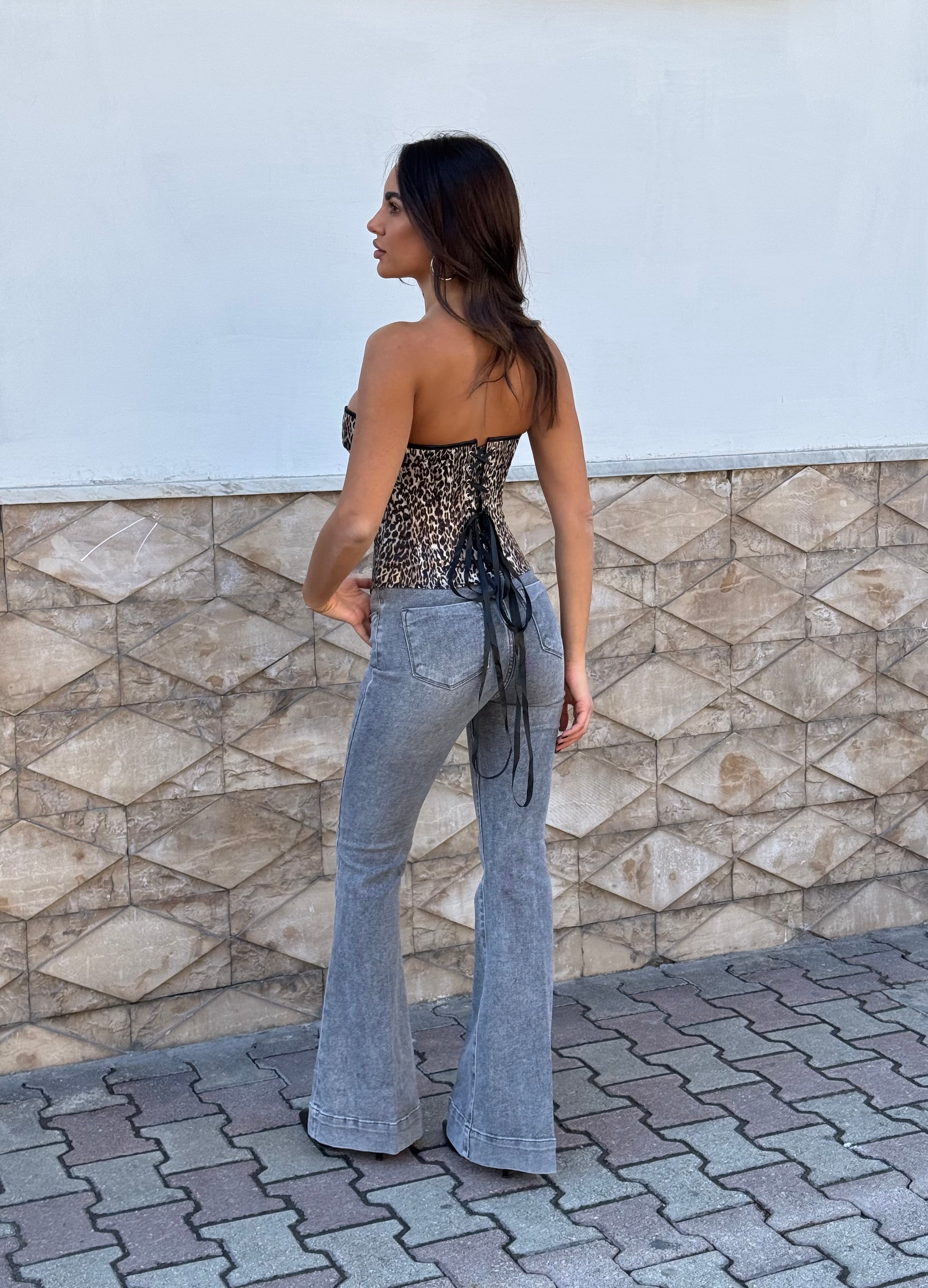 Chiusura in zip laterale e stringhe sul retro regolabili.