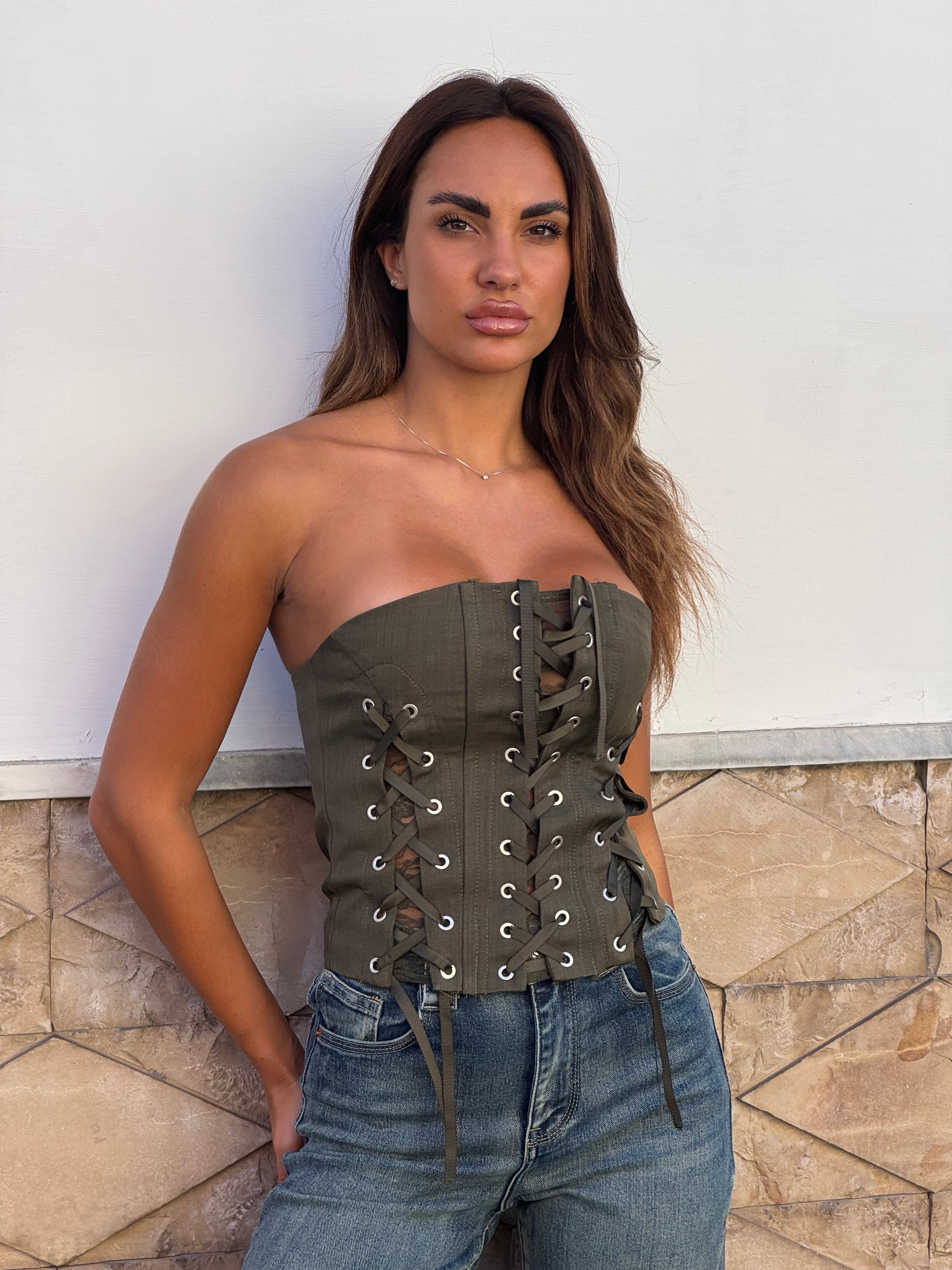 La modella è alta 1.70 cm ed indossa una taglia S.