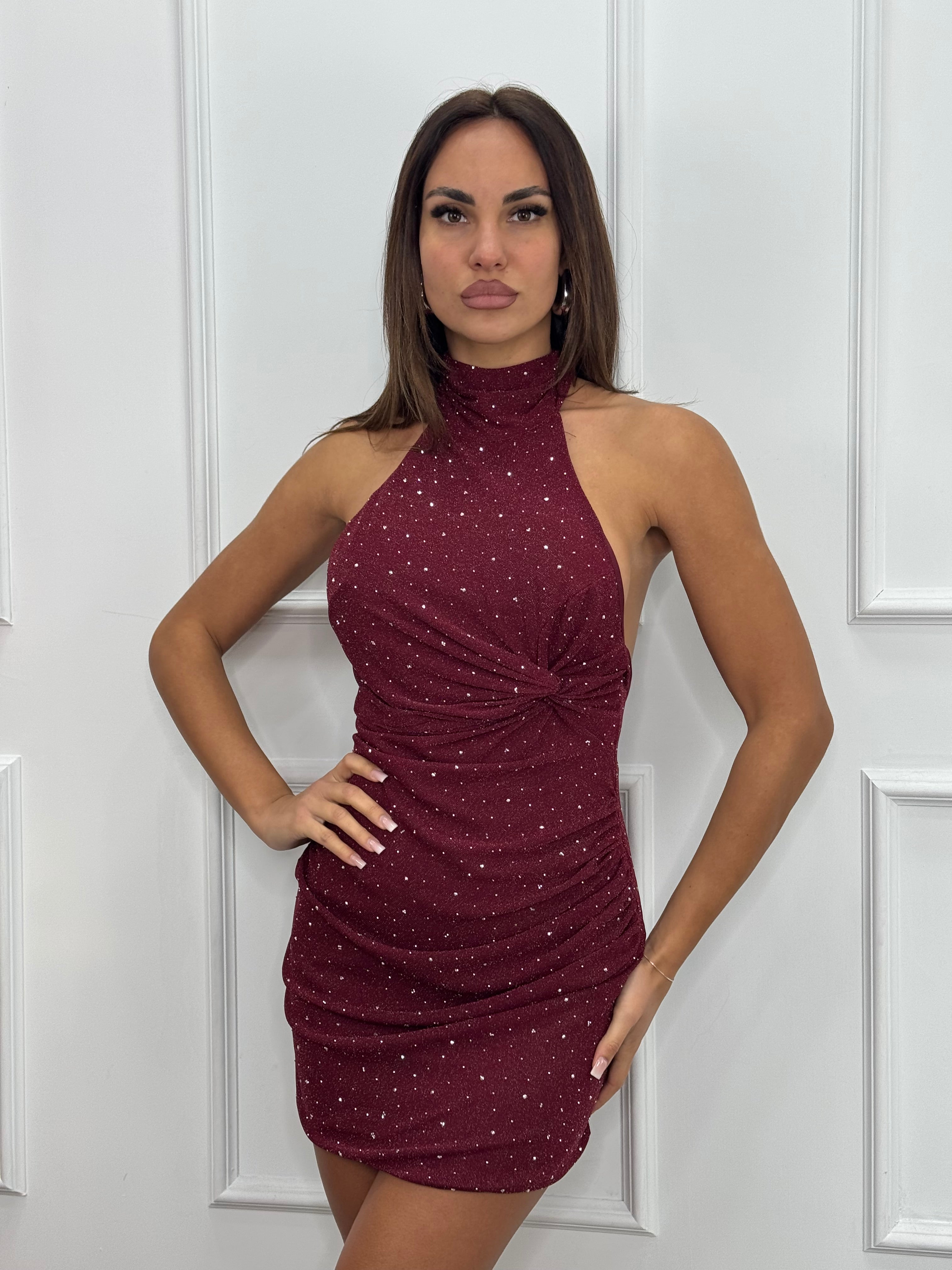 Bellissimo mini dress ,tempestato di brillantini in tessuto velato.