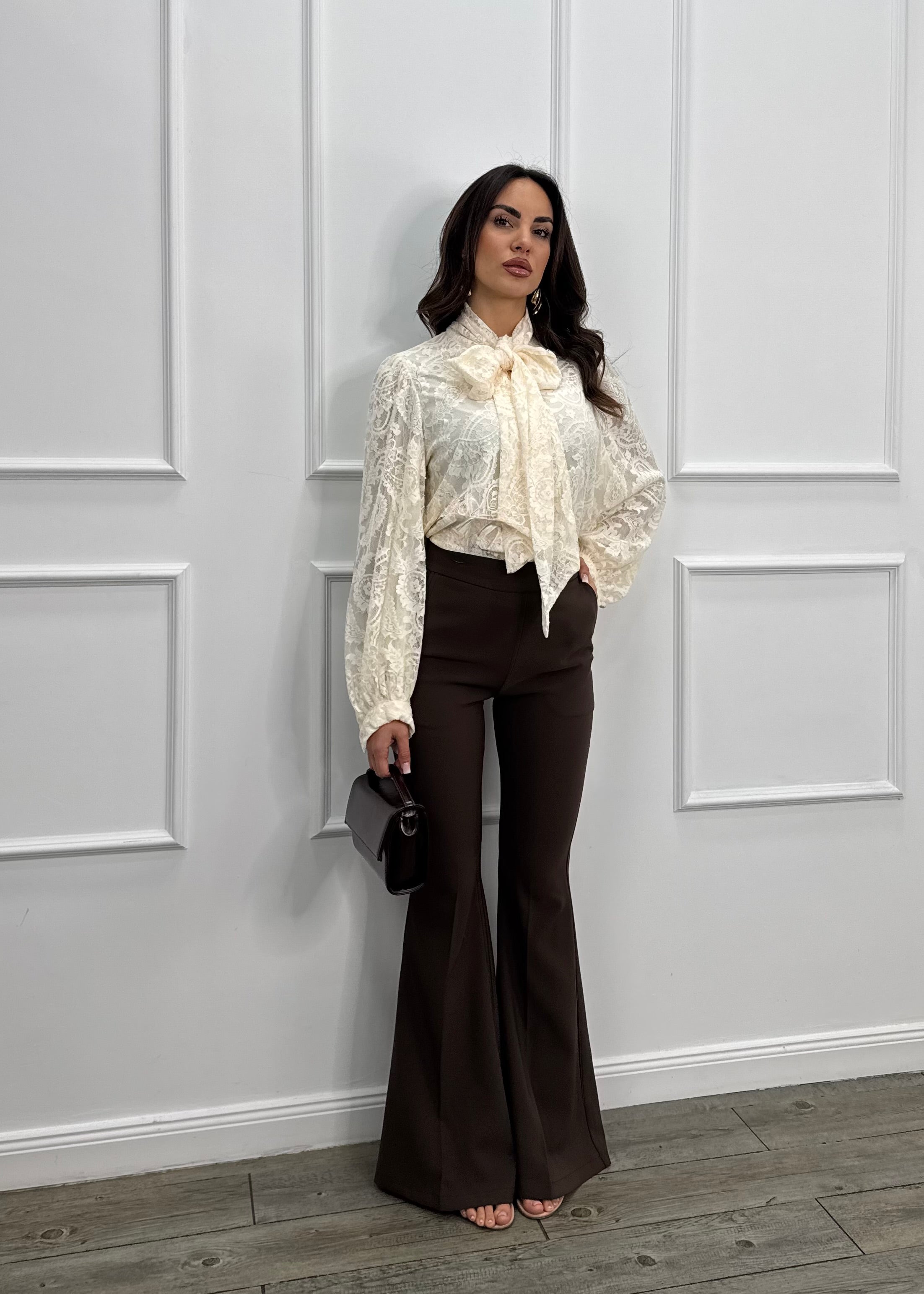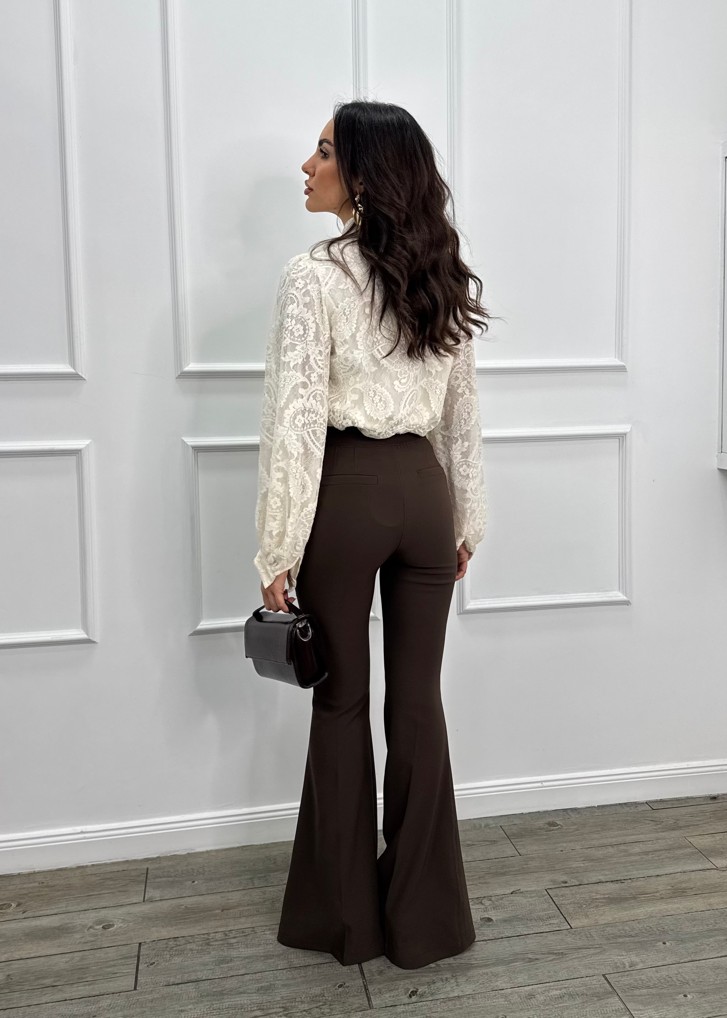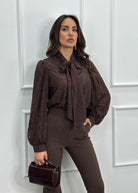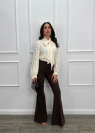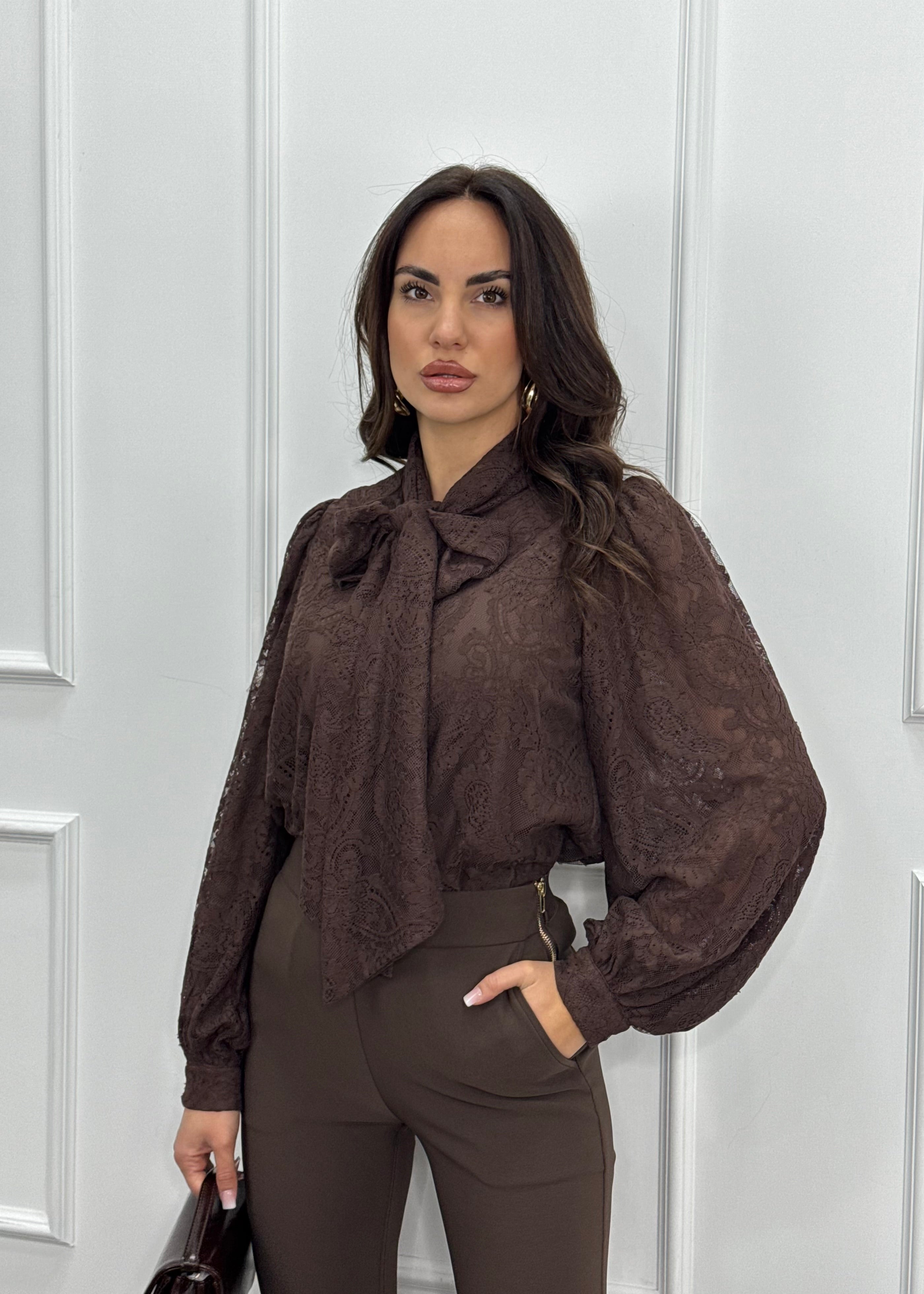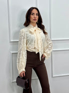Meravigliosa camicia ricamata con manica a sbuffo.
