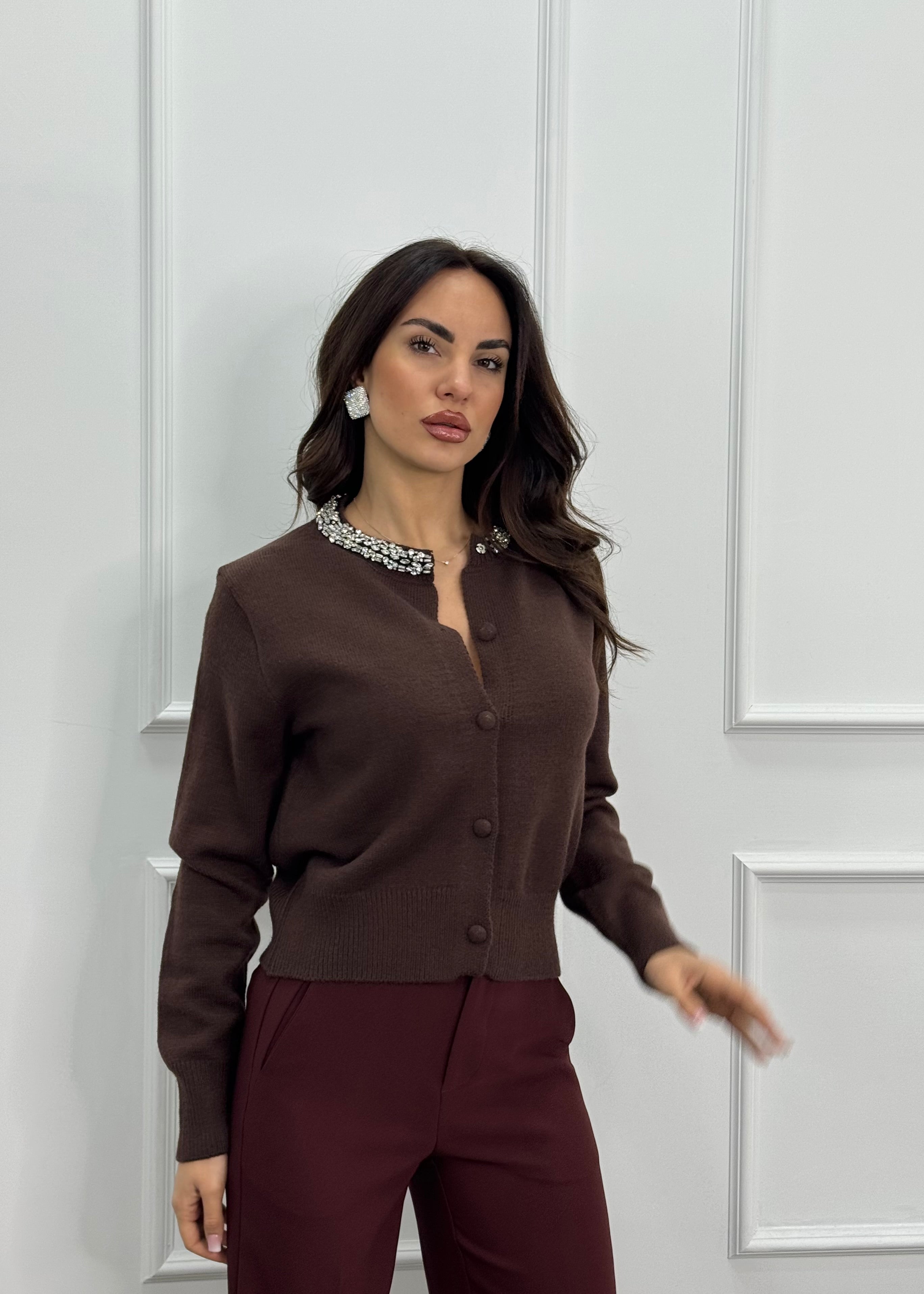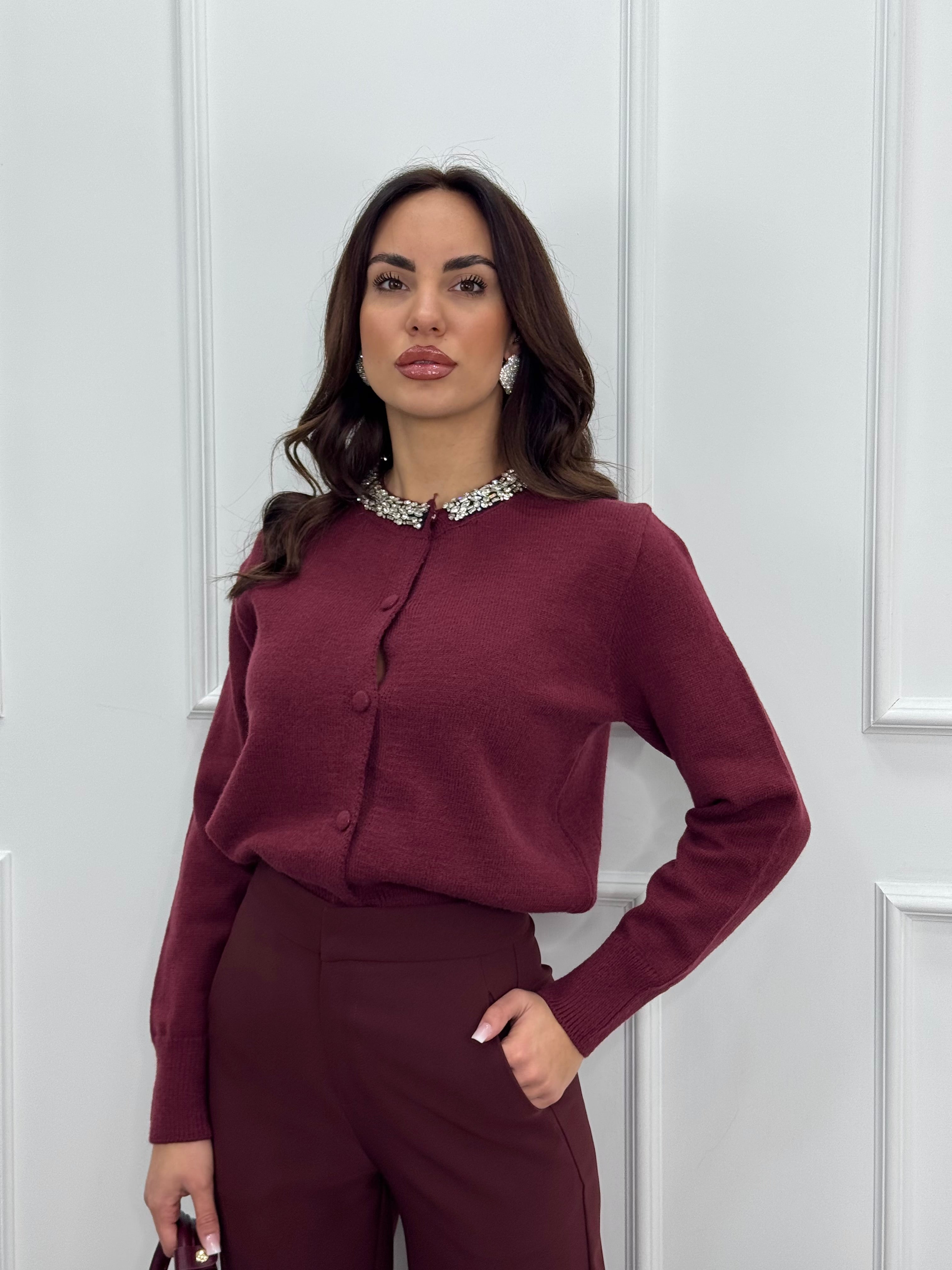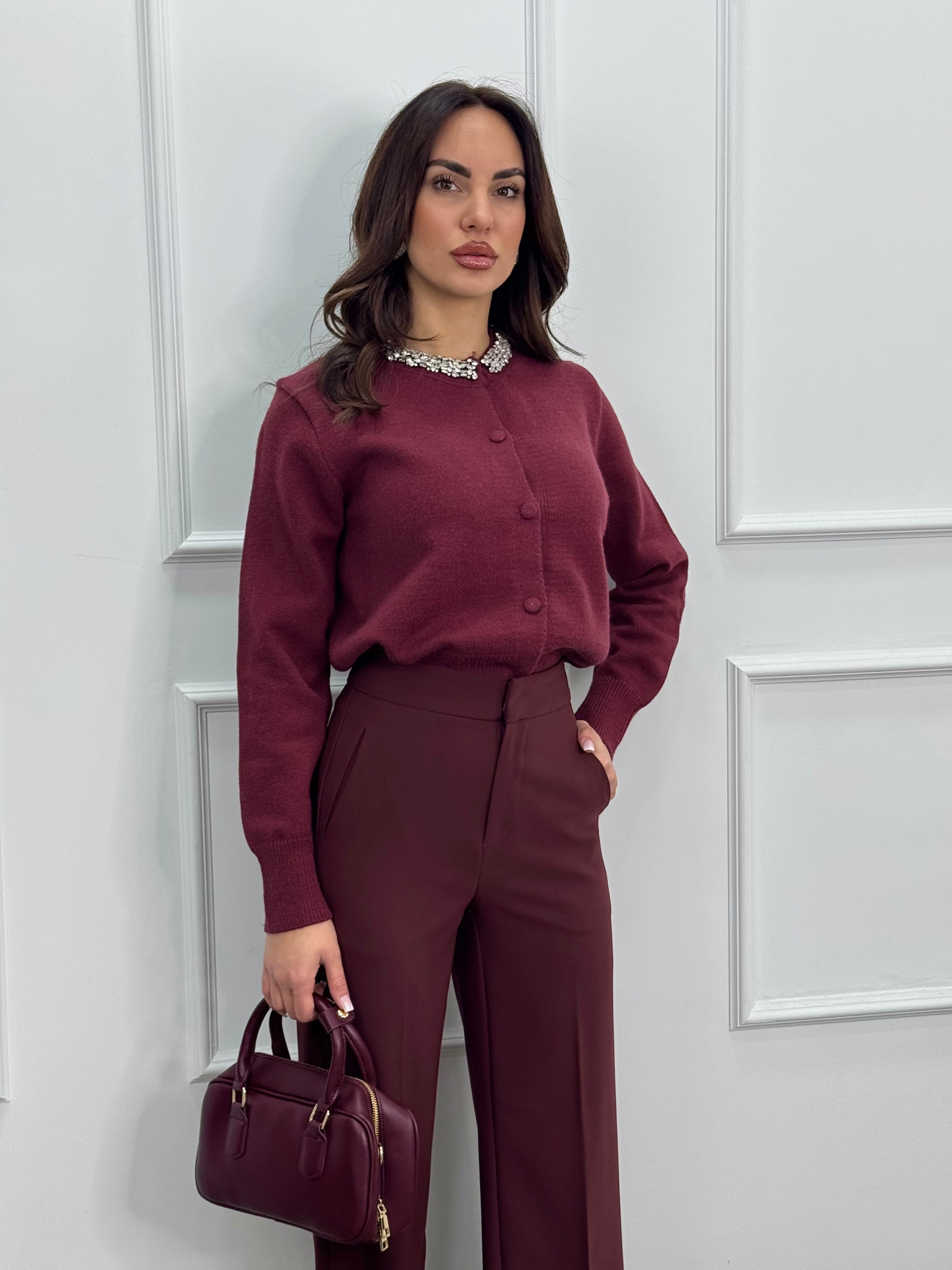 Cardigan in lana con chiusura sul davanti in bottoni ricoperti in tessuto-