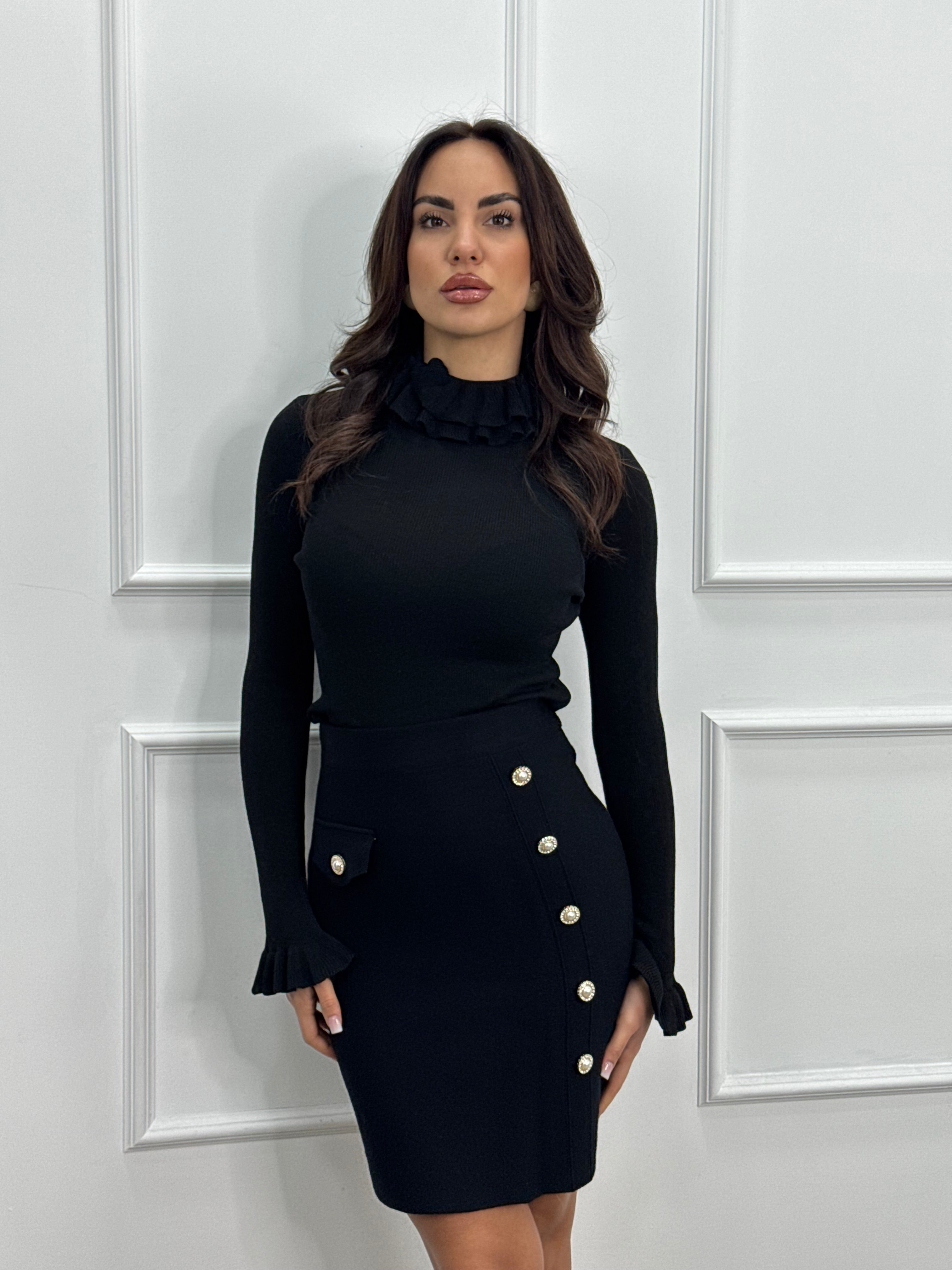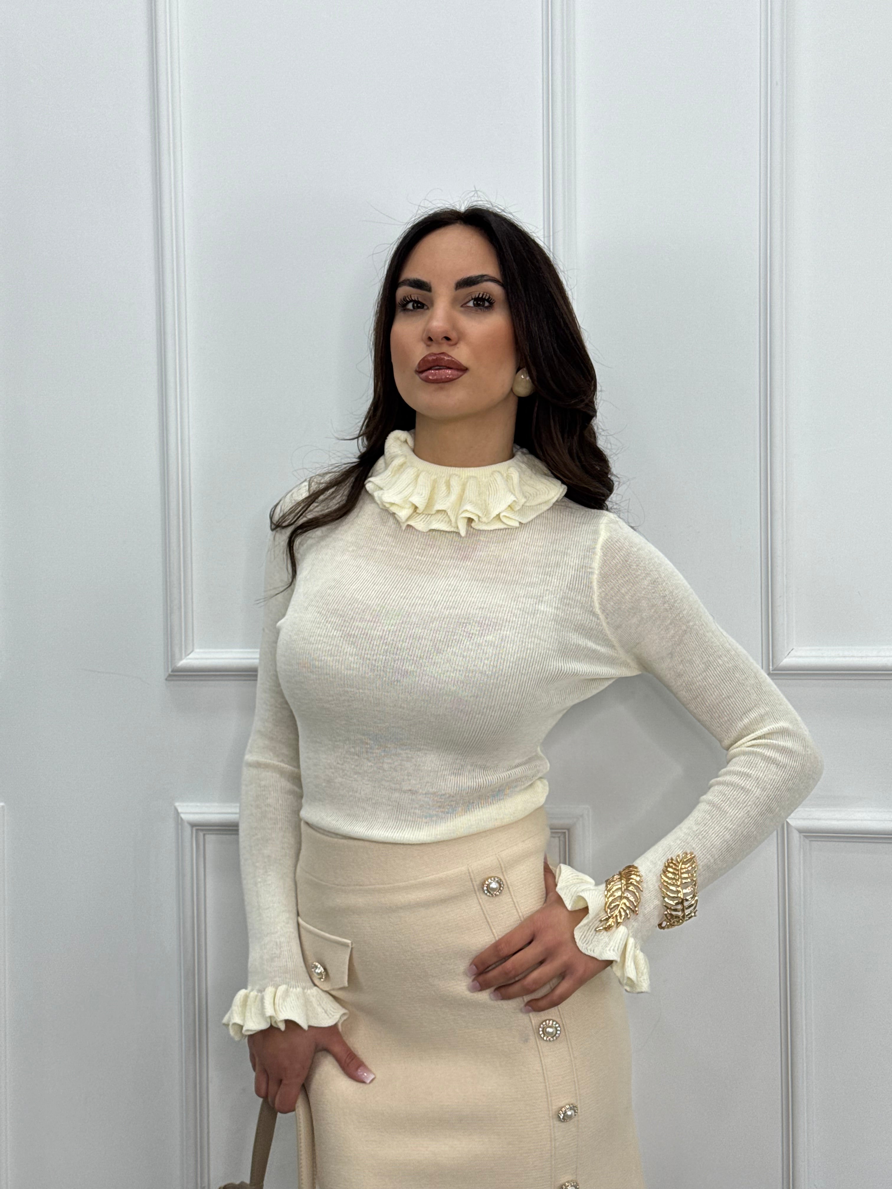 Dolcevita in lana con dettagli raffinati in ruches al collo e sui polsini .