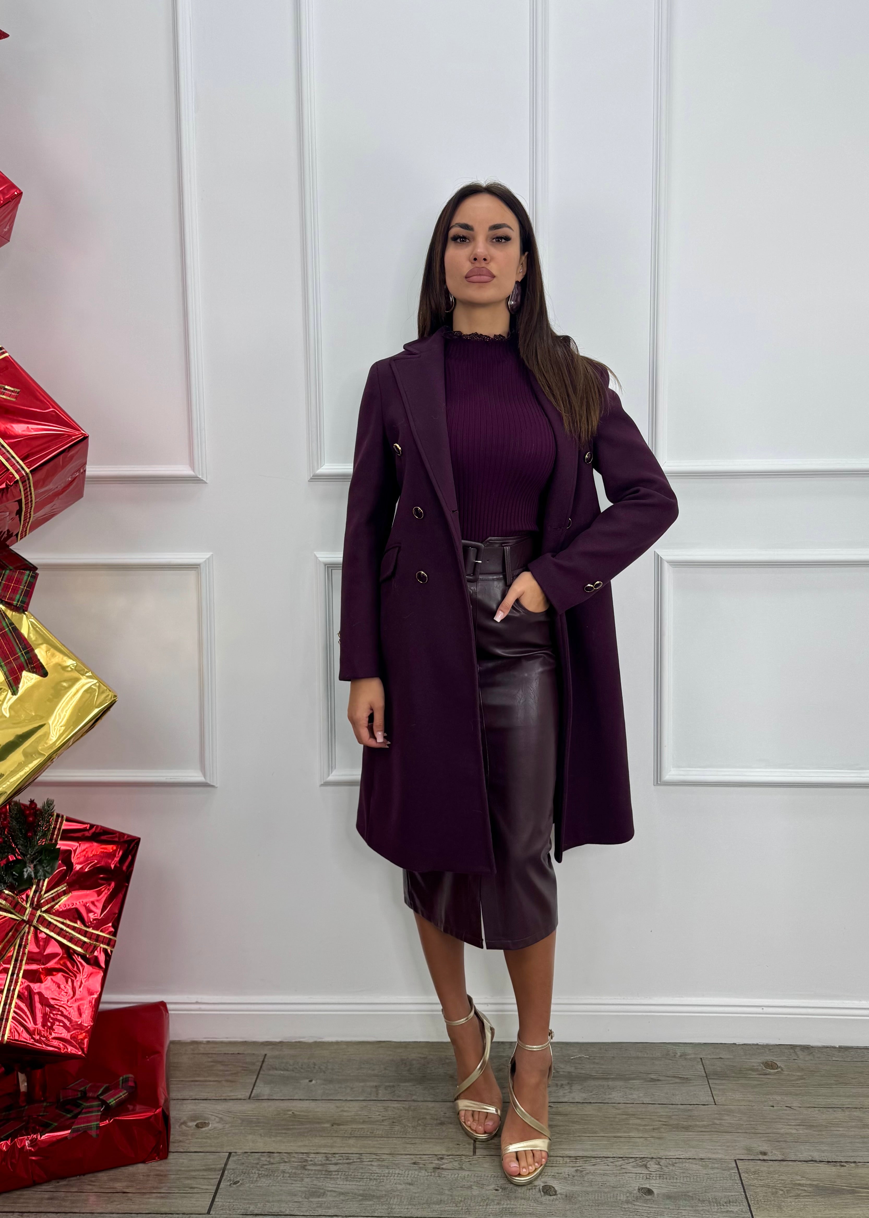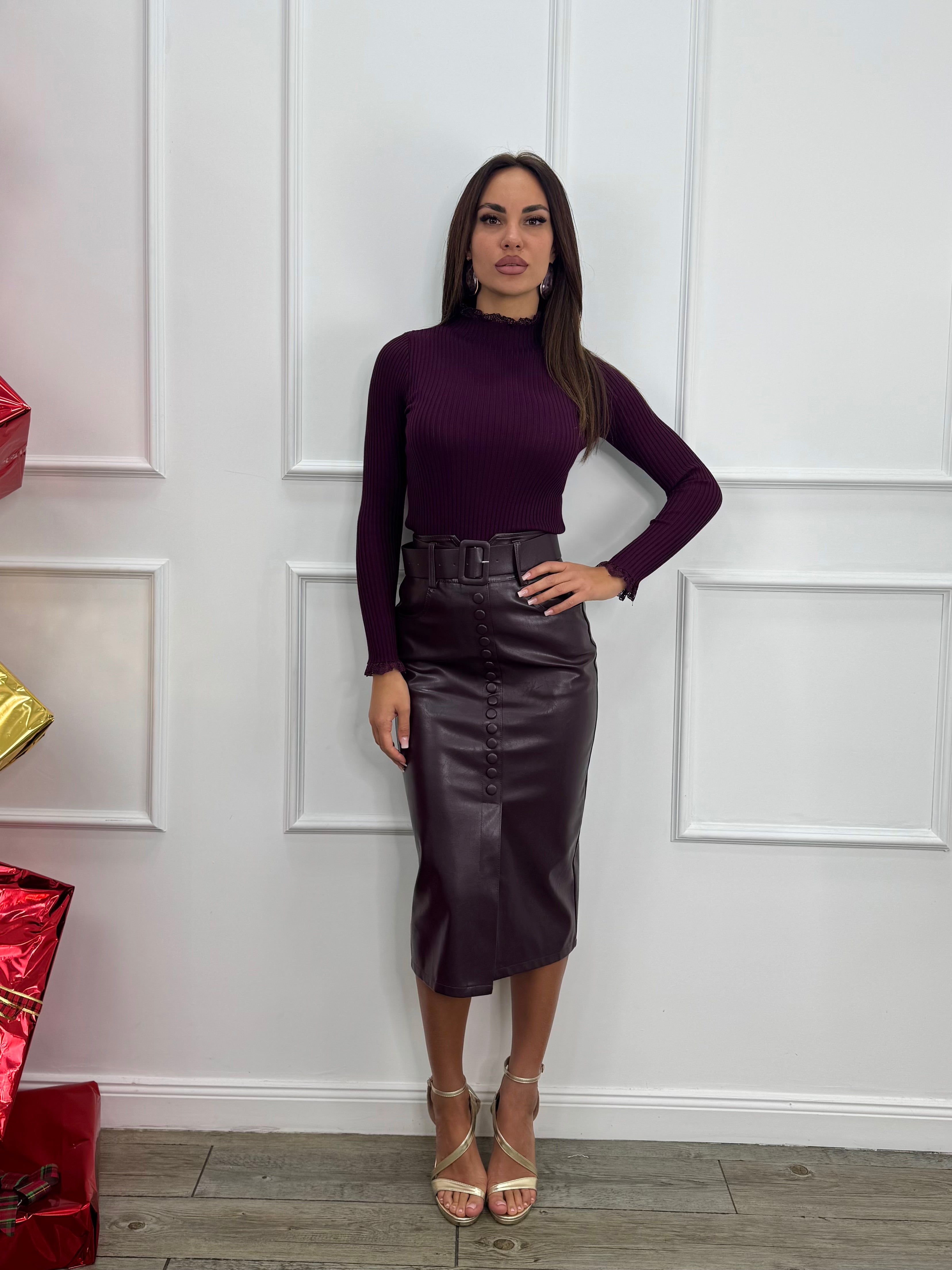 Longuette a vita alta ecopelle.