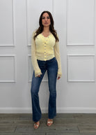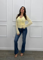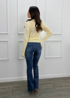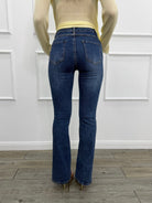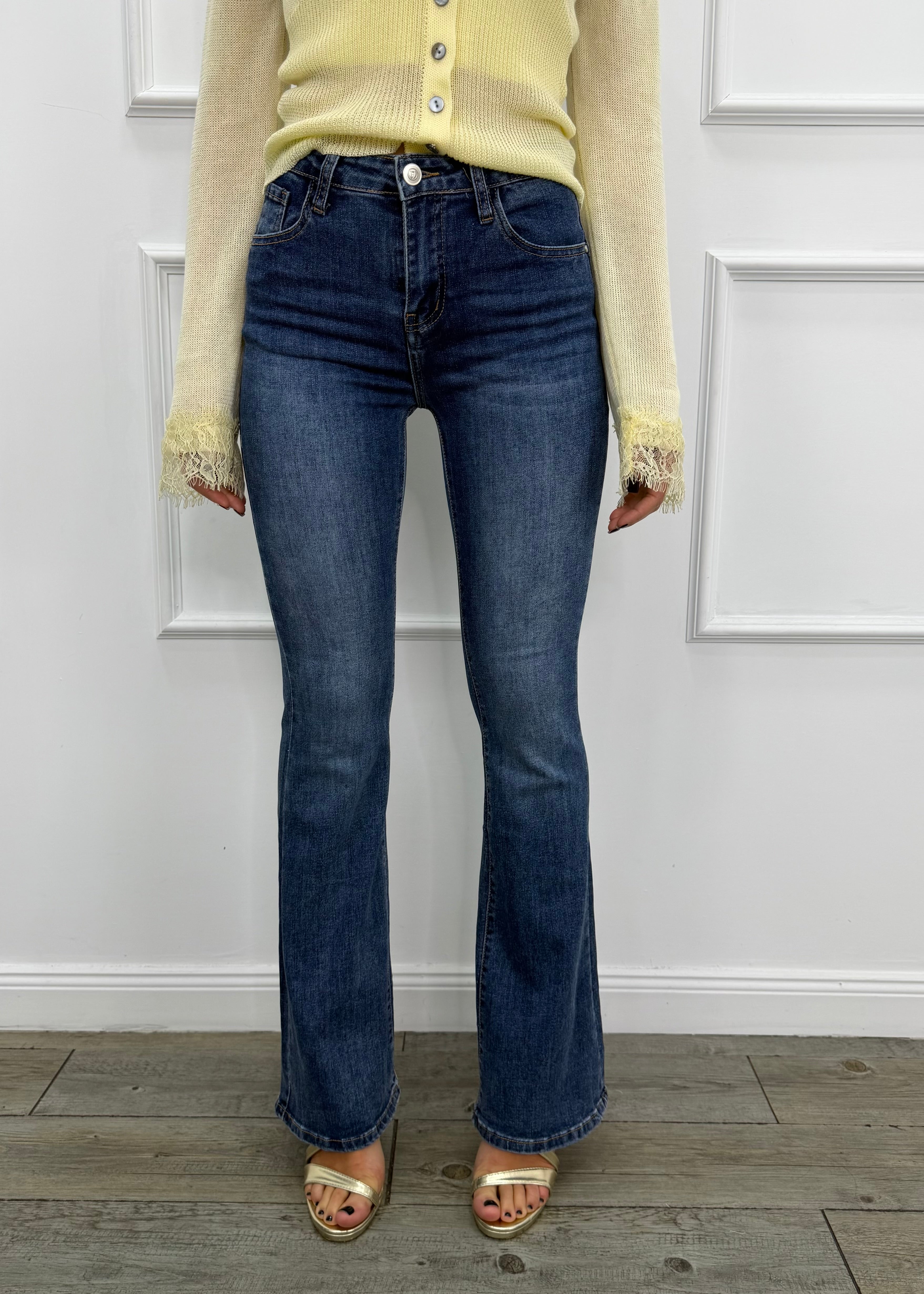 Jeans elasticizzato a vita alta, con zampetta sul fondo