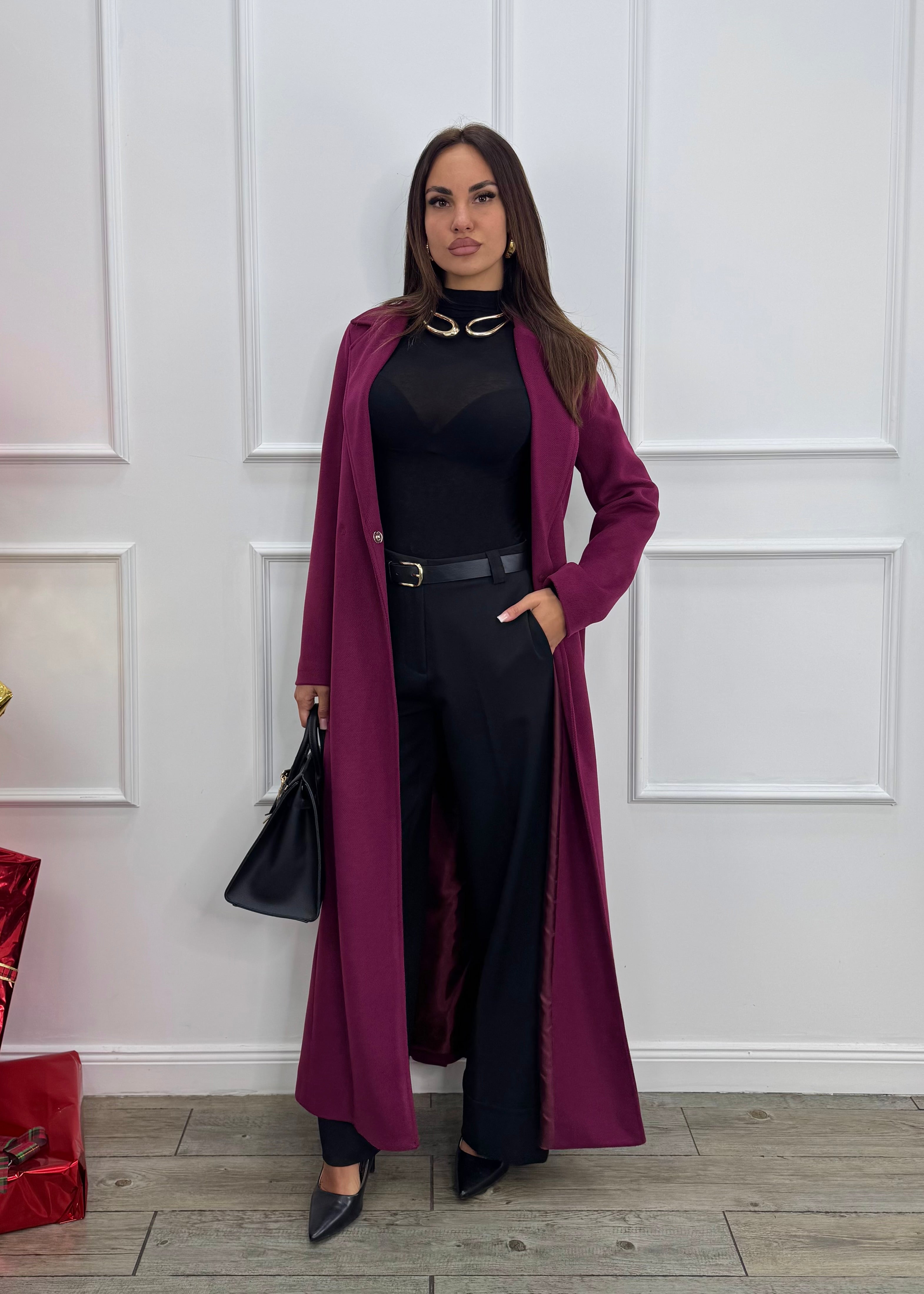 Chiusura sul davanti e piegone sul fondo.