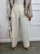 Pantaloni vita alta in tessuto punto milano.