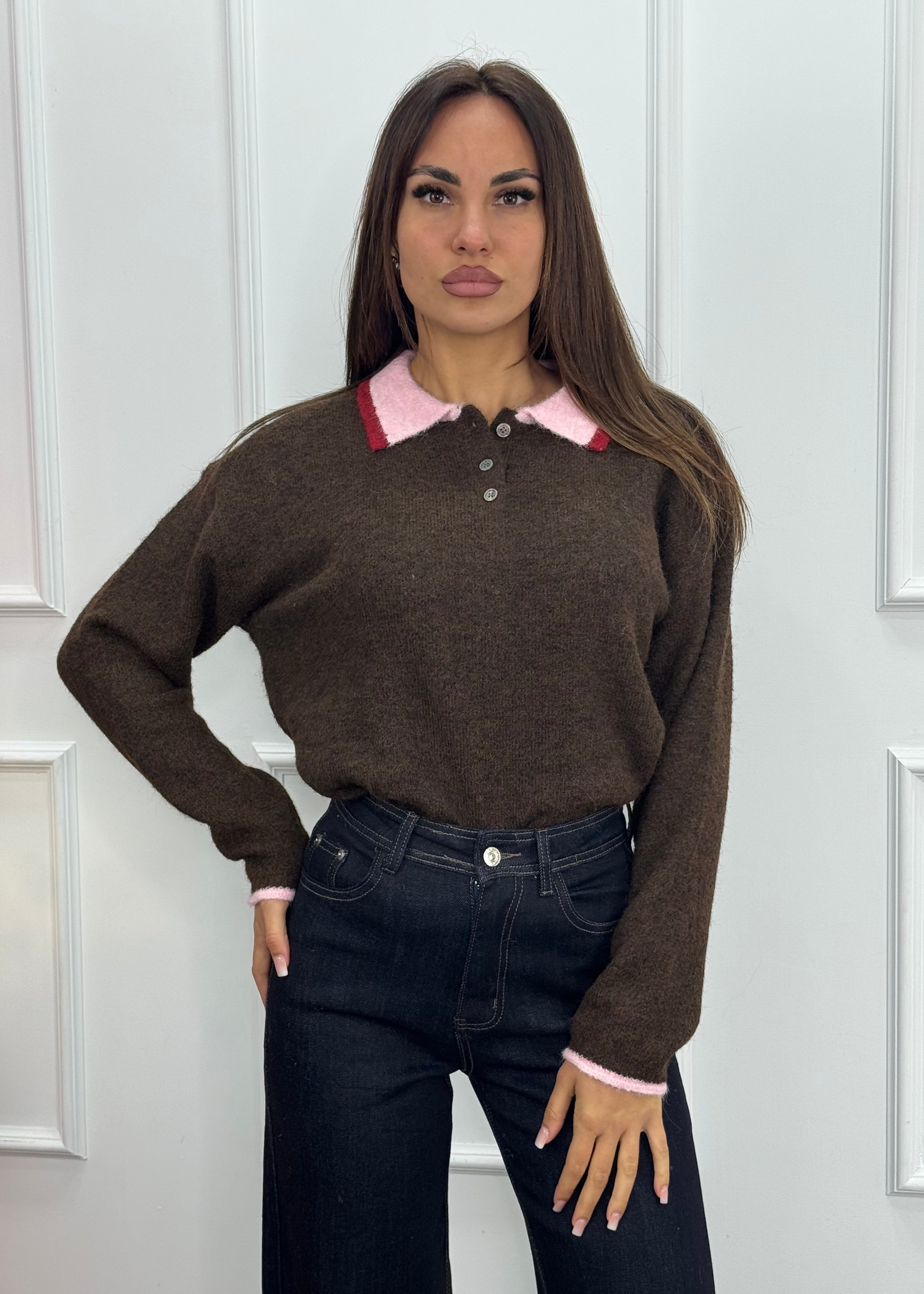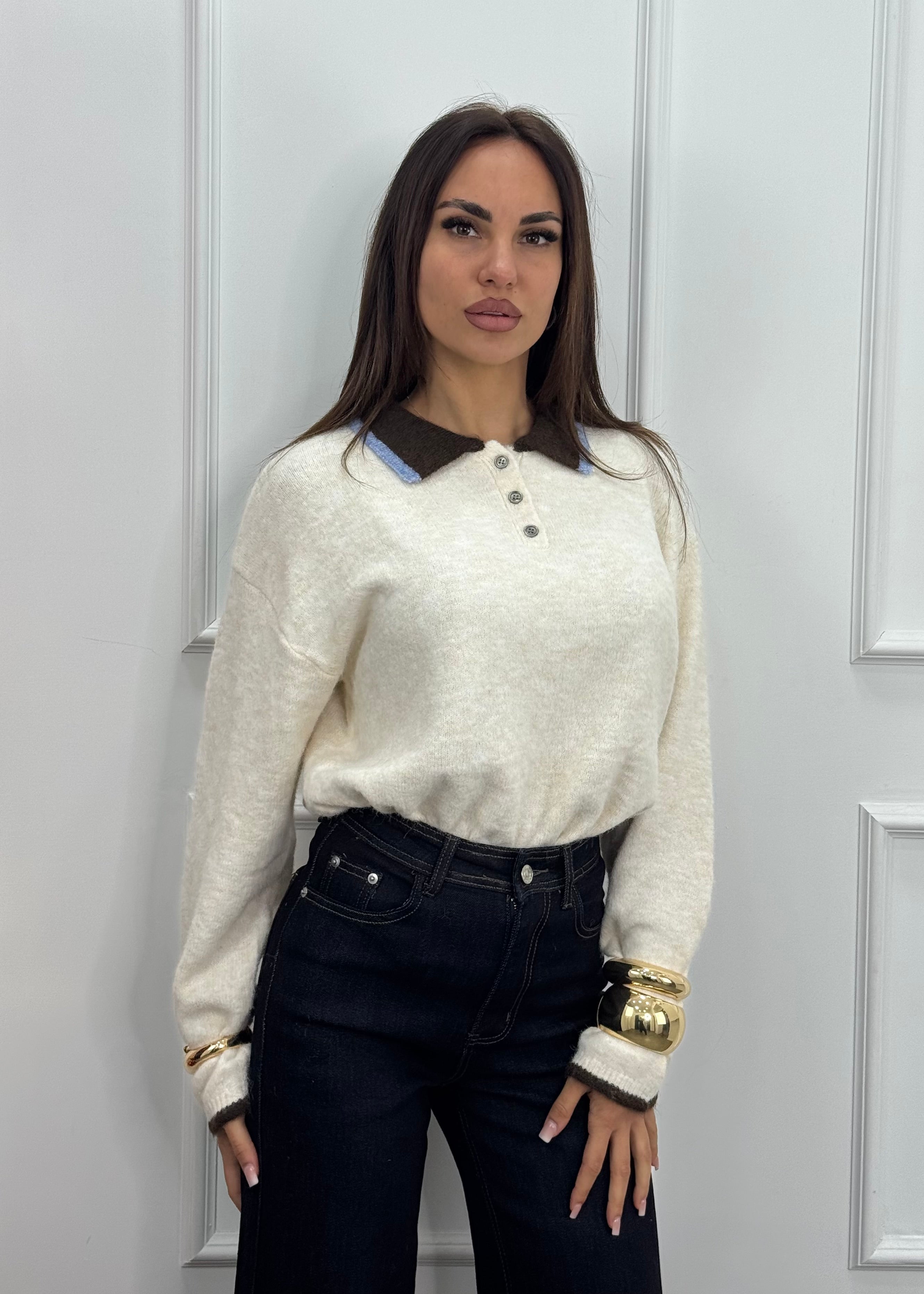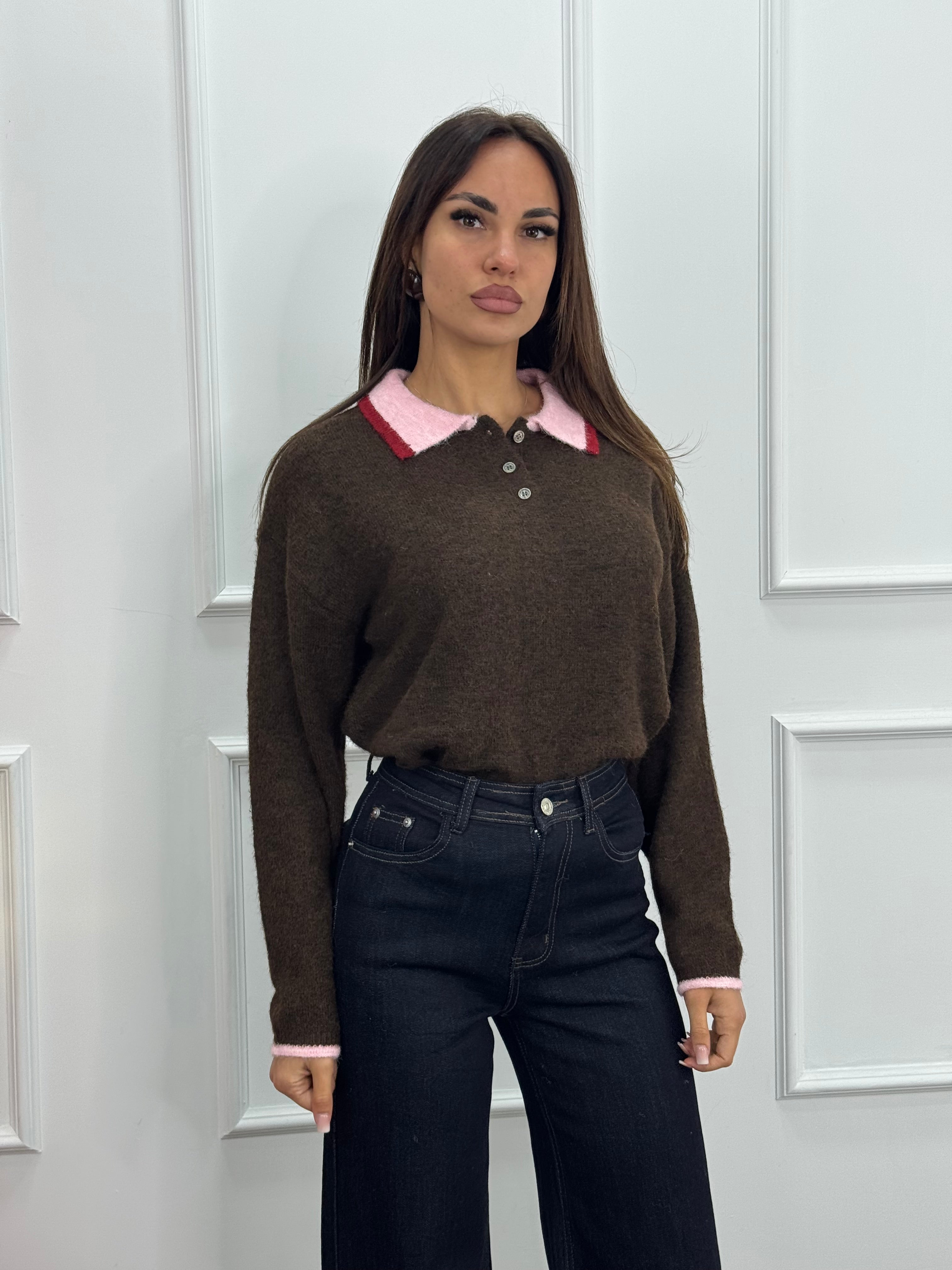 Maglione stile polo con colletto e polsini in contrasto.